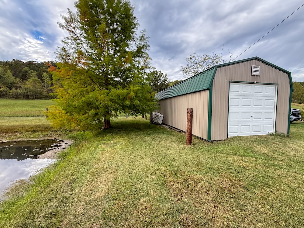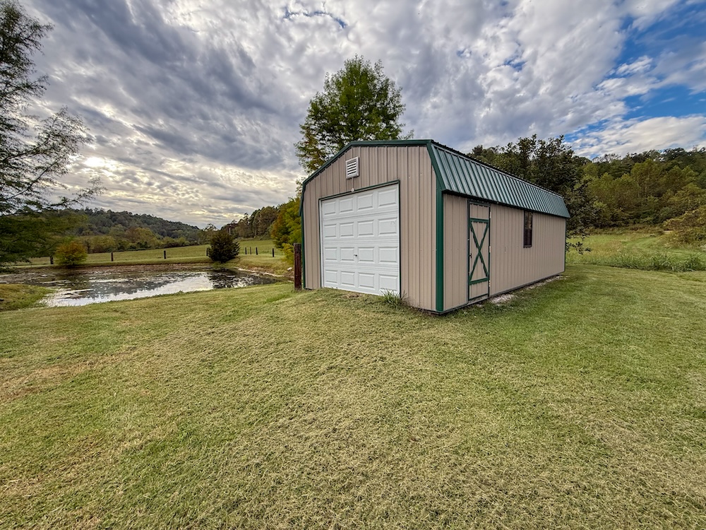 Has A metal outbuilding for storage.