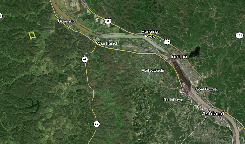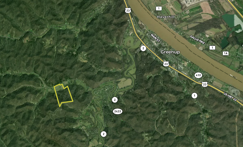 Access is convenient from a county-maintained one-lane blacktop road, providing both privacy and year-round entry. The property is located near the towns of Greenup, Ashland, and Grayson, and only a short drive from Portsmouth, Ohio—making it easily accessible from multiple directions.