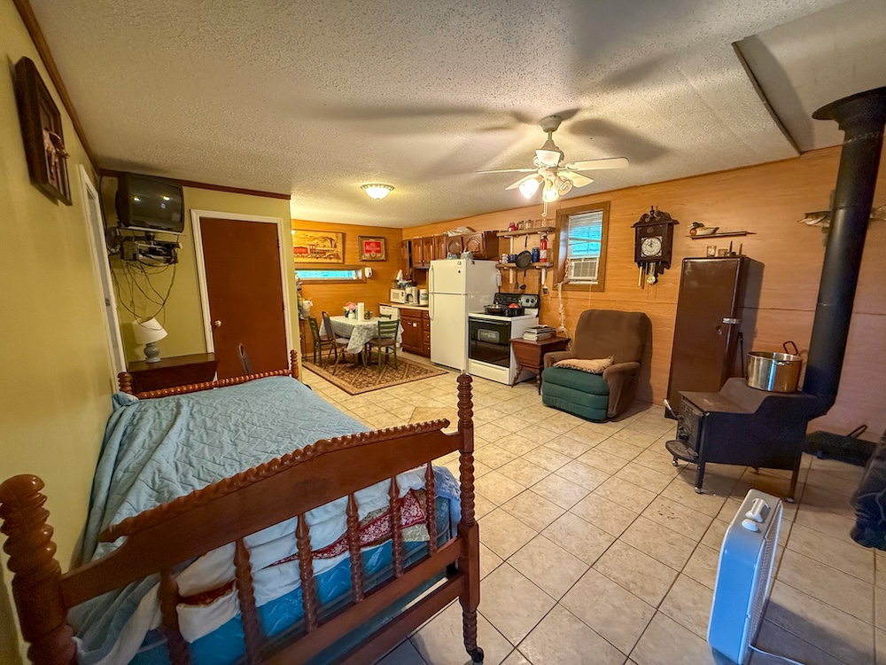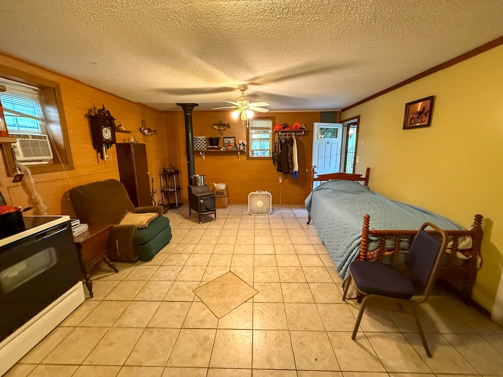 A cozy 550± square foot hunting-style cabin provides a comfortable place to stay while enjoying the outdoors. The cabin features one bedroom and one bathroom, equipped with water, electricity, and septic, making it ready for immediate use.