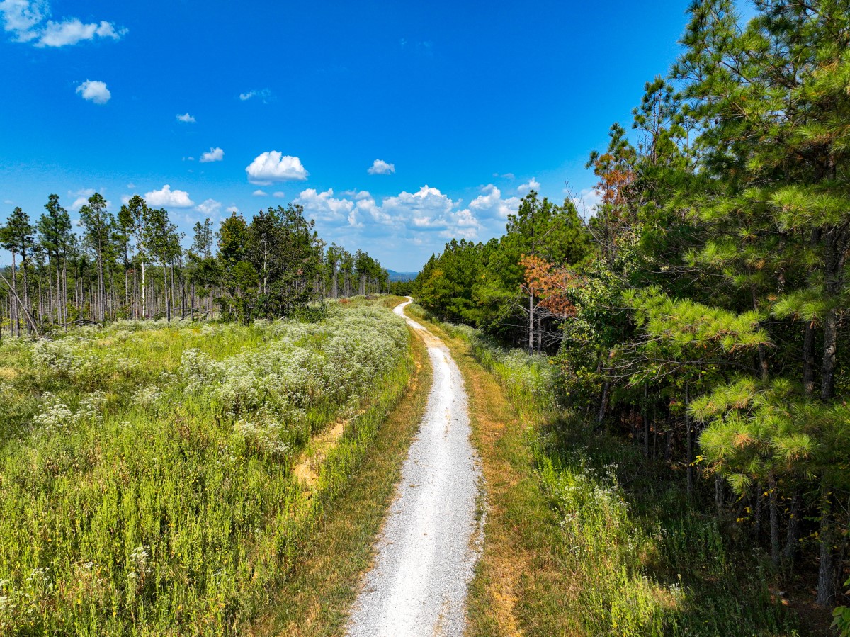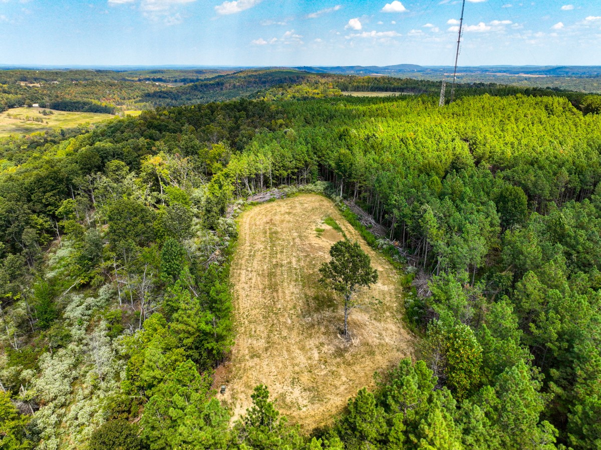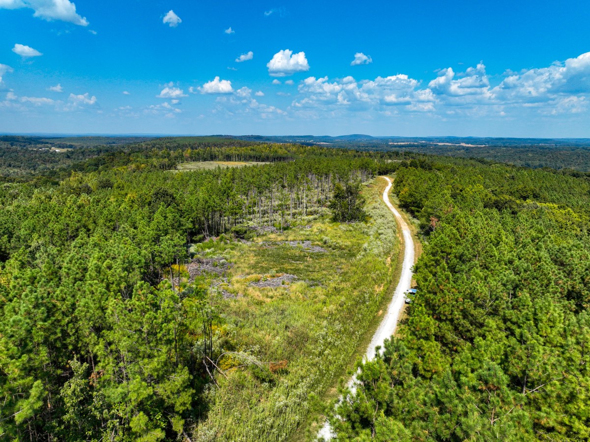 The rolling topography includes areas of steeper terrain and striking rock outcroppings, providing both scenic appeal and natural hunting diversity. Timbered ridges and draws combine with a mix of softwoods, mast-producing hardwoods, and planted pines, creating a rich mosaic of cover. Select cut and thinned areas have been managed to enhance bedding and security cover, helping hold deer and other wildlife throughout the property.