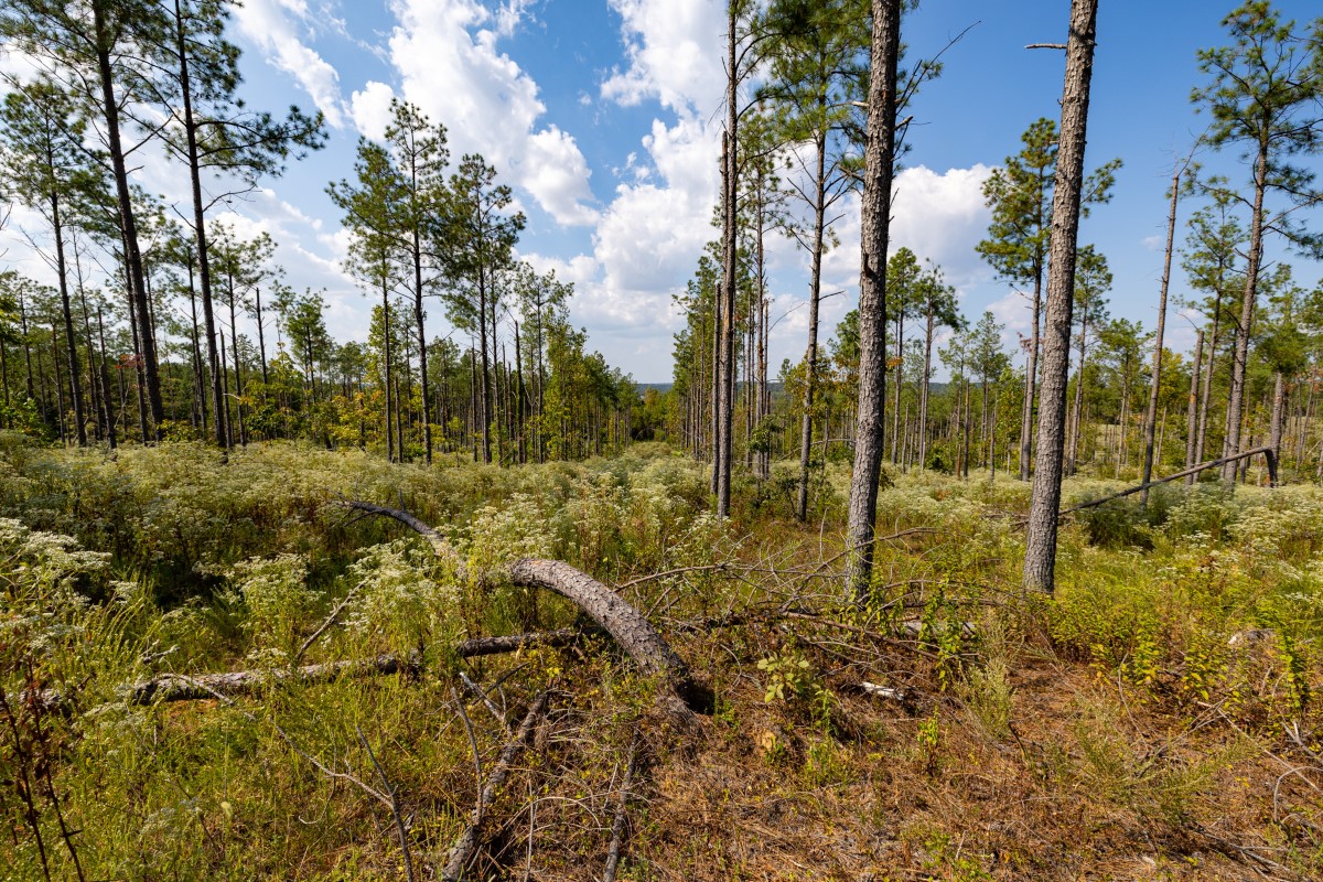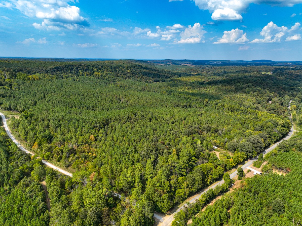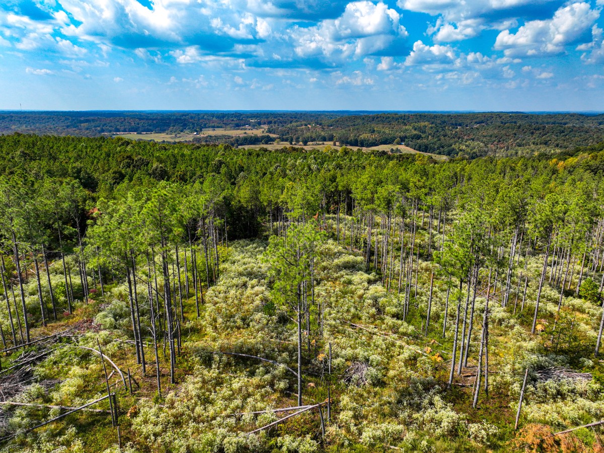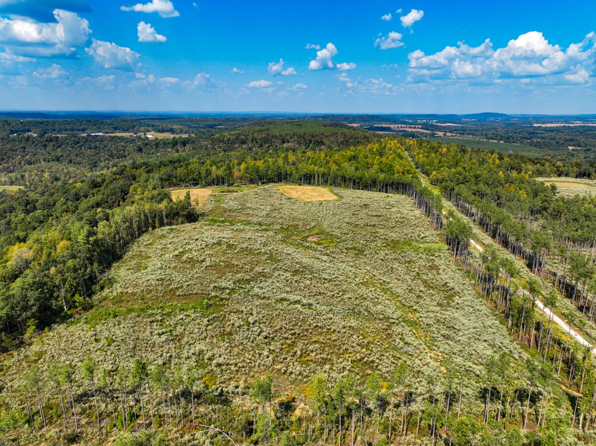 The rolling topography includes areas of steeper terrain and striking rock outcroppings, providing both scenic appeal and natural hunting diversity. Timbered ridges and draws combine with a mix of softwoods, mast-producing hardwoods, and planted pines, creating a rich mosaic of cover. Select cut and thinned areas have been managed to enhance bedding and security cover, helping hold deer and other wildlife throughout the property.