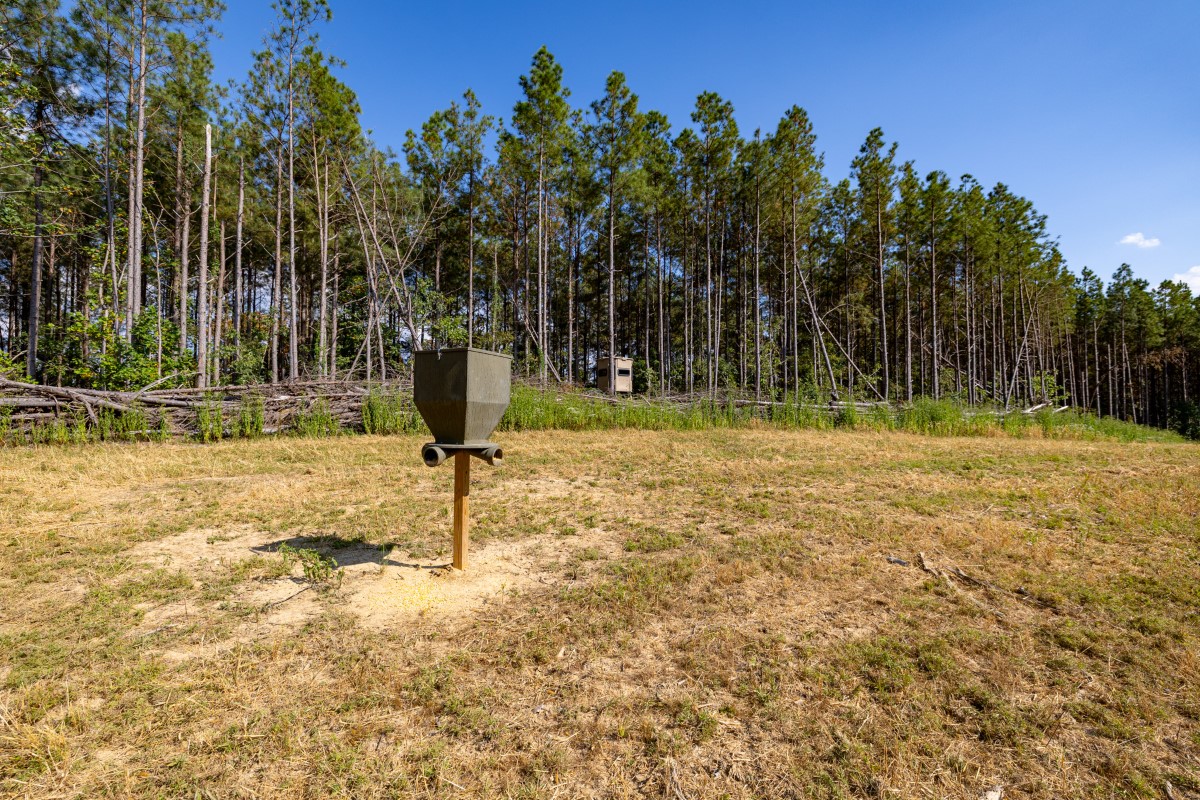 This tract is part of a trophy-managed hunting community designed for hunters focused on growing and harvesting mature deer. The property offers a well-balanced mix of habitat types and improvements, making it ready for quality deer and turkey hunting from day one. Established food plots are scattered throughout, paired with strategically positioned blinds and a feeder to maximize hunting opportunities. Multiple wildlife ponds add water sources and attraction for game.