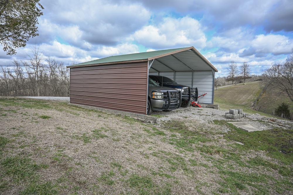 Property improvements include a 2-car garage, a barn for storage or equipment, and a carport for additional parking. The gated and fenced entrance adds both security and curb appeal. The farm features road frontage on Battle Road along the front half of the property and Glens Creek Road along the back half, providing excellent access and flexibility.