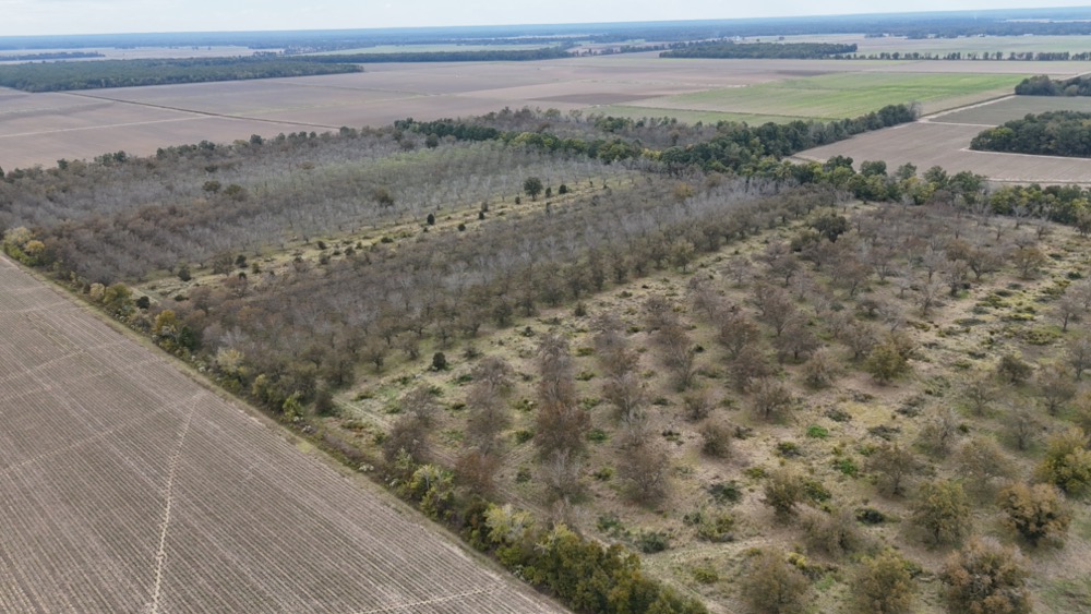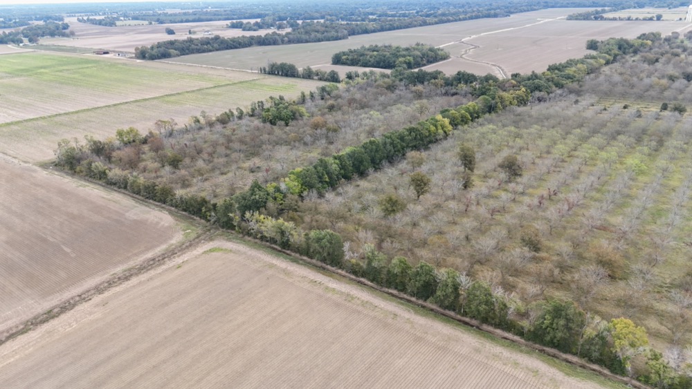 Beyond its agricultural value, the land also offers strong recreational appeal. Deer frequent the orchard to feed on fallen pecans, and the surrounding cropland and nearby hardwood tracts create ideal conditions for supporting trophy-class whitetails - an area well-known for producing exceptional bucks. Several areas are already suited for food plots and box blinds can be strategically positioned to take advantage of natural travel corridors between the orchard and adjacent cover.