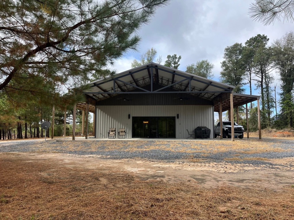Escape to the rolling hills of Marthaville with this exceptional 80-acre hunting and recreational retreat, thoughtfully designed for comfort, privacy, and year-round outdoor enjoyment. Anchored by a custom-built 2021 barndominium, this property blends modern convenience with authentic rustic charm—making it the perfect getaway or full-time country residence. The post-frame barndominium features a reinforced metal truss roof covering 4,200 sq. ft. under roof, including 1,500 sq. ft. of finished all-electric living space, a 1,000 sq. ft. barn, and a 1,000 sq. ft. covered front deck ideal for relaxing after a day in the woods. The 3-bedroom, 2-bath interior is crafted with barnwood and corrugated tin accents, creating a warm, inviting atmosphere that seamlessly blends into the natural landscape. Set atop a bluff overlooking a peaceful pond, the home offers both scenic views and excellent functionality. The gated property features cooperative water, SWEPCO power, and a permitted overland flow septic system, along with four remote-controlled Mitsubishi mini-split units and ceiling fans throughout, including the covered deck, for year-round comfort. Storage and equipment access are made easy 14'x14'ree 14’x14’ overhead doors, two-person doors 15'x40 ', and 15’x40’ covered wings. Two RV hookups (one covered), Hughes satellite internet, and a Ring Wi-Fi camera system add even more convenience for owners and guests. All appliances and furnishings convey, except den furniture, artwork, mower, side-by-side, and tools. For the avid hunter, this retreat offers outstanding whitetail habitat, complete with three fully enclosed, insulated box stands, three solar-powered feeders, a Rice Bran trough, and three solar-powered cellular game cameras. The pond offers excellent fishing, and a game hoist is in place for cleaning. With manicured grounds and a secure gated entrance, the entire property is optimized for recreation and relaxation. Approximately 30 acres are planted in row pine (2014 & 2016), entering their first thinning cycle (2025–2027), offering immediate and future income potential. Typical timber cycles include a second thinning in 6–7 years and replanting at 27–30 years, providing long-term investment value. Low annual expenses—approximately $1,900 for insurance, $1,500 in property taxes, and about $100 per month each for utilities and internet—make this an affordable and efficient property to owyou'rether you're seeking a high-quality hunting tract, a private retreat, or a long-term land investment, this standout Natchitoches Parish property offers the perfect balance of natural beauty, modern comfort, and income-producing potential.