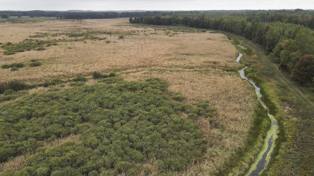 On our first drive through the property, we saw well over 60 deer and found 6 shed antlers lying in one food plot. I can’t imagine what must be in and around the bedding areas. Deer trails are like cattle trails and are everywhere. The waterfowl hunting is equally amazing with one permanent duck blind, but more portables can be used anywhere. We walked up to a chunk of flooded timber and blew up 10+ wood ducks and too many mallards to count, not to mention the geese all over the water. The lake is 100% controllable; it can be flooded for waterfowl season, then drained down for deer season. We are told that during the rut, when the lake is drained, several bucks can be seen chasing does in the high grass where the lake was. In short, this may be one of Michigan's best deer and waterfowl hunting properties, and we don’t say that lightly. The road/trail systems on the property have been very well maintained and are in excellent condition. All the food plots, stands, and blinds can be easily reached. This property will make someone a true hunting and recreational paradise, or perhaps you and your hunting buddies are sick of the orange army or stupid neighbors and want to partner in a property. This is the perfect property for that. The cabin on the parcel sleeps a minimum of 8 with room for more. The 15-foot giant real stone fireplace offers a great place to share the stories from a day or enjoy a cocktail after the hunt. Call us today at 989-600-4112 to schedule a private tour of this property, and I promise you, you will not be disappointed. It is impossible to truly appreciate this place in just a paragraph or two, so let’s take a deep dive.