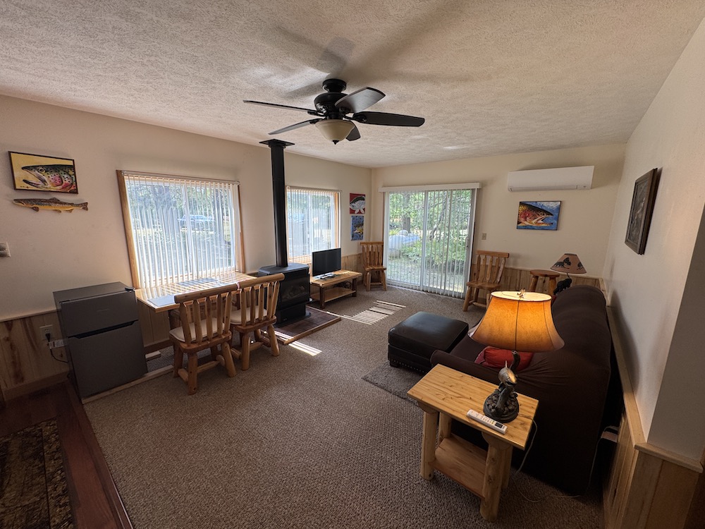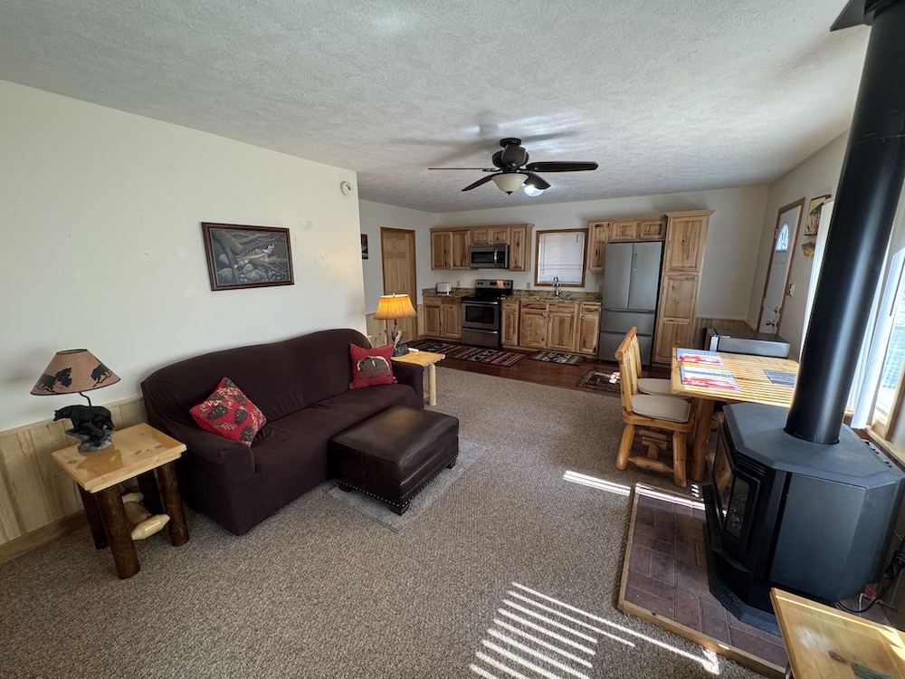 Welcome to 4211 Old US 27, Frederic, MI – a turn-key Northern Michigan retreat designed for comfort, recreation, and adventure. Completely remodeled around 2016, the 24x24 cabin offers one bedroom, one bath, a cozy living room, and a full kitchen with rustic hickory cabinets, granite countertops, and brand-new appliances. A new mini-split (2023) provides heat and AC along with a very nice gas fireplace in the cabin. Additional renovations include a completely updated underground 220 amp electrical service, all-new stained shakes, and a brand new well. The tiled bathroom shower, new sliding glass door, and fully furnished interior—including a brand-new refrigerator and appliances—make this a move-in-ready getaway with all the comforts of home