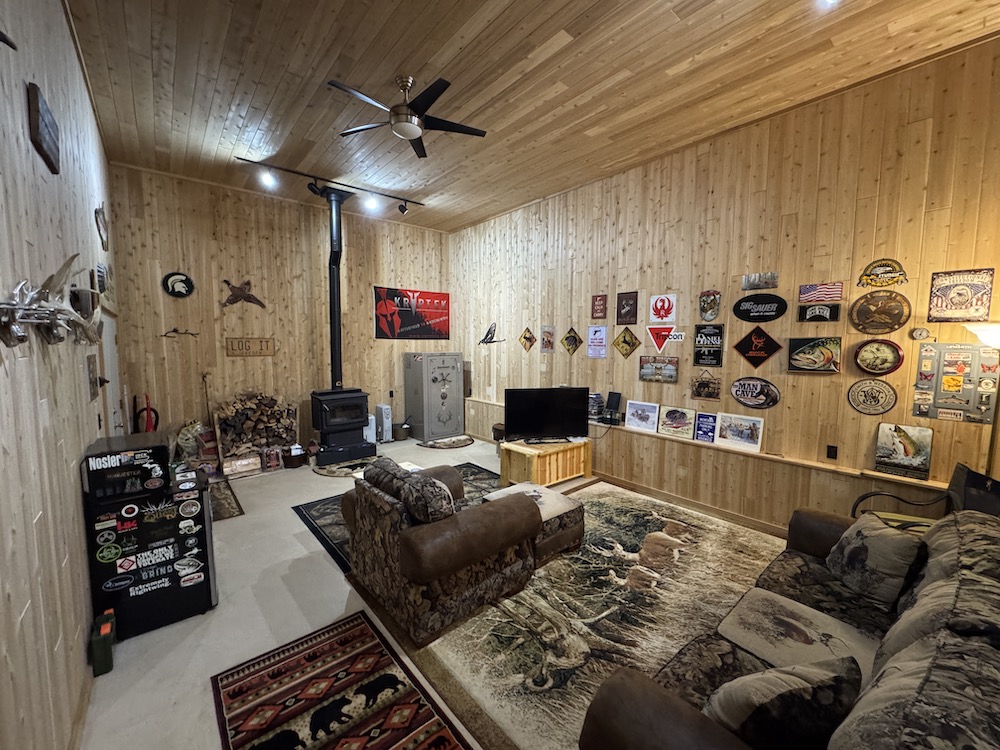 Outdoors, the property shines with a 42x36 stick-built garage featuring 13’ side walls, two large insulated overhead doors with drive-through access, and cement flooring. Attached is a 16x24 man cave fully finished in beautiful White Cedar with a wood stove, perfect for entertaining or relaxing after a day in the woods. As a bonus, there is an abundant supply of seasoned firewood that will also go with the property. Additional storage includes two sheds (8x12 and 8x8). Guests can enjoy the camper hookup with septic and electric, while hunters will love the four blinds, ladder stand, and trail system with excellent potential food plot locations.