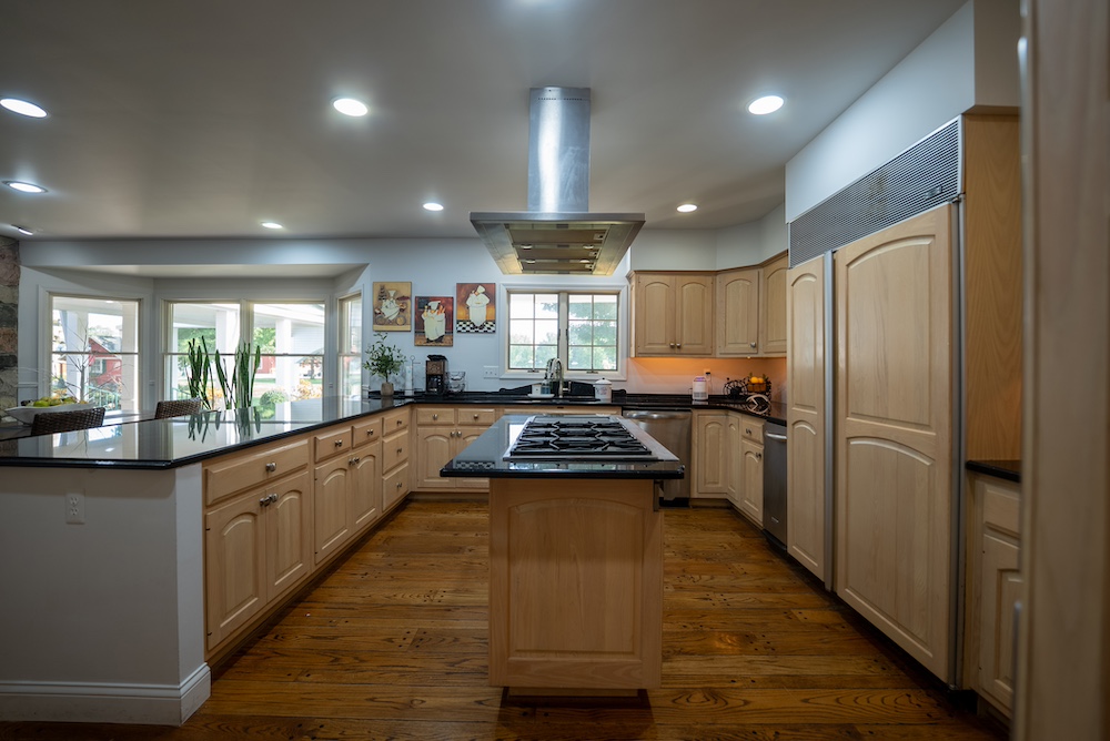 The kitchen serves as the home’s hub, featuring premium appliances, expansive counter space and a design that flows naturally into the dining and living areas. Whether preparing a quiet family meal or working alongside professional caterers during an event, the space is both functional and impressive.