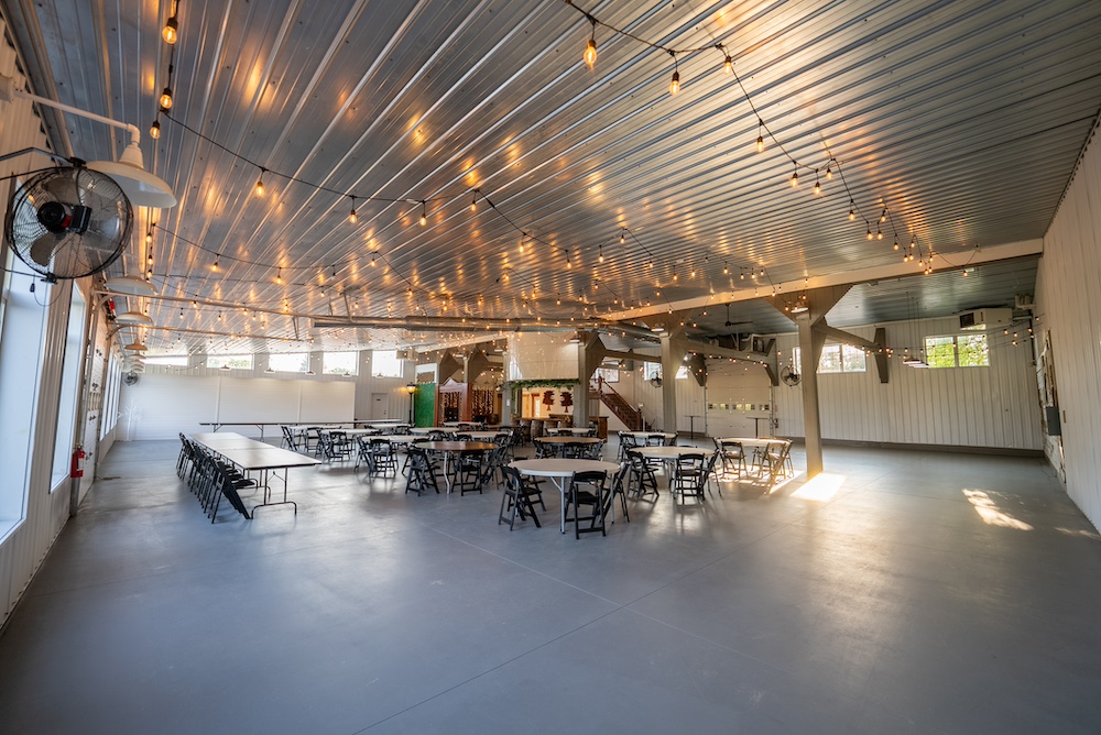 Complementing the wedding barn is a 65 by 45-foot welcome center barn, where guests gather before ceremonies or enjoy cocktails. Two matching 90 by 40-foot storage barns with cement floors ensure efficient, professional operations, with ample space for décor, equipment and supplies.