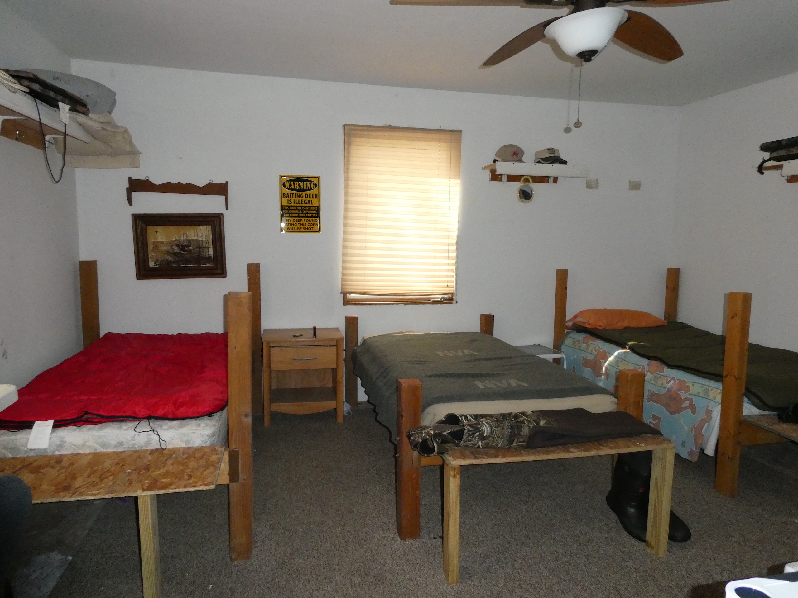 This property is a rare one in today's market. A sizable wooded parcel surrounded by private ground on three sides and 600+ acres of limited access state land on the other side. A medium-sized two-room cabin has a large bunk room with four beds and a large kitchen/living room combination. The cabin also has a full bathroom and shower. Directly in front of the cabin is a large pond loaded with largemouth bass up to 5 lbs or so and tons of panfish, including some very large bluegill. While I was there walking the property, the owner made 4 casts and caught 4 fish in less than 5 mins. The deer hunting is excellent, and the pictures are of deer taken off the property by the current owner over the past few years. He has had a minimum 8 point rule for over 10 yrs, and it shows. There are two trail systems on the property, one on the north side and one on the south side, allowing good access to the elevated blinds and stands. There are also several areas for food plots that are cleared and were planted at one time but are not now. This is what we all know as deer camp. It is quiet, secluded, with one neighbor on a road that gets approx. 3 cars per day down it. The road to access the property is excellent, as is the driveway into the cabin. If you're looking for a solid hunting property and some fun fishing, this is the place for you and your friends and family. Give me a call today to take a private tour, and you won't be disappointed.