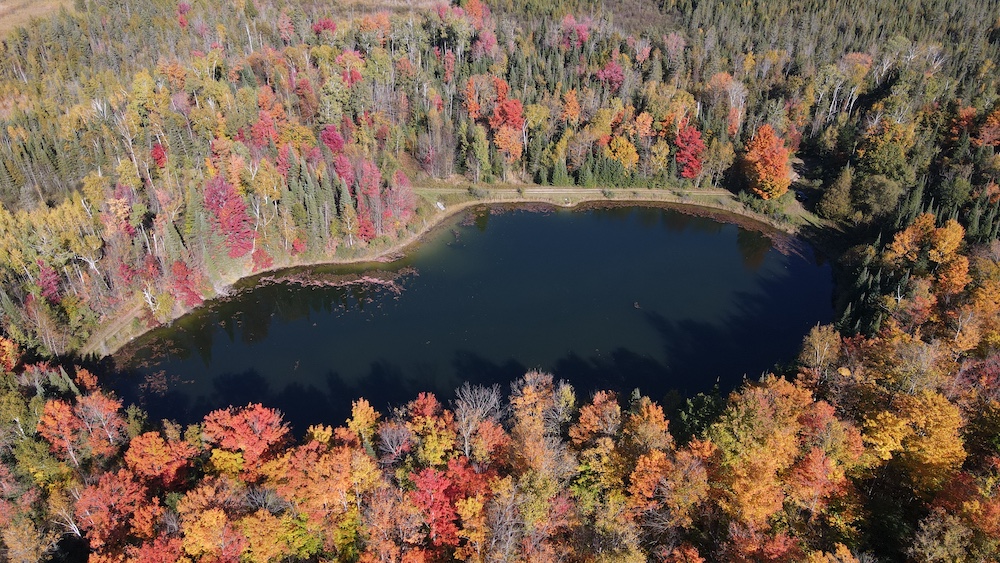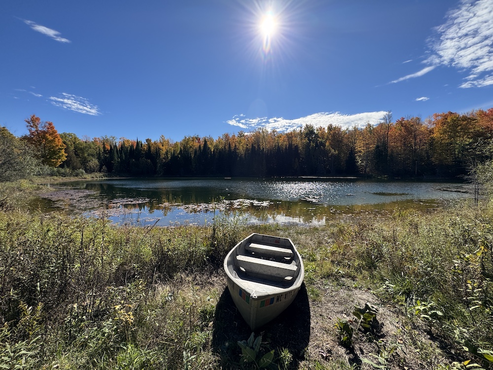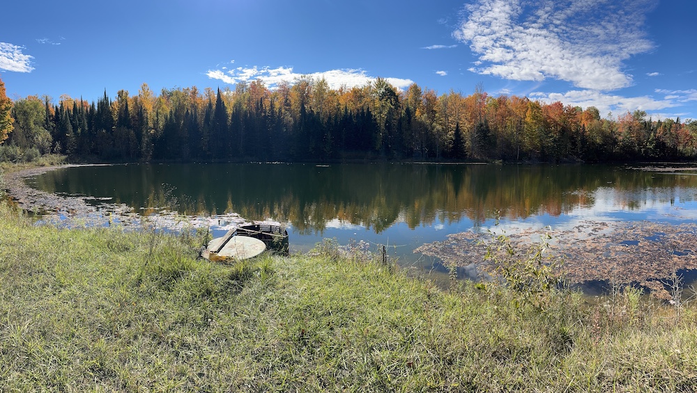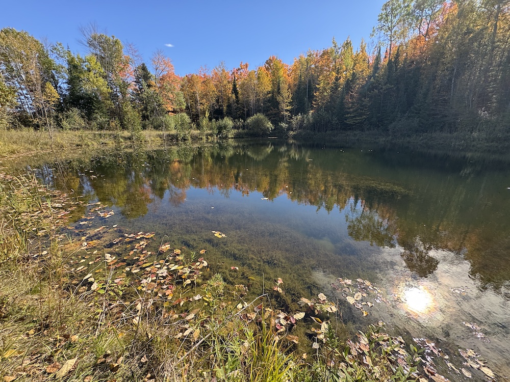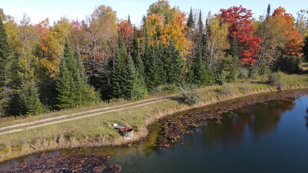 Beside the pond, a cozy cabin offers the perfect retreat, whether you’re spending a weekend outdoors or simply soaking in the natural beauty of the land.