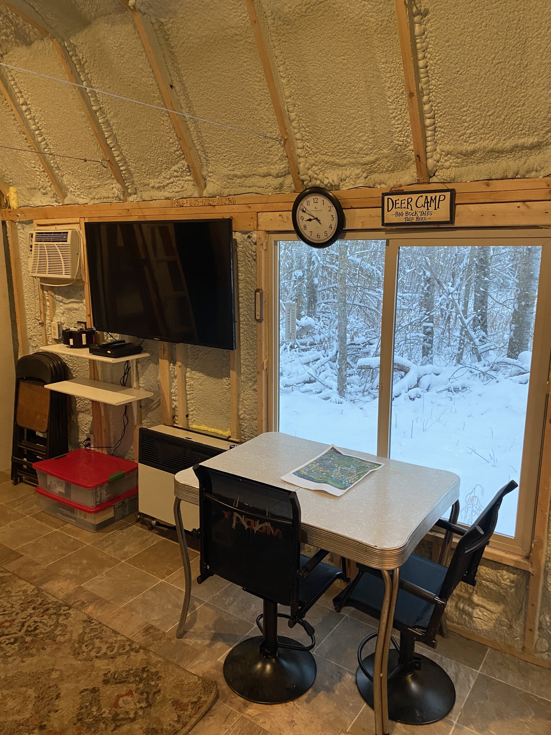 The 12’x28’ main cabin is a great place to enjoy the quiet evenings on your property. It has an air conditioner that keeps you cool during those hot summer days. The seller would consider selling the property without the main cabin.