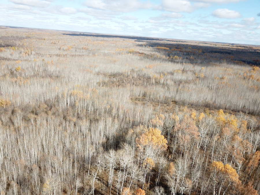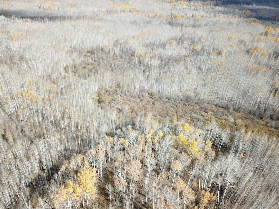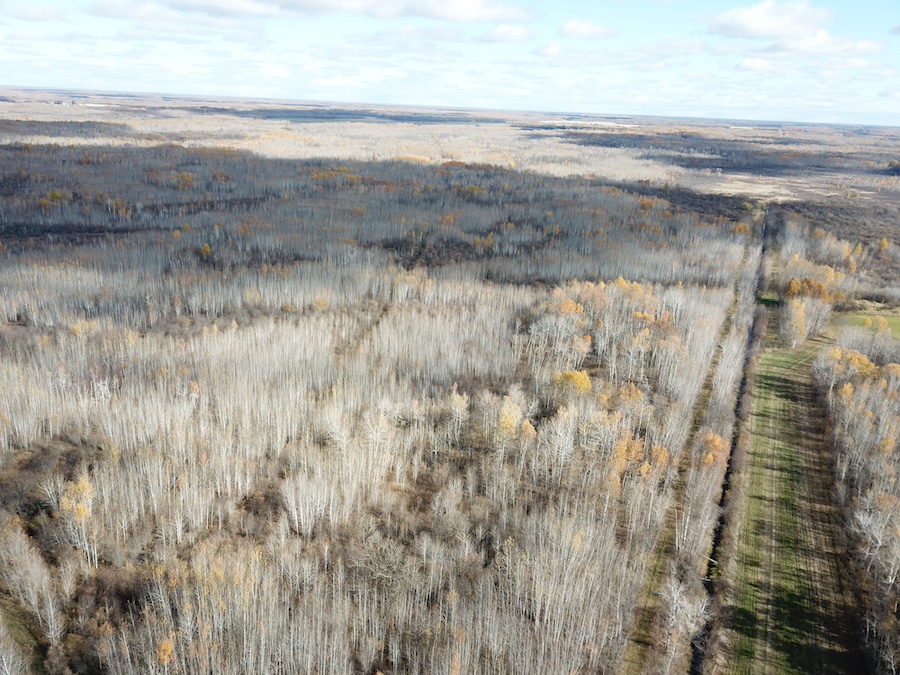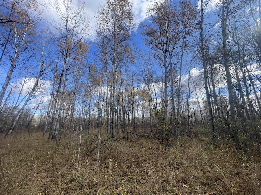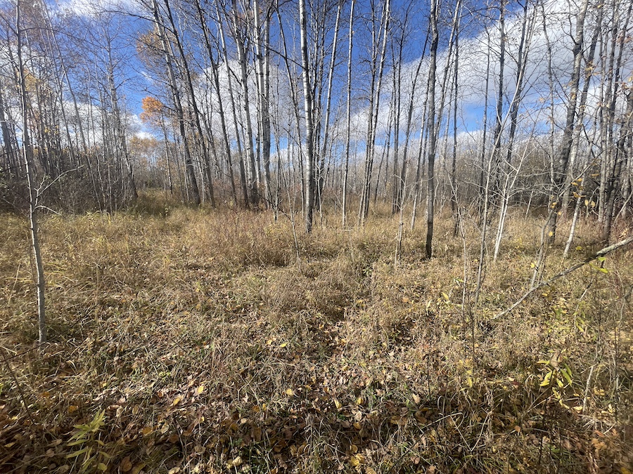 The land consists primarily of high ground with well-drained soils and patches of lower bedding areas that provide excellent cover for wildlife. The timber is a healthy mix of mature and younger growth aspen, with several scattered oak trees throughout the tract. This variety in vegetation supports a range of game species and contributes to strong habitat diversity.