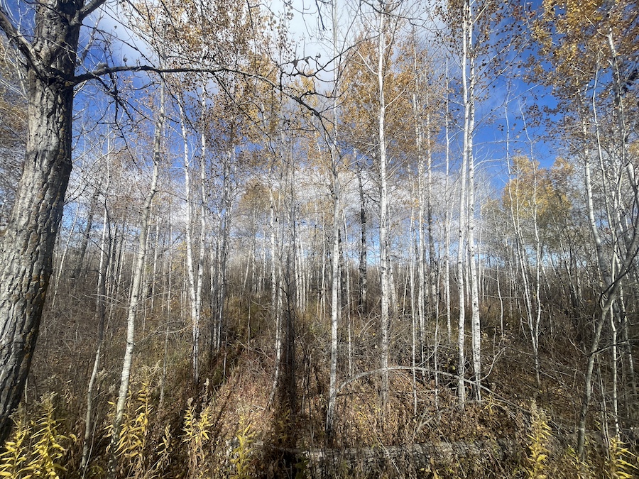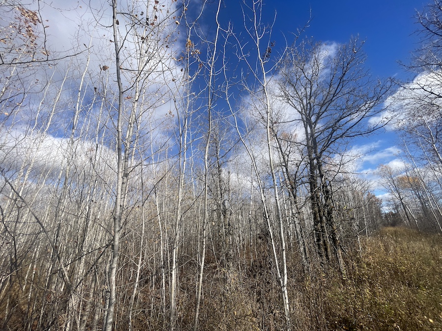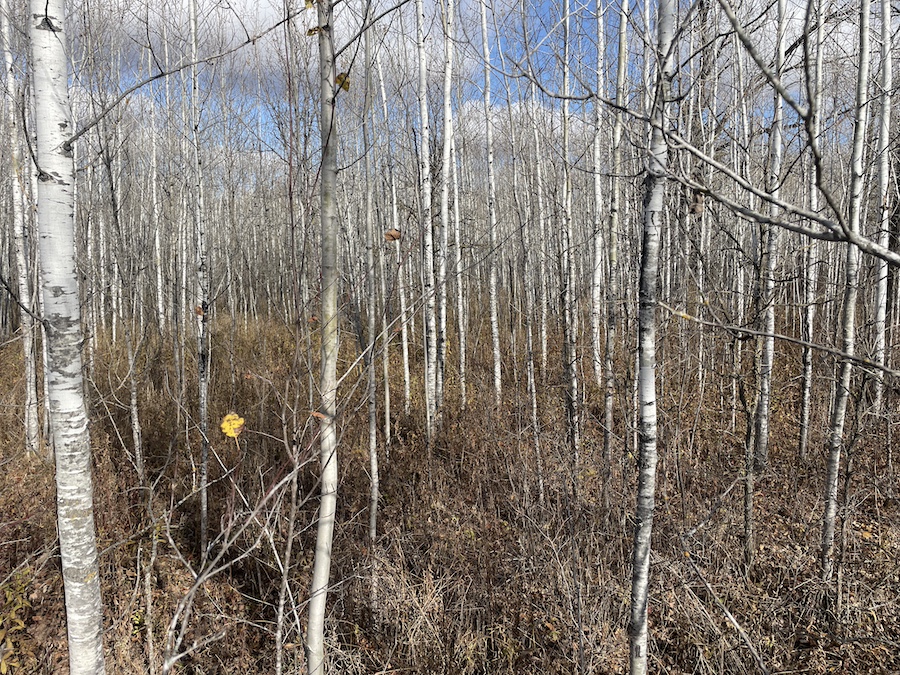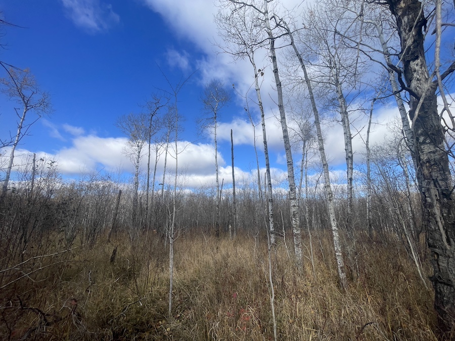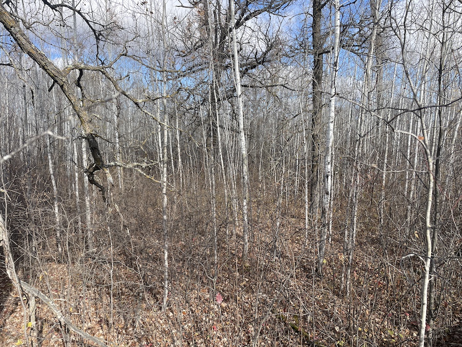 The land consists primarily of high ground with well-drained soils and patches of lower bedding areas that provide excellent cover for wildlife. The timber is a healthy mix of mature and younger growth aspen, with several scattered oak trees throughout the tract. This variety in vegetation supports a range of game species and contributes to strong habitat diversity.