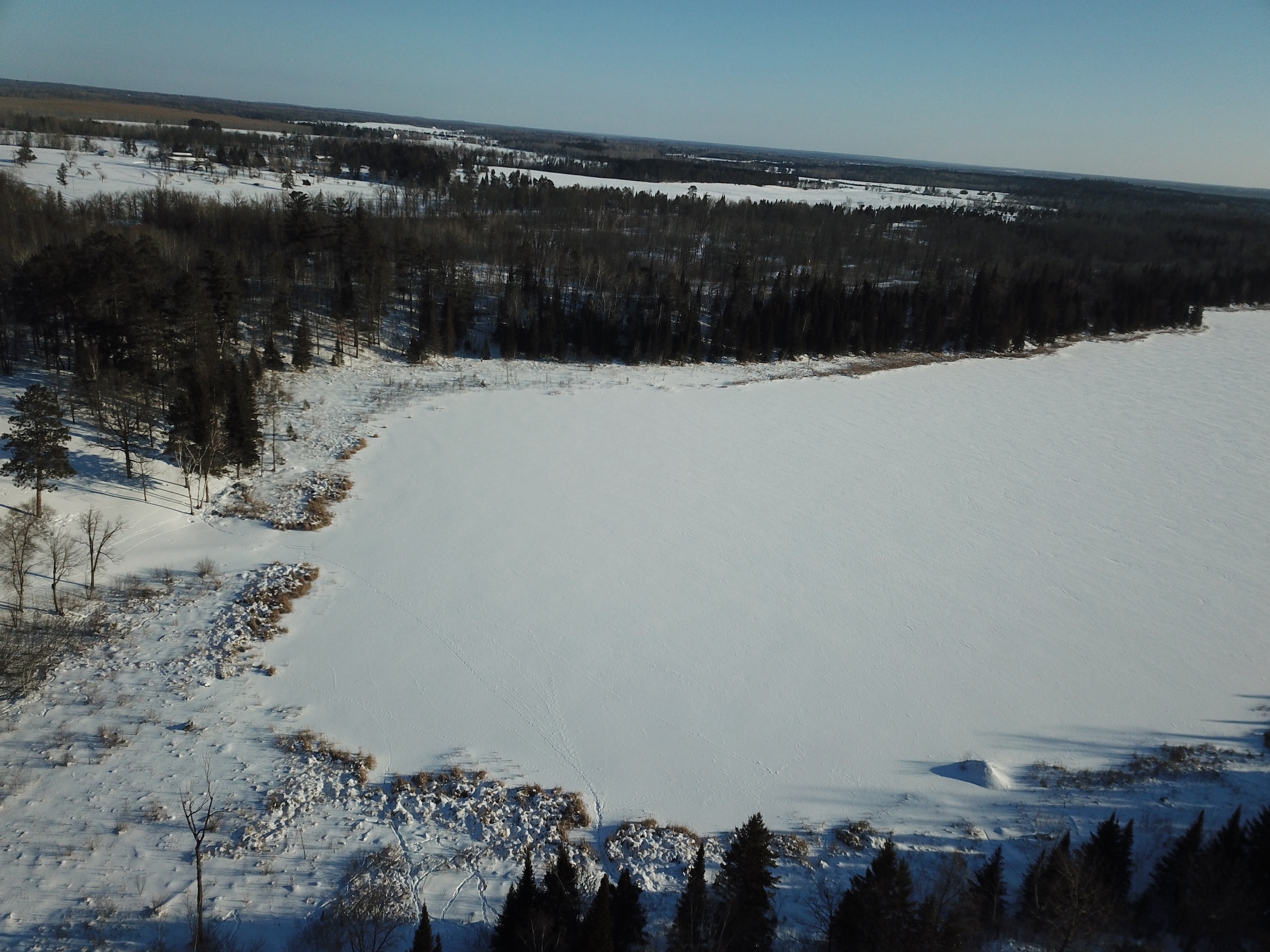Options are plentiful on this great Sabe Lake property just outside of Bagley. The property features approximately 650 ft of lakeshore, heavy timber, and great views. Sabe Lake is classified as a natural environment lake with no public access. The lake is approximately 48.5 acres in size and only has 3 landowners that encompass the whole lake. This means plenty of privacy. The property consists of big pines, popple, and scattered hardwoods. There are several potential building sites that offer easy access off Highway 2 and 159th Ave. There are around 1350 feet of frontage on Highway 2 with an already established approach into the property. This would make for an excellent place to build your dream home, Northwoods cabin, or spot to park your travel trailer for the summer months. Electricity is roadside and could be easily run to a building location. The recreational advantages are what set this property apart from the pack. You would have the ability to hunt grouse, deer, turkey, and waterfowl. The quietness of the lake will make for excellent waterfowl hunting and the natural pinch points and edges are great travel corridors for ambushing whitetail deer. So, put a dock in, drop the duck boat or kayak, put up a tree stand and start enjoying lake life in the Northwoods on this great property.
