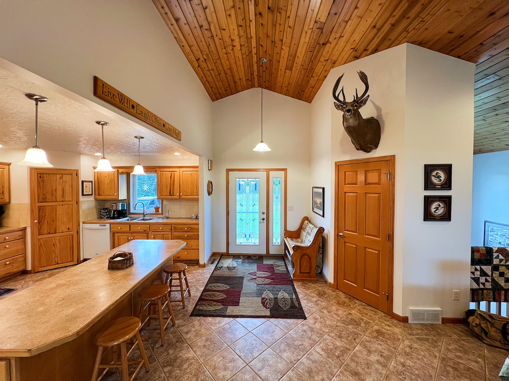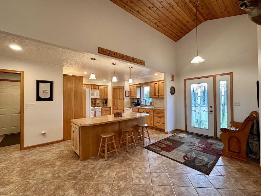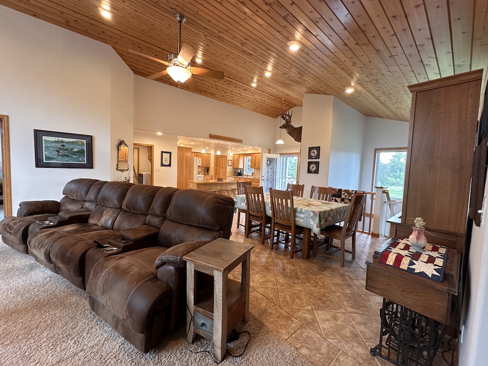 Located about 16 miles northwest of Alexandria in Douglas County, this country property combines spacious living with a functional outbuilding and a peaceful rural setting. Built in 2005 by the current owners, the home offers approximately 3,160 total square feet of living space. It includes three bedrooms as well as an existing craft room that could be converted to a fourth bedroom if desired. Inside, the vaulted great room is a central highlight, featuring a cedar tongue and groove ceiling that gives the space warmth and character. The kitchen includes custom hickory cabinets and a decorative tin ceiling that adds unique detail. The property is immaculately maintained and well-suited for a country lifestyle. An approx. 64-foot by 32-foot pole building with a concrete floor and power provides room for storage, equipment, or workshop activities. The yard features a complete irrigation system that not only waters the lawn but is also set up to water the garden. The garden space is ready for vegetables, flowers, or other plantings. A mature tree grove surrounds the property, offering privacy, windbreak, and wildlife habitat. A portion of a pond is located on the property by the road, giving the option to throw out a few decoys for waterfowl hunting if desired. Deer and other wildlife are commonly seen, and one could literally hunt deer in one's backyard. If you enjoy what you’ve seen so far but wish there was more acreage, hold on, as the sellers will entertain the option for adding on more acreage if desired to expand your hunting opportunities. Utilities on the property include power, a private sewer system, private well water, and internet service provided by Gardonville. If you’re not familiar with Alexandria, there is everything one needs, and it’s all within a short drive. The area is known for its lakes, fishing opportunities, and outdoor recreation. In addition, several public hunting land areas are located in the greater Alexandria area, providing additional opportunities for those interested in outdoor recreation. This property is well-suited for those seeking a rural home with functional outbuildings, established landscaping, and room to enjoy the country lifestyle. Please feel free to reach out and set up your private tour of this fine country estate!