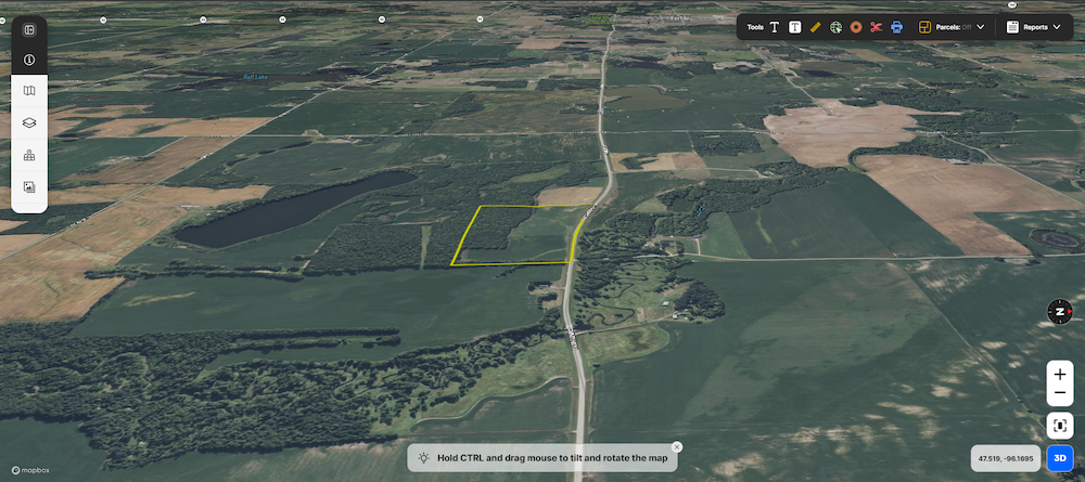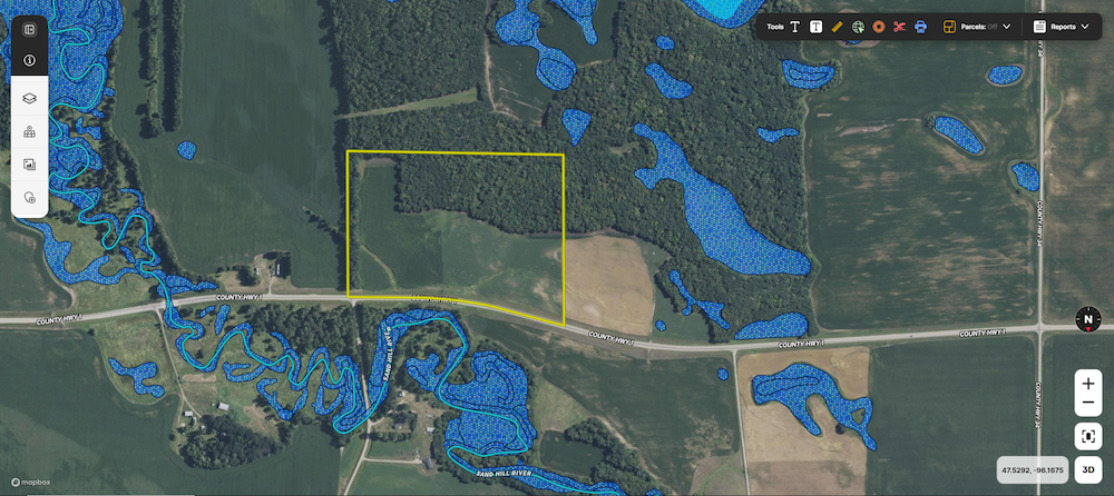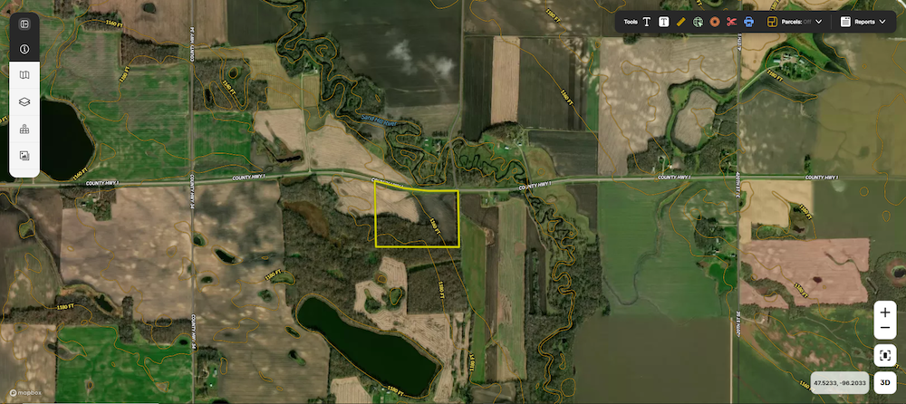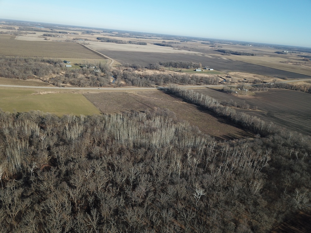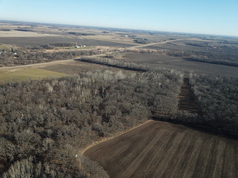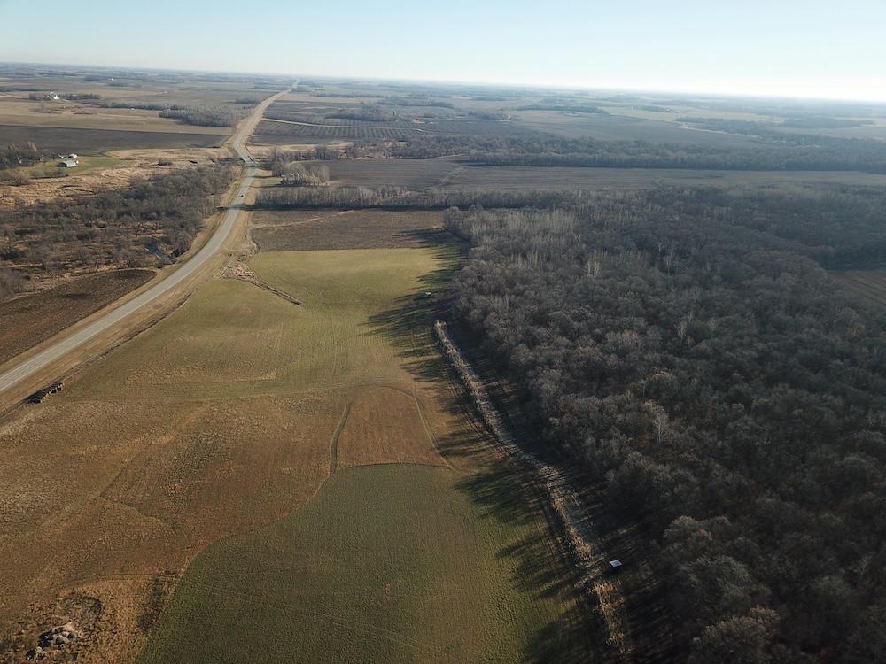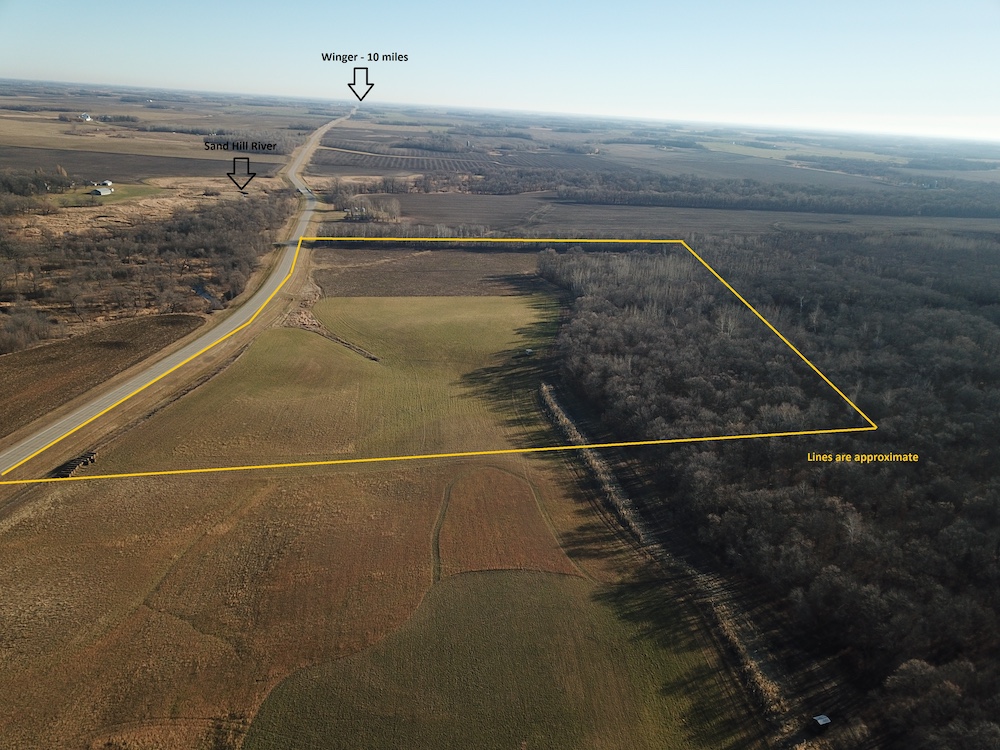 This forty-acre property sits approximately four and a half miles east of Fertile, Minnesota, on a well-maintained paved county road. The land offers a combination of tillable acres, timbered ground, varied topography, and convenient access to nearby communities, public lands, lakes, and essential services. Its location across from the Sand Hill River corridor provides a mix of natural features and agricultural productivity that is characteristic of this part of Polk County.