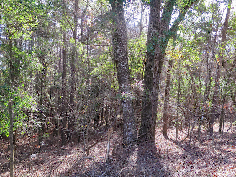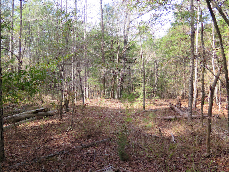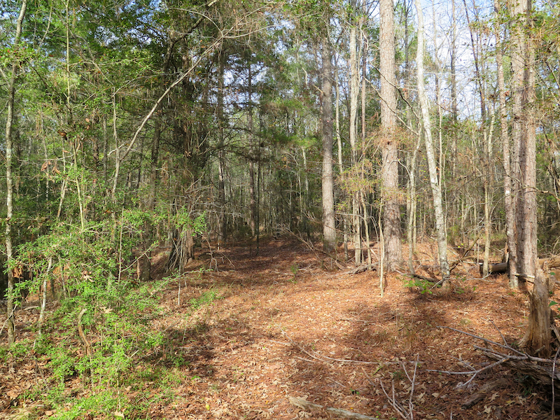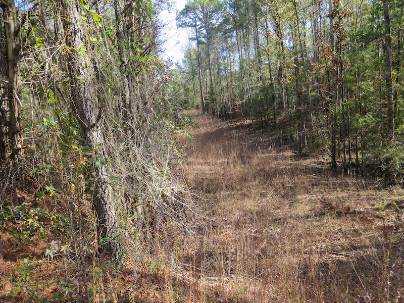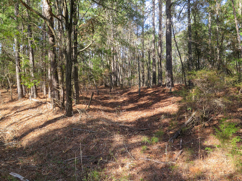 The tract features rolling hills and full timber cover, with a mix of pine and hardwood species that create excellent habitat for whitetail deer and other native game. The elevation change across the tract creates ideal bedding areas, natural travel corridors, and multiple stand locations. Ridges and saddles cut across both sides of the property, providing opportunities for strategic setups. Thicker cover in the low-lying areas offers daytime security for whitetail deer, while the upper ground gives solid vantage points and dry access throughout the seasons.