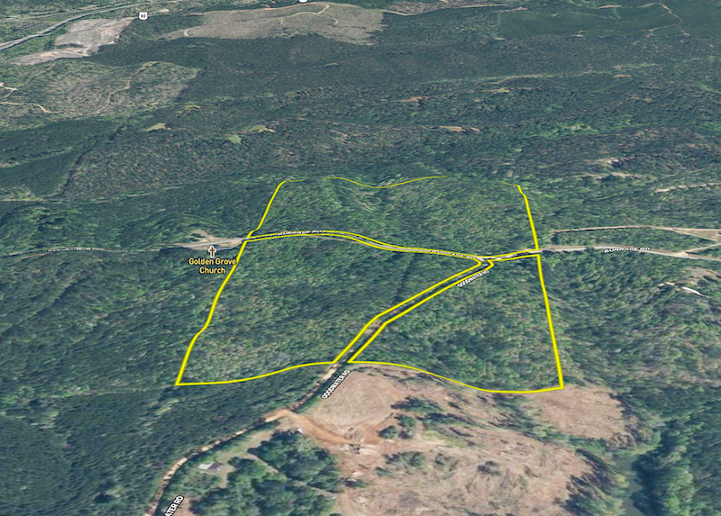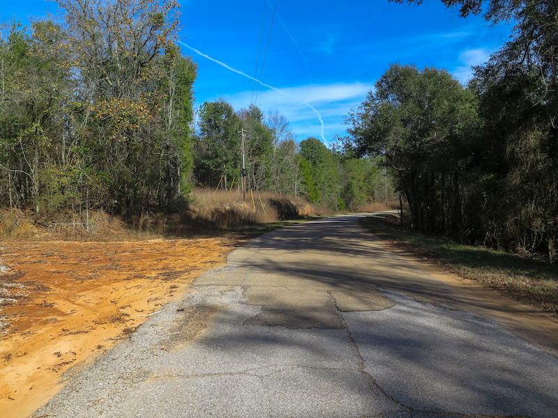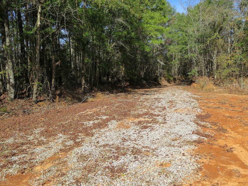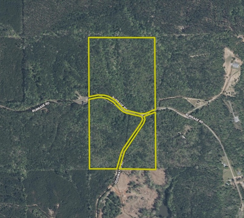 Access is a key advantage here. The land spans both sides of paved Burrage Rd and also fronts Goodwater Rd, a gravel road that cuts through the southern portion of the property. Gravel driveways are already in place on both sides of Burrage Rd, providing vehicle access to both sections of the tract.
