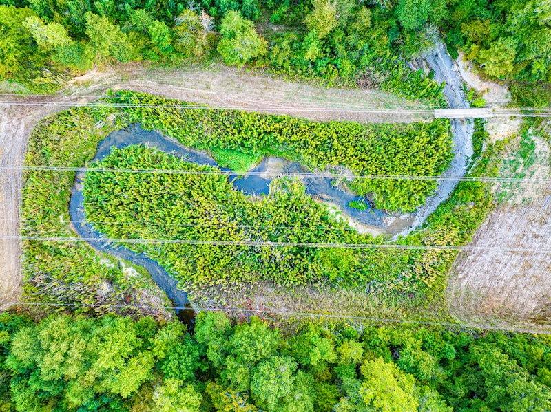 Cane Creek crosses this property, offering flowing water, hardwood draws, and natural funnels for wildlife. The terrain features gentle ridges and rolling ground suitable for planted pine on portions, which naturally transition to creek bottoms and wooded draws. The property is approximately ½ miles from the Tenn‑Tom Waterway, giving access to one of the most significant recreational waterways in the region.