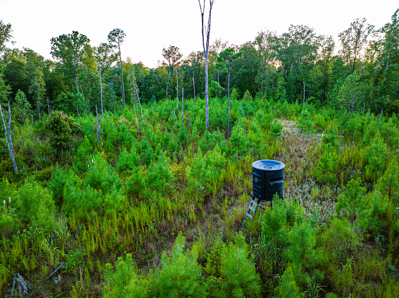 Food plots are established and well distributed to support wildlife year‑round. Existing food plot sizes are: 2.65 acres, 0.76 acres, 2.40 acres, and 0.66 acres. These plots provide feeding and viewing opportunities for deer and turkeys, particularly when integrated with timber cover and water sources. Bedding, feeding, and water are all represented within this property.