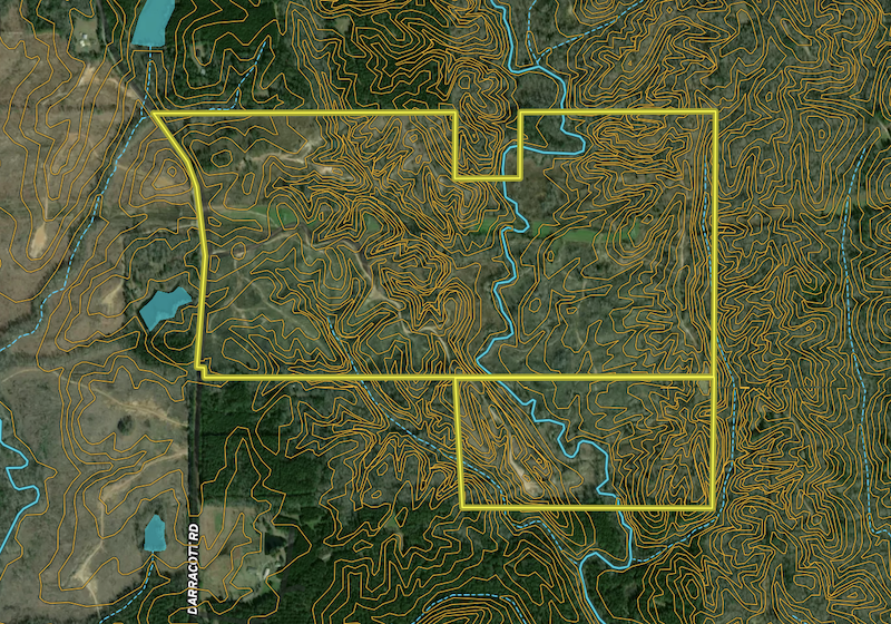 There are planted pine stands approximately 6 years old and 7 years old. These stands are well established and provide both cover and future income potential. Between these planted pines are hardwood and natural cover areas, especially along Cane Creek and in draws connected to the creek system.