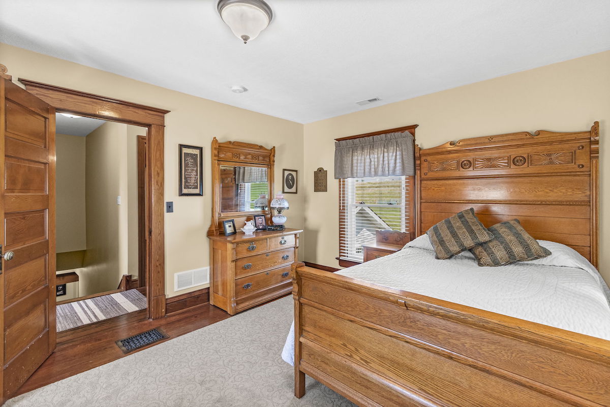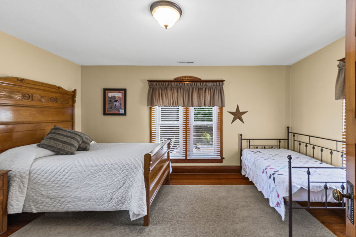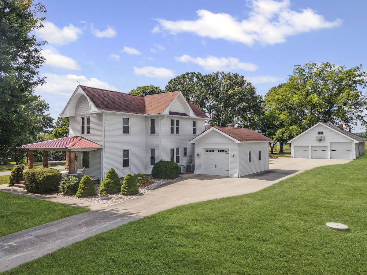 There aren’t enough words to accurately describe the architectural masterpiece that makes up this home. While walking the halls of this immaculate, restored farmhouse, one can’t help but stand in awe of how beautifully preserved the fine details and craftsmanship are. It’s hard not to imagine the history and the conversations that took place over the last 130 years in this house. Life on the farm is perfectly encapsulated throughout this property. The main house boasts over 3,100 square feet of updated, yet carefully maintained finishes, 3 bedrooms, 2 bathrooms, and a new kitchen and living addition. The kitchen is waiting for family and friends to gather and provide from the new stainless steel appliances, oversized island, farmhouse sink, and dining area large enough for a 12-foot dining room table. Get cozy around the beautiful stone fireplace in the living area or unwind on the classic wrap-around porch. Comfort is not lacking anywhere here, and you’ll surely feel it as soon as you step inside the front door. This house is already a home and is eagerly waiting for its next family to create a lifetime of memories. There are mother-in-law quarters in the backyard, complete with 1 bedroom, 1 bathroom, a full kitchen, and a living area. You will not run out of places to park your cars, trucks, farm equipment, and toys! There is a one car attached garage to the main house, an attached shop/garage with three bay doors on the second home, a detached three car garage with large bay door on the backside, barn with a 6 stall lean-to, additional shop with three stall lean-to and built in chicken coop and run, and gorgeous red barn with 4 bay doors and hayloft. You will not run out of storage! This whole space is nothing short of tranquil; country life at its best. Enjoy a picnic under the numerous, towering trees that provide ample shade. Collect pecans from the pecan trees, watch the kids play in the playhouse, gather around the outside fireplace, and just be. Whether you have an existing operation or are starting new, there is plenty of land to accommodate your livestock! Approximately 76+/- fully fenced acres, including several ponds and a working well, combined with the accessible barns on the property, provide for all your farming needs. The ground is currently being used as productive hay ground for additional property revenue. To top it off, there is approximately a quarter-mile stretch of direct access to Buckner Tarsney Road and approximately ½ mile of blacktop frontage bordering the south side of the property along Heidelberger Rd. If you are searching for a timeless home, steeped with rustic elegance, and expansive acreage for all your farming and homesteading needs, this is it. Again, there aren’t adequate words to paint this picture….you need to see it to fully appreciate it. Call us for a private showing today!