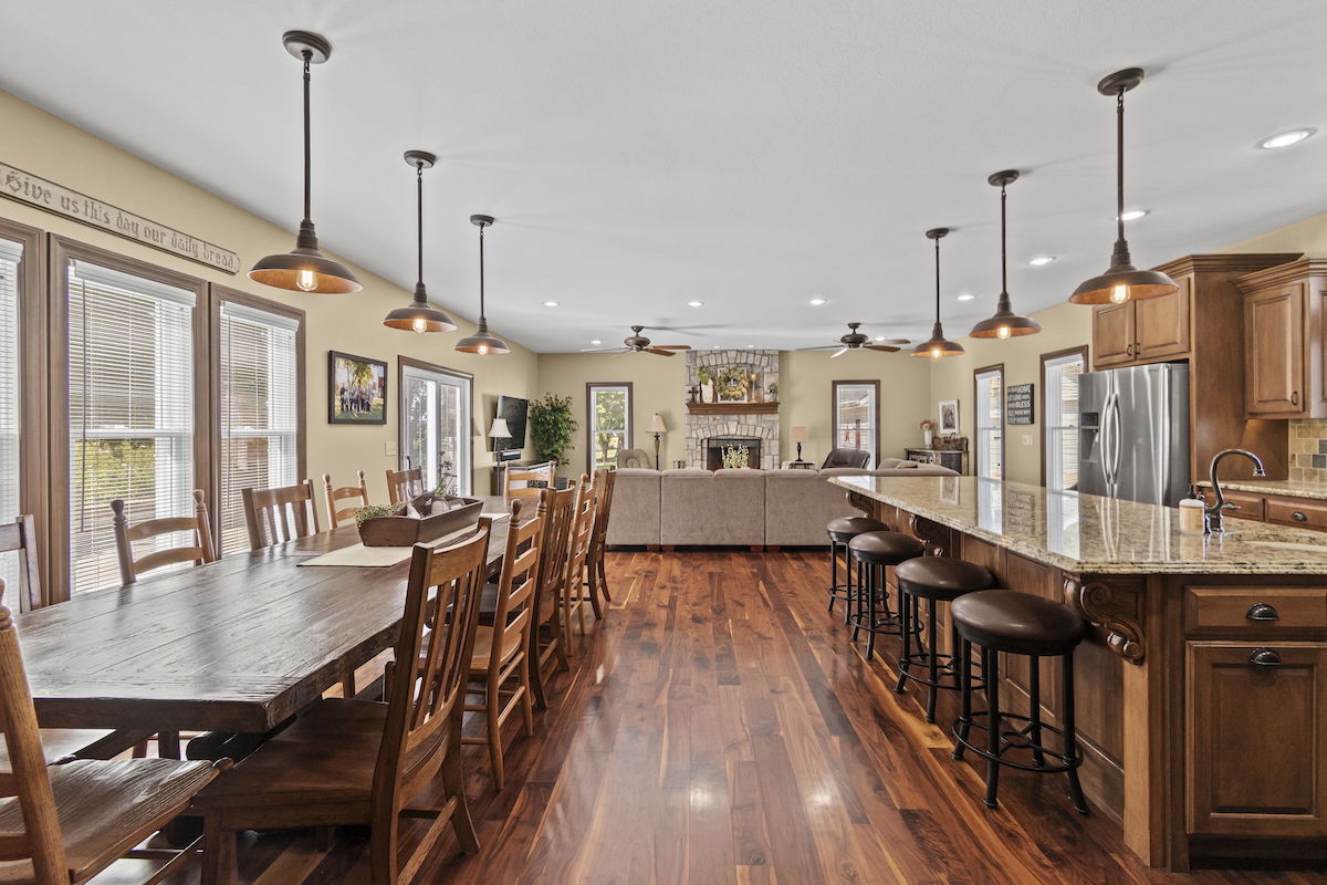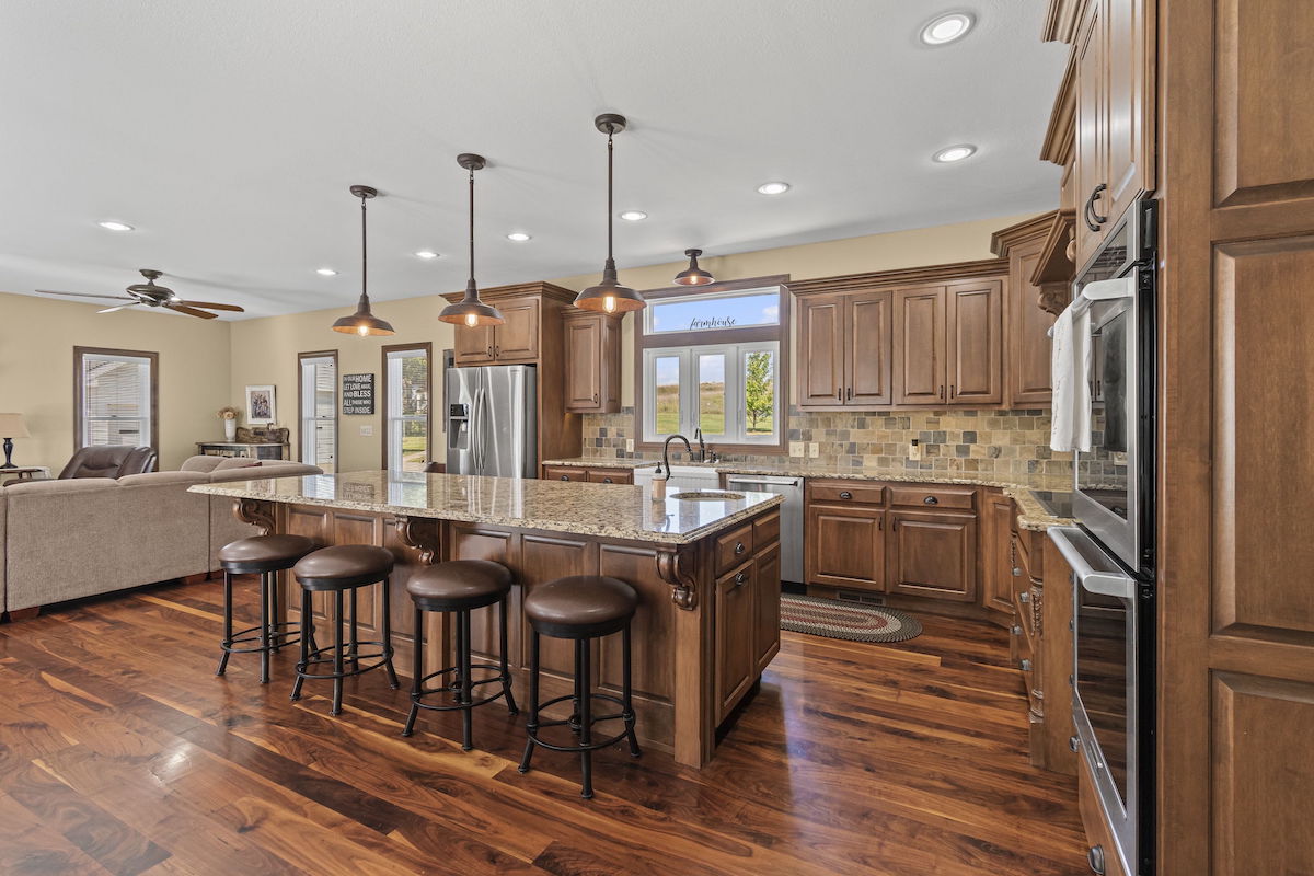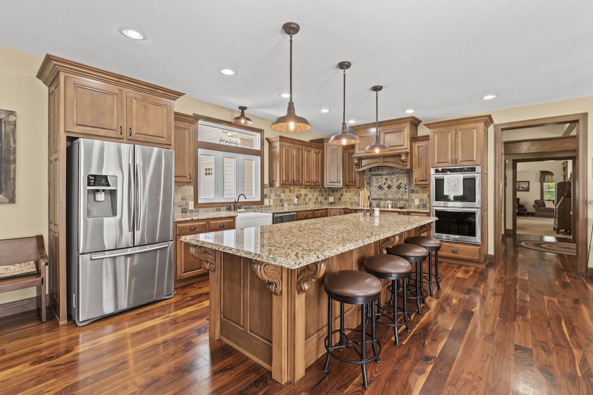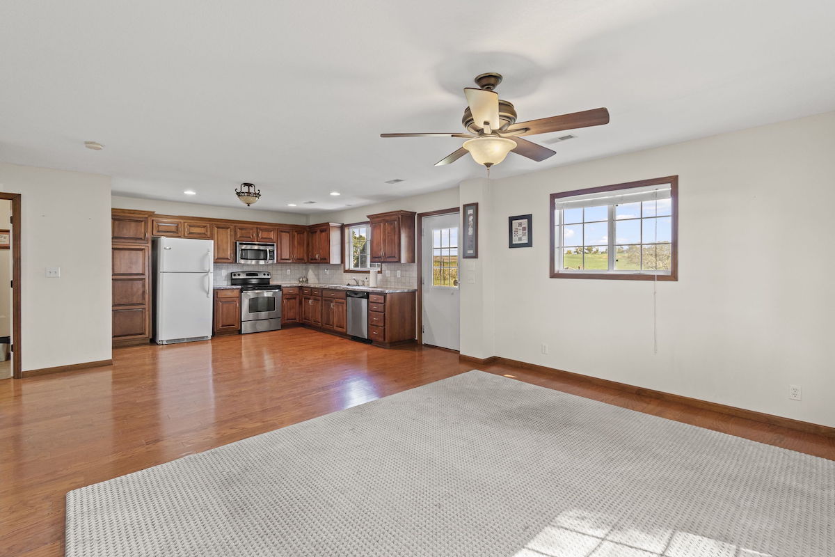There aren’t enough words to accurately describe the architectural masterpiece that makes up this home. While walking the halls of this immaculate, restored farmhouse, one can’t help but stand in awe of how beautifully preserved the fine details and craftsmanship are. It’s hard not to imagine the history and the conversations that took place over the last 130 years in this house. Life on the farm is perfectly encapsulated throughout this property. The main house boasts over 3,100 square feet of updated, yet carefully maintained finishes, 3 bedrooms, 2 bathrooms, and a new kitchen and living addition. The kitchen is waiting for family and friends to gather and provide from the new stainless steel appliances, oversized island, farmhouse sink, and dining area large enough for a 12-foot dining room table. Get cozy around the beautiful stone fireplace in the living area or unwind on the classic wrap-around porch. Comfort is not lacking anywhere here, and you’ll surely feel it as soon as you step inside the front door. This house is already a home and is eagerly waiting for its next family to create a lifetime of memories. There are mother-in-law quarters in the backyard, complete with 1 bedroom, 1 bathroom, a full kitchen, and a living area. You will not run out of places to park your cars, trucks, farm equipment, and toys! There is a one car attached garage to the main house, an attached shop/garage with three bay doors on the second home, a detached three car garage with large bay door on the backside, barn with a 6 stall lean-to, additional shop with three stall lean-to and built in chicken coop and run, and gorgeous red barn with 4 bay doors and hayloft. You will not run out of storage! This whole space is nothing short of tranquil; country life at its best. Enjoy a picnic under the numerous, towering trees that provide ample shade. Collect pecans from the pecan trees, watch the kids play in the playhouse, gather around the outside fireplace, and just be. Whether you have an existing operation or are starting new, there is plenty of land to accommodate your livestock! Approximately 76+/- fully fenced acres, including several ponds and a working well, combined with the accessible barns on the property, provide for all your farming needs. The ground is currently being used as productive hay ground for additional property revenue. To top it off, there is approximately a quarter-mile stretch of direct access to Buckner Tarsney Road and approximately ½ mile of blacktop frontage bordering the south side of the property along Heidelberger Rd. If you are searching for a timeless home, steeped with rustic elegance, and expansive acreage for all your farming and homesteading needs, this is it. Again, there aren’t adequate words to paint this picture….you need to see it to fully appreciate it. Call us for a private showing today!