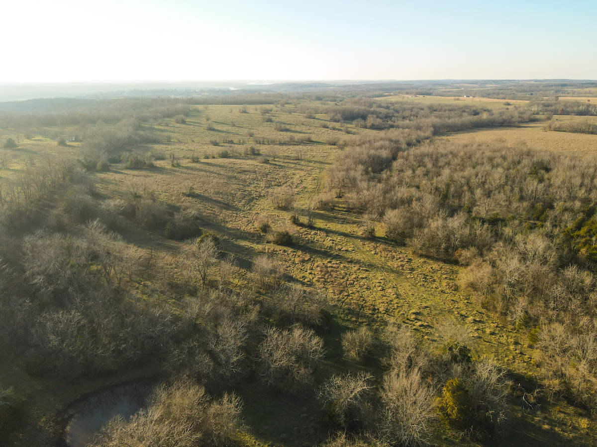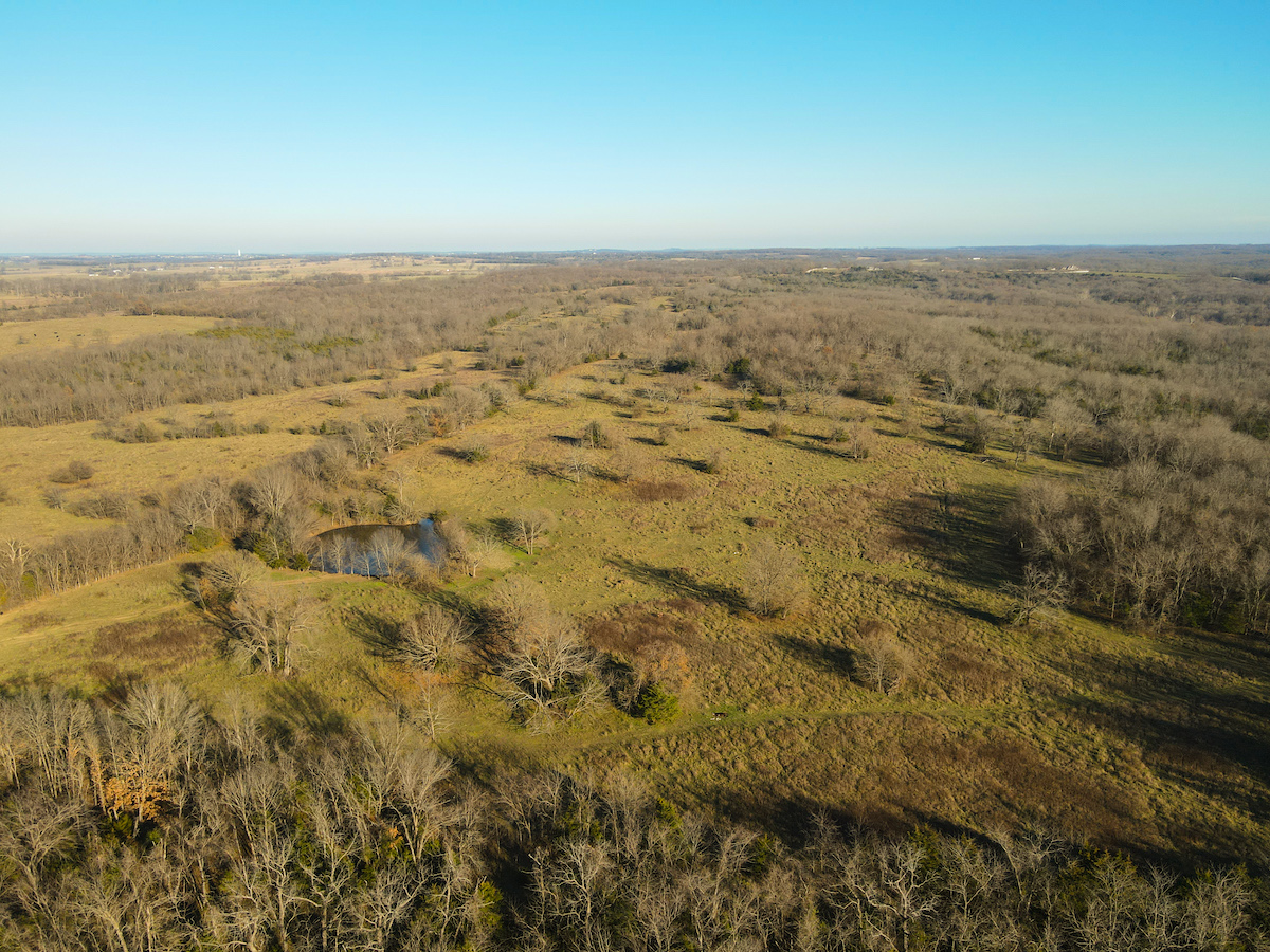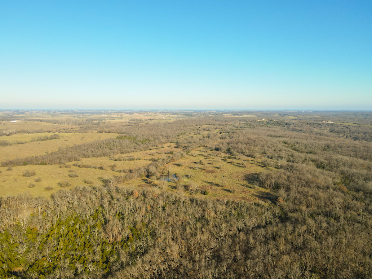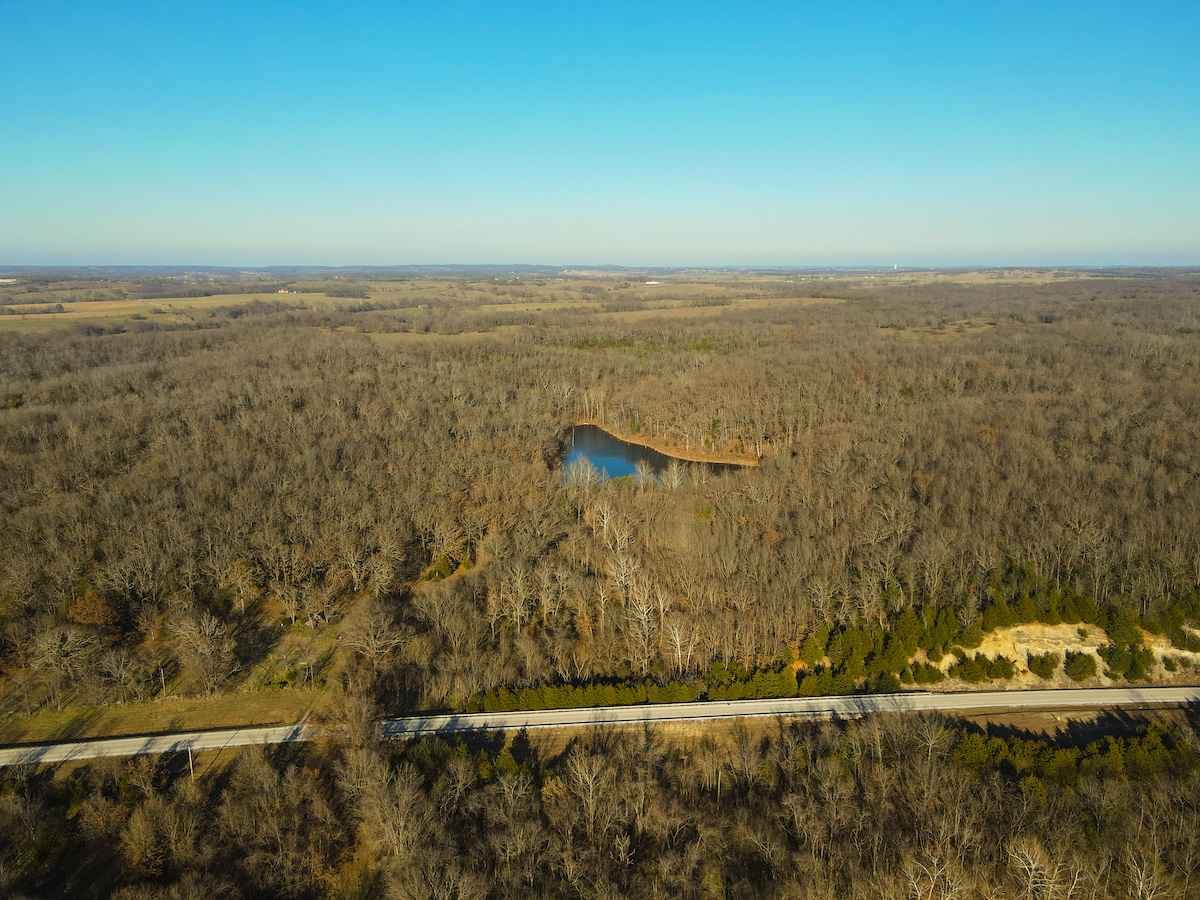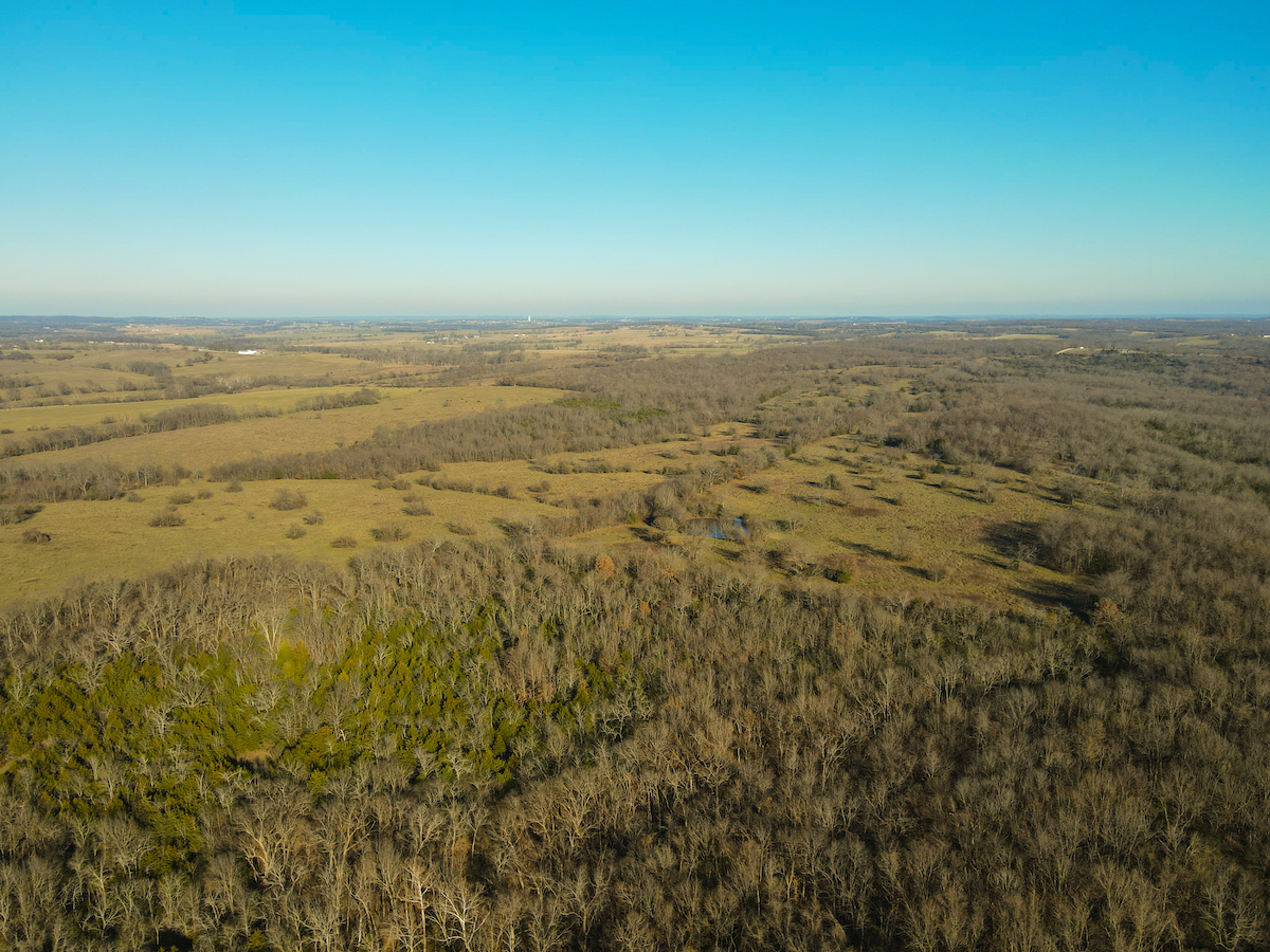 Hutcheson Farm, offered for the first time since the 1880s, this remarkable 1,055± acres near Bolivar and along the southern waters of Stockton Lake is one of the largest and most historic landholdings to come to market in Polk County in generations. Located directly across from the beautiful Stockton Lake, the property offers direct Highway T access, multiple gated entrances, and over four miles of road frontage—providing exceptional convenience while preserving total seclusion, outstanding hunting, and a true blank canvas for the next owner. High ridges across the property offer incredible views and ideal building locations. With minimal hunting pressure in recent years, great habitat, and unique topography, the deer and turkey populations are exceptional.