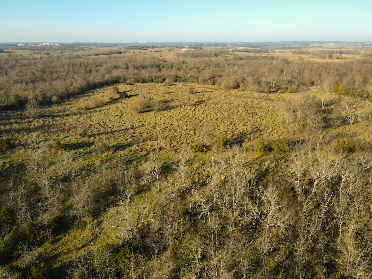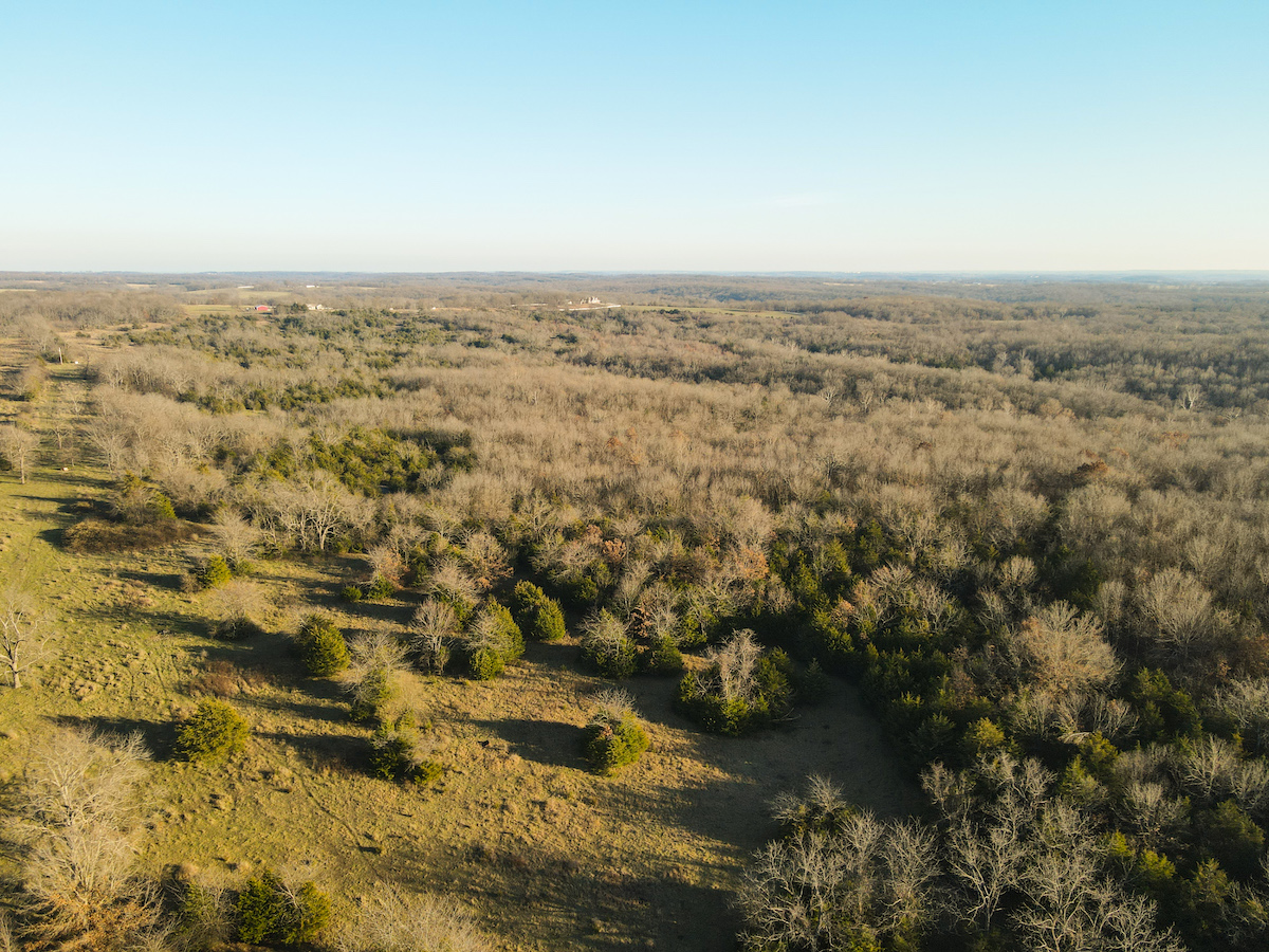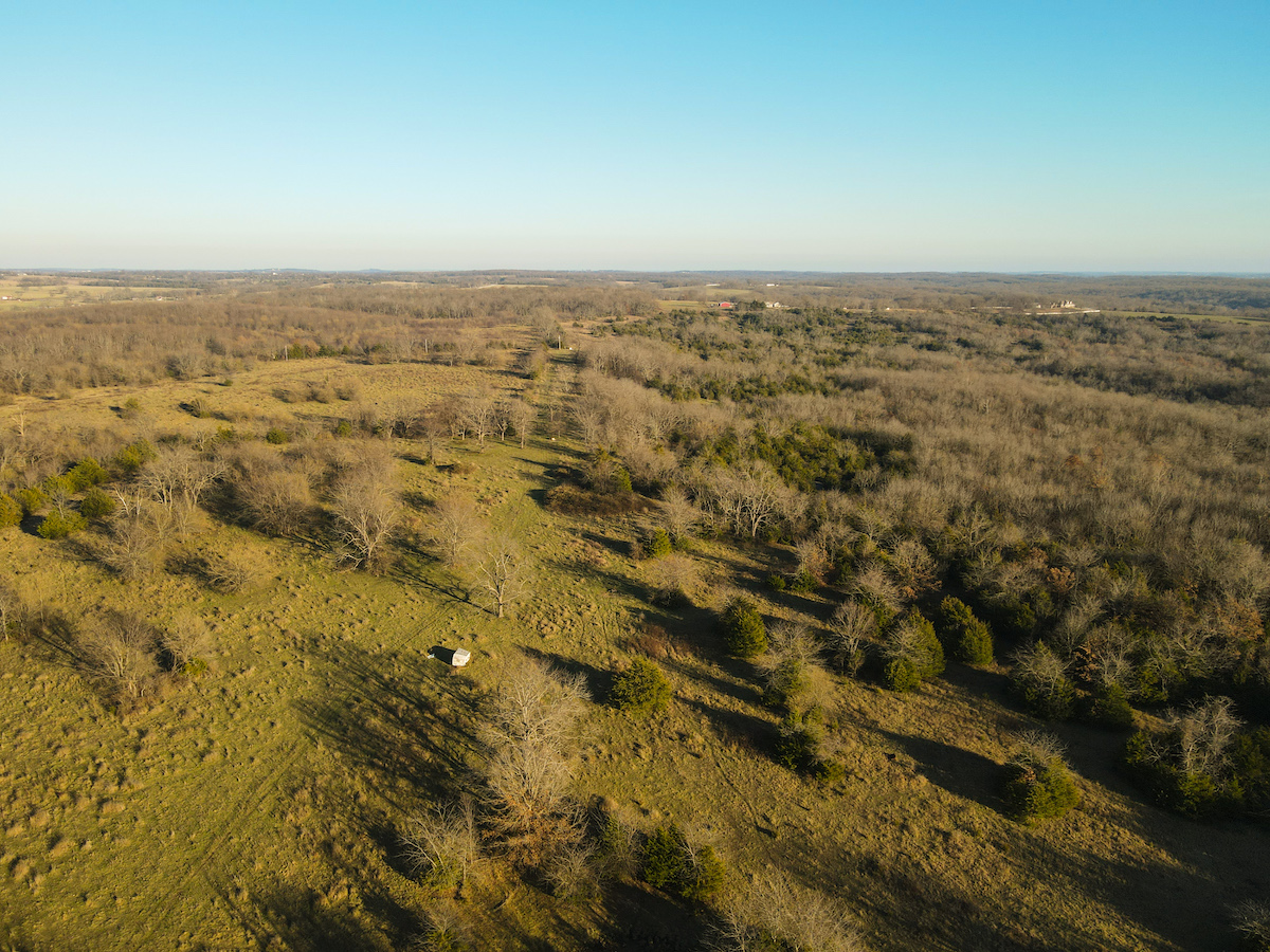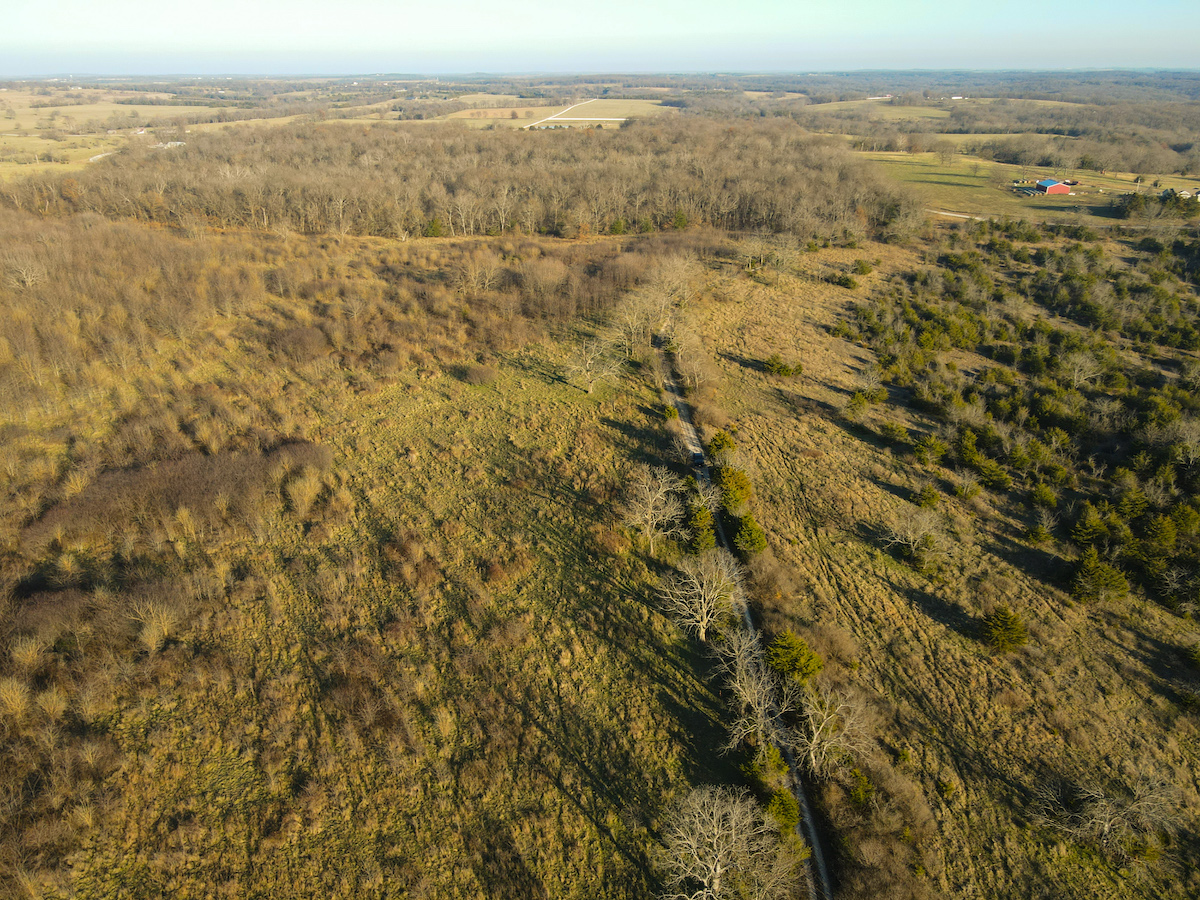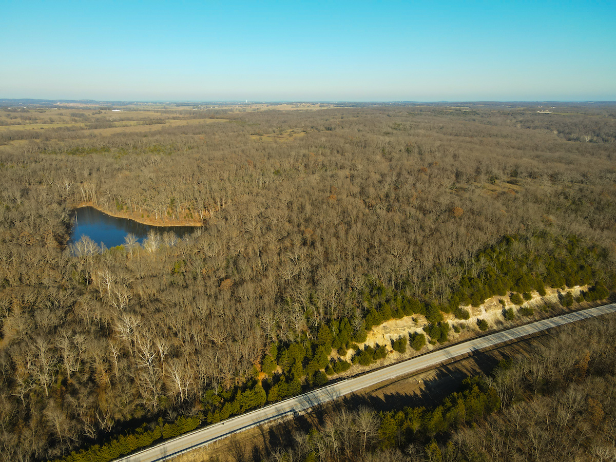 Hutcheson Farm, offered for the first time since the 1880s, this remarkable 1,055± acres near Bolivar and along the southern waters of Stockton Lake is one of the largest and most historic landholdings to come to market in Polk County in generations. Located directly across from the beautiful Stockton Lake, the property offers direct Highway T access, multiple gated entrances, and over four miles of road frontage—providing exceptional convenience while preserving total seclusion, outstanding hunting, and a true blank canvas for the next owner. High ridges across the property offer incredible views and ideal building locations. With minimal hunting pressure in recent years, great habitat, and unique topography, the deer and turkey populations are exceptional.