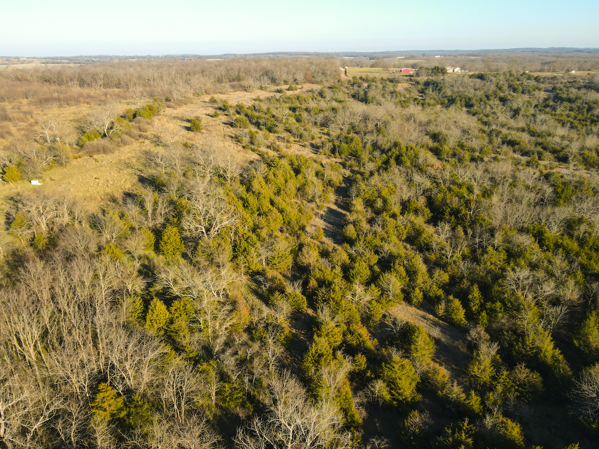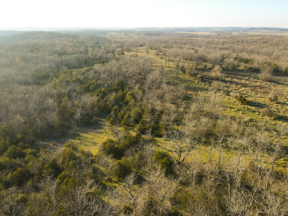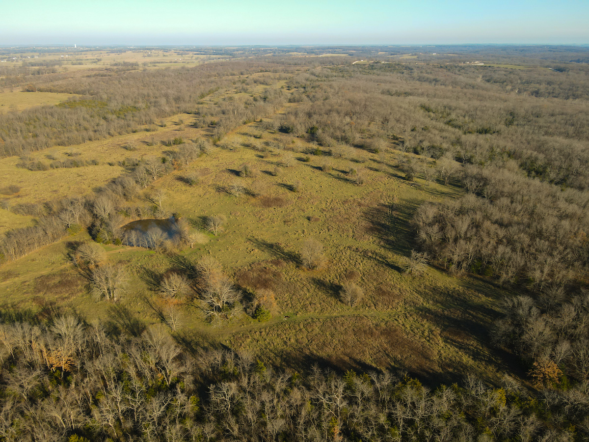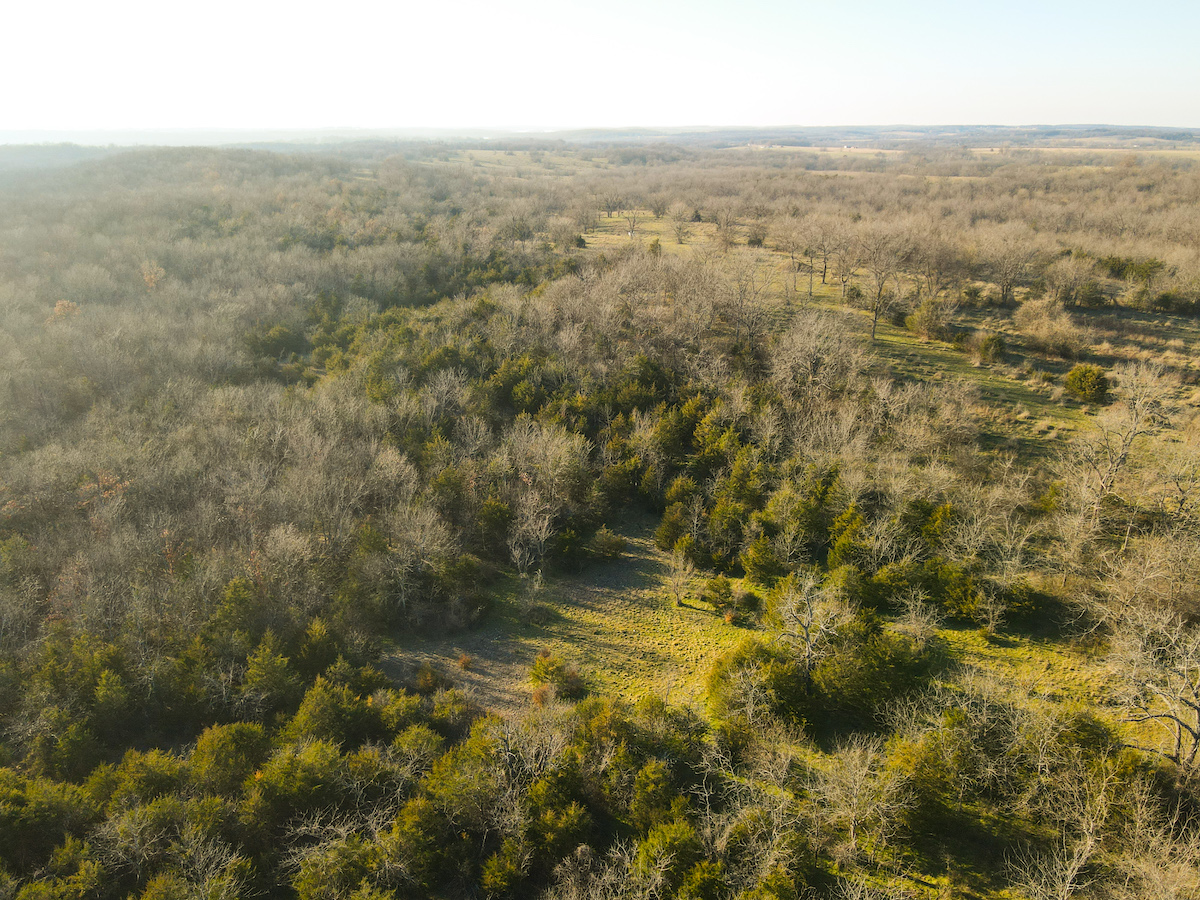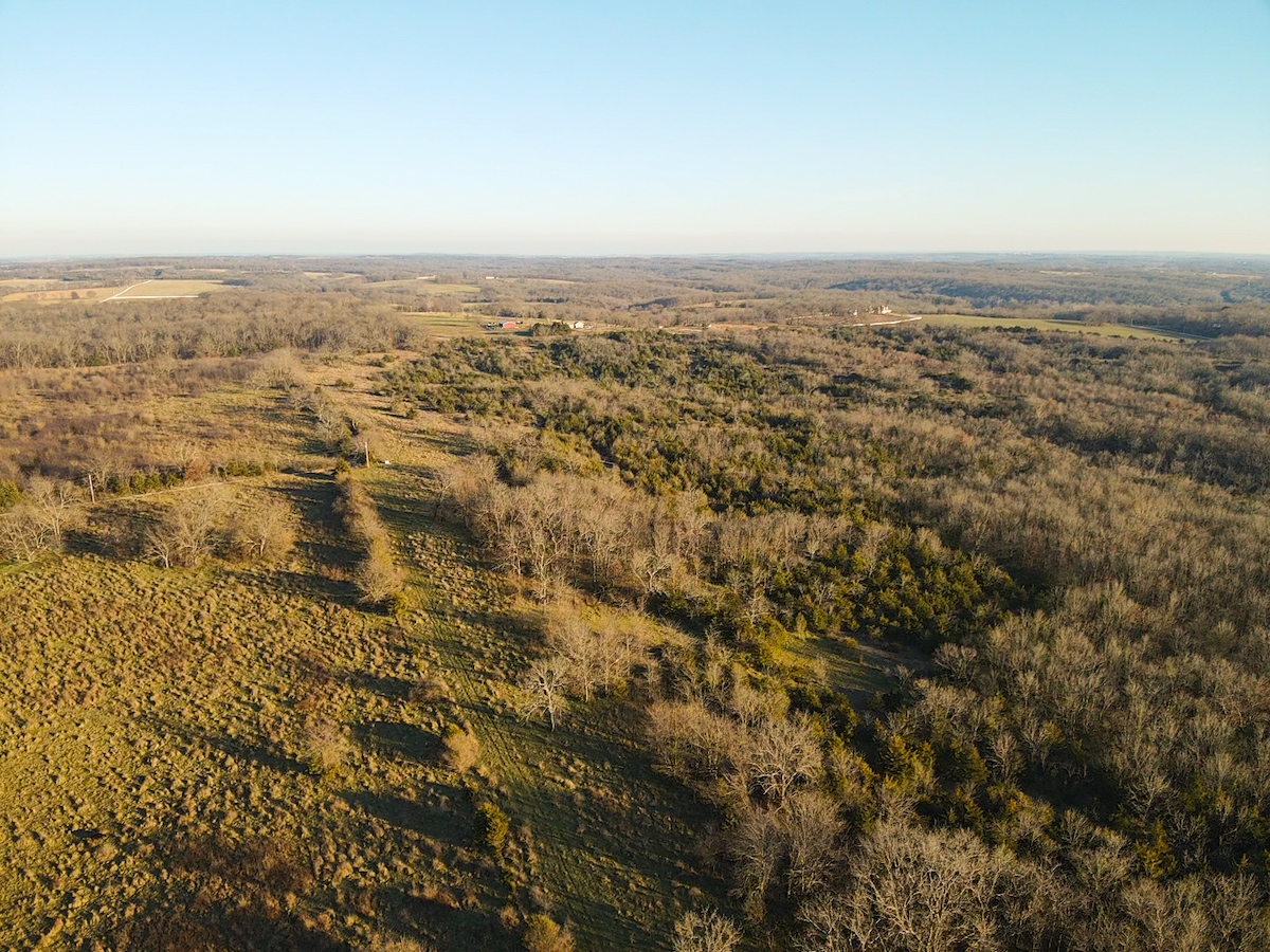 Hutcheson Farm, offered for the first time since the 1880s, this remarkable 1,055± acres near Bolivar and along the southern waters of Stockton Lake is one of the largest and most historic landholdings to come to market in Polk County in generations. Located directly across from the beautiful Stockton Lake, the property offers direct Highway T access, multiple gated entrances, and over four miles of road frontage—providing exceptional convenience while preserving total seclusion, outstanding hunting, and a true blank canvas for the next owner. High ridges across the property offer incredible views and ideal building locations. With minimal hunting pressure in recent years, great habitat, and unique topography, the deer and turkey populations are exceptional.