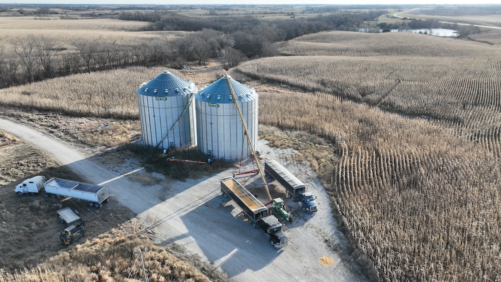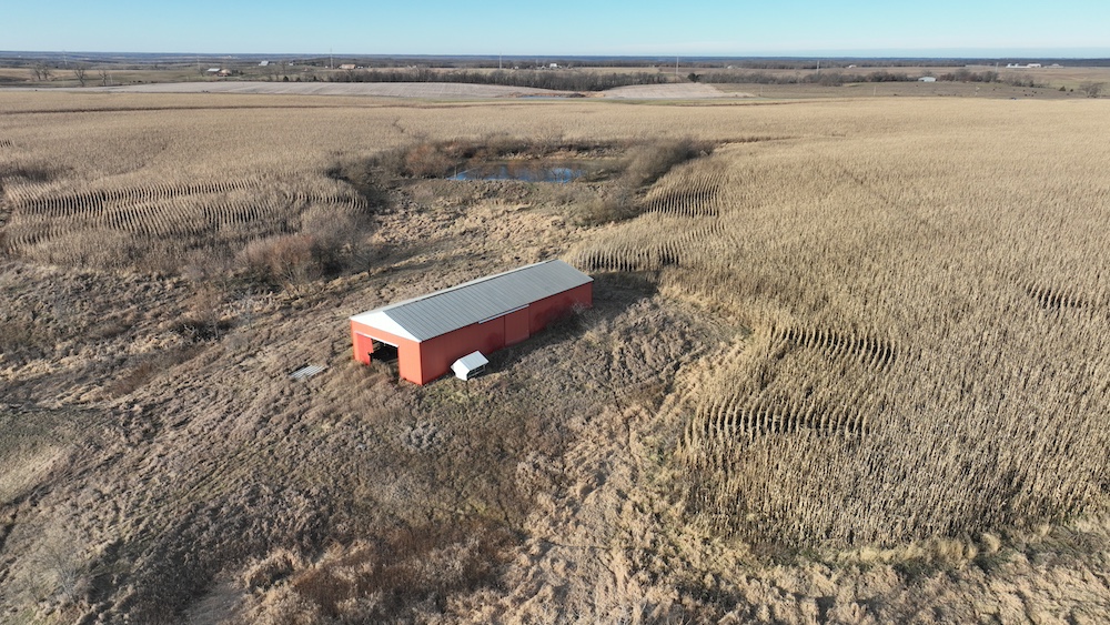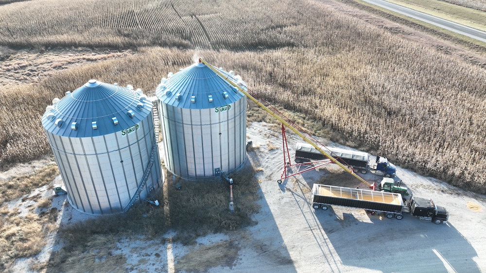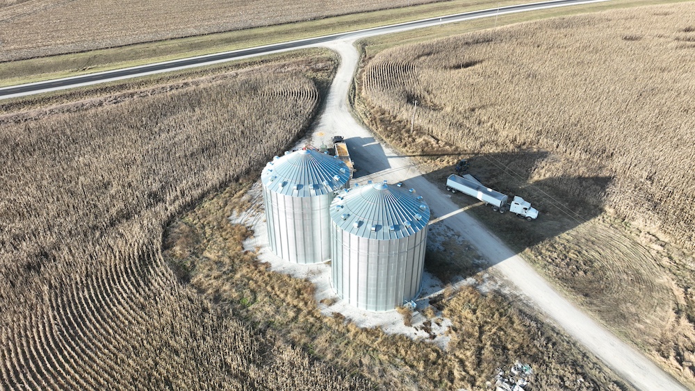 1.25± acres. This tract features a grain bin site with approx. 1.25 acres, 2-70,000 bushel Sukup Bins that were installed in 2022 brand new. Bins have fans and power sweeps.