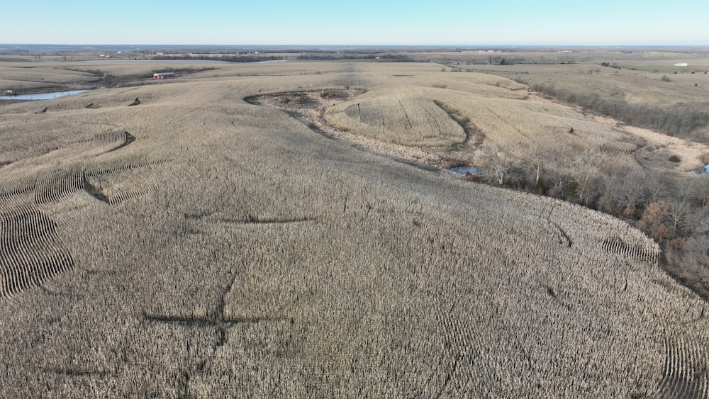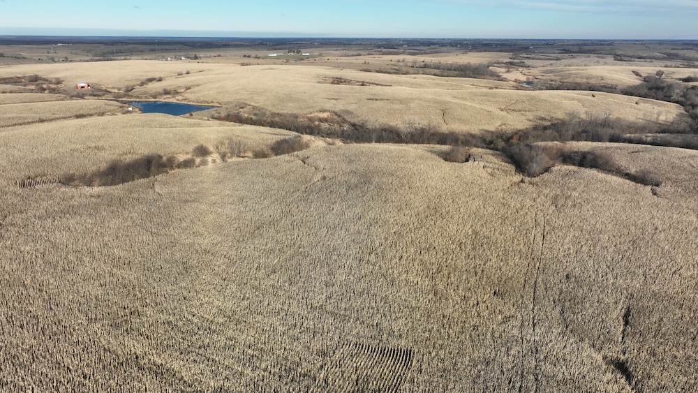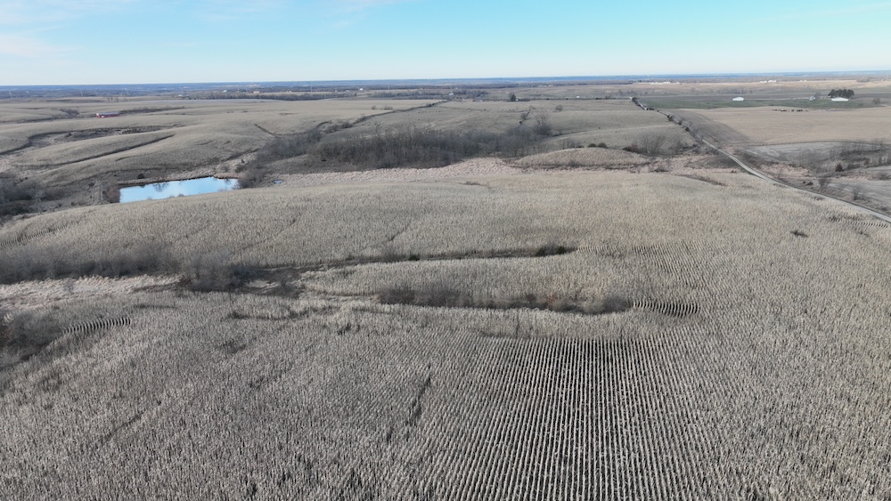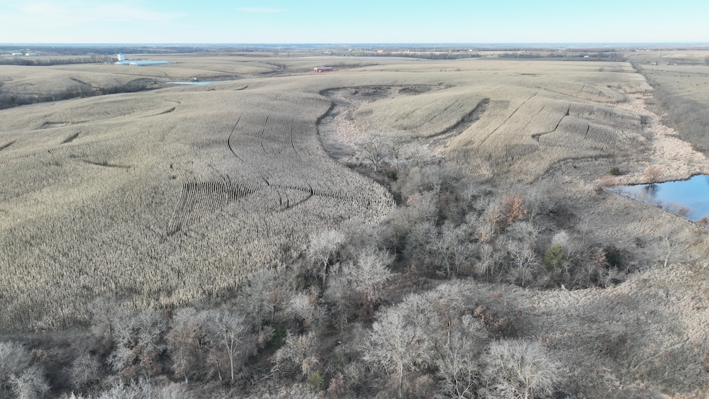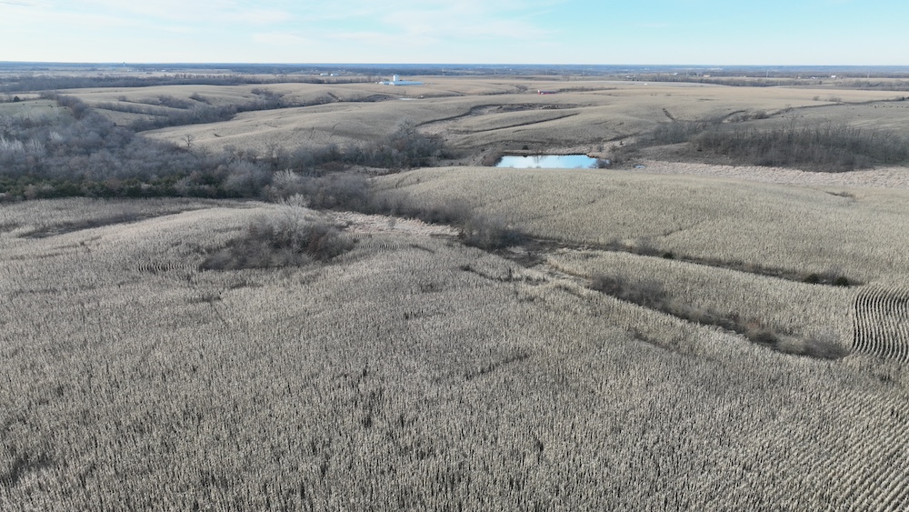 295± acres. This tract features approx. 205 acres tillable, balance in timbered draws, waterways, pond and shed. Access off of Highway 202 to the west