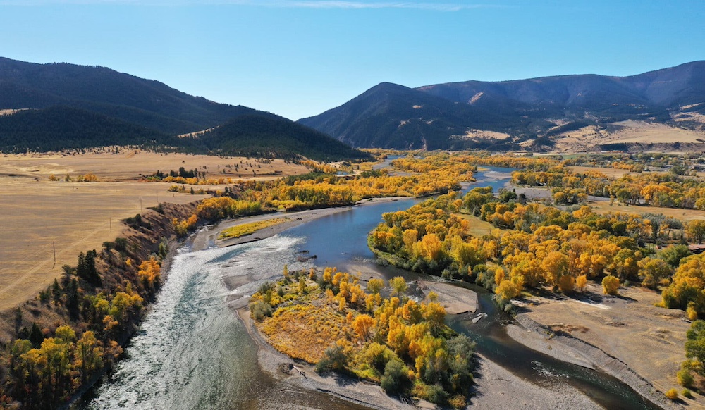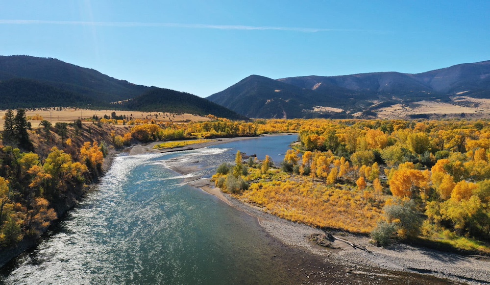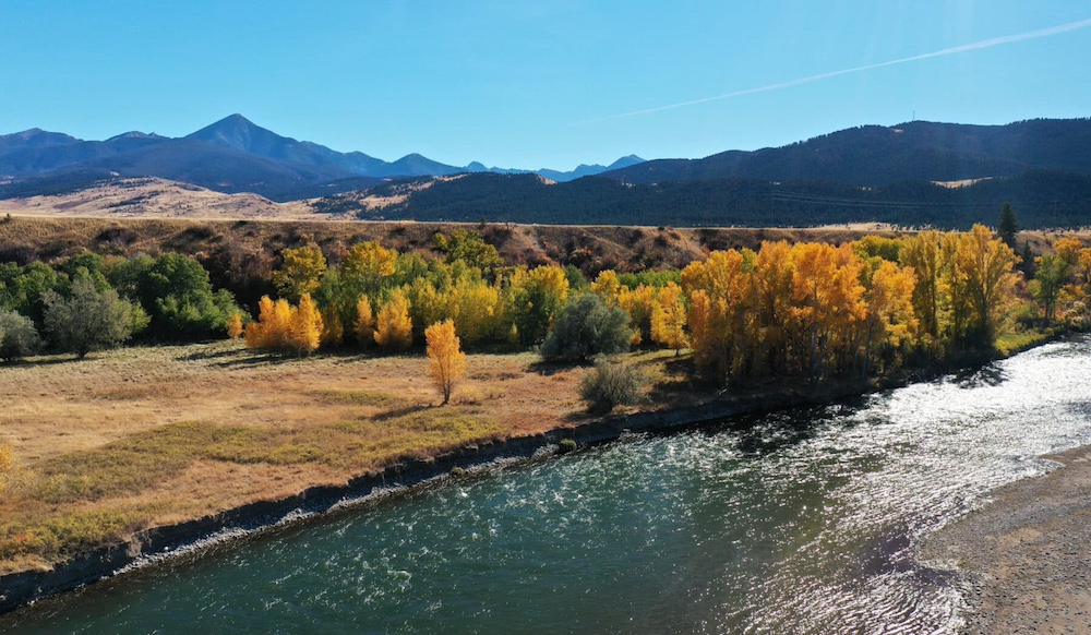 Located in southwest Montana’s celebrated Yellowstone Region, the Yellowstone River forms a portion of the western boundary of the Ranch for approximately half a mile. The willow and cottonwood riparian meadow along the river transitions to grass pastures on an expansive open bench that blends into the higher-elevation foothills and valleys that border the Gallatin National Forest to the south. The Absaroka Range changes in elevation from 9,100´ to 11,200´ and provides a magnificent backdrop to the south of the Ranch. Views to the north across the river consist of the Bridger and Crazy Mountain Ranges and the prominent rocky bluffs of Sheep Mountain.