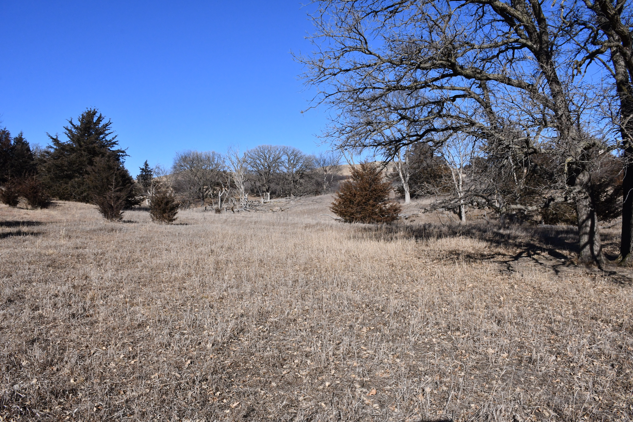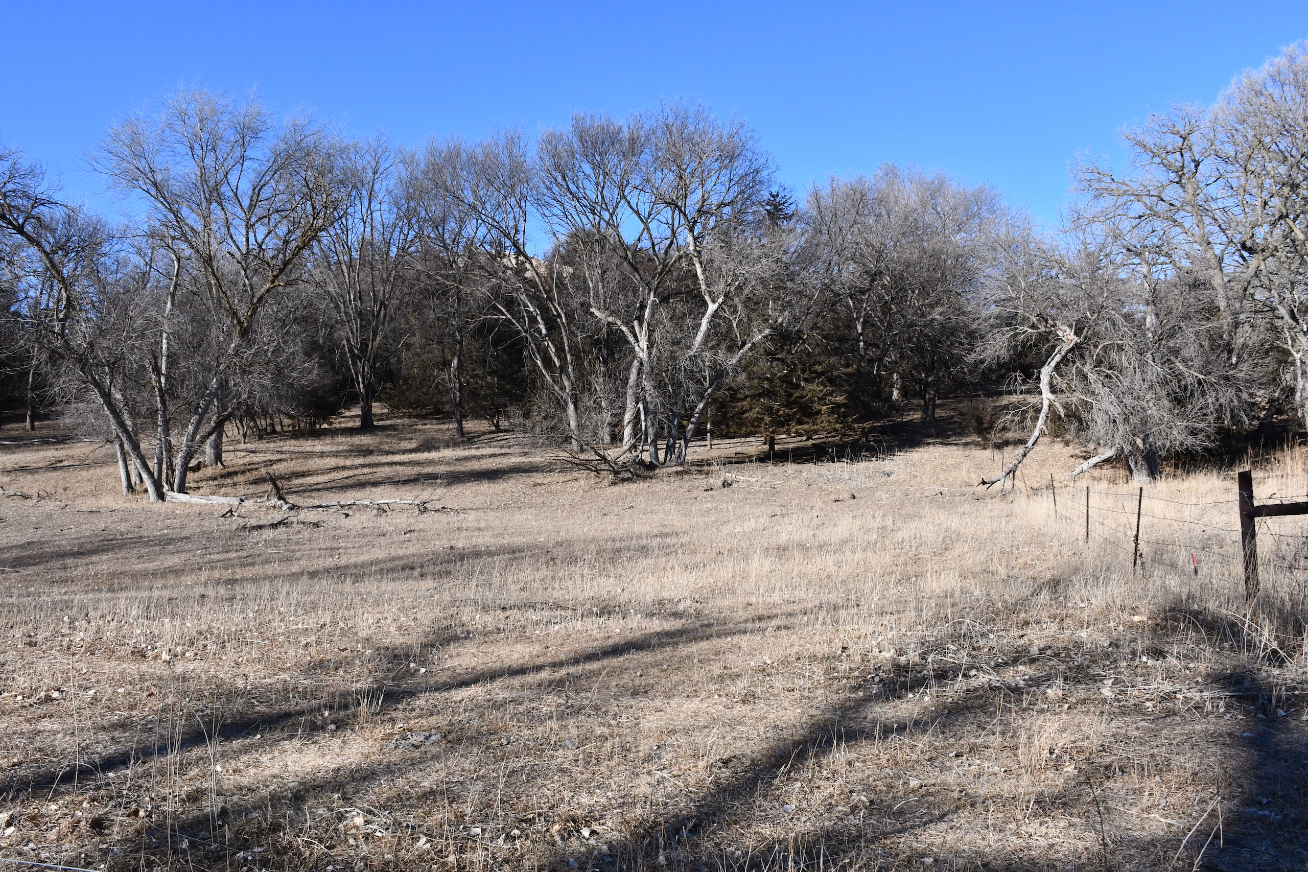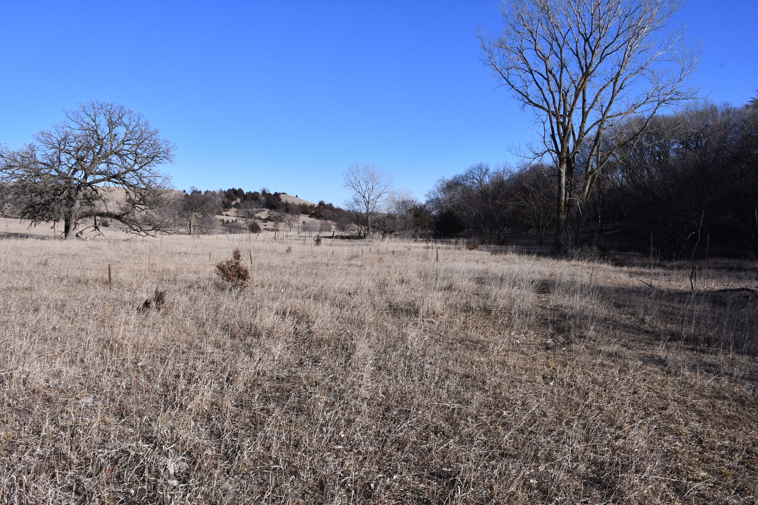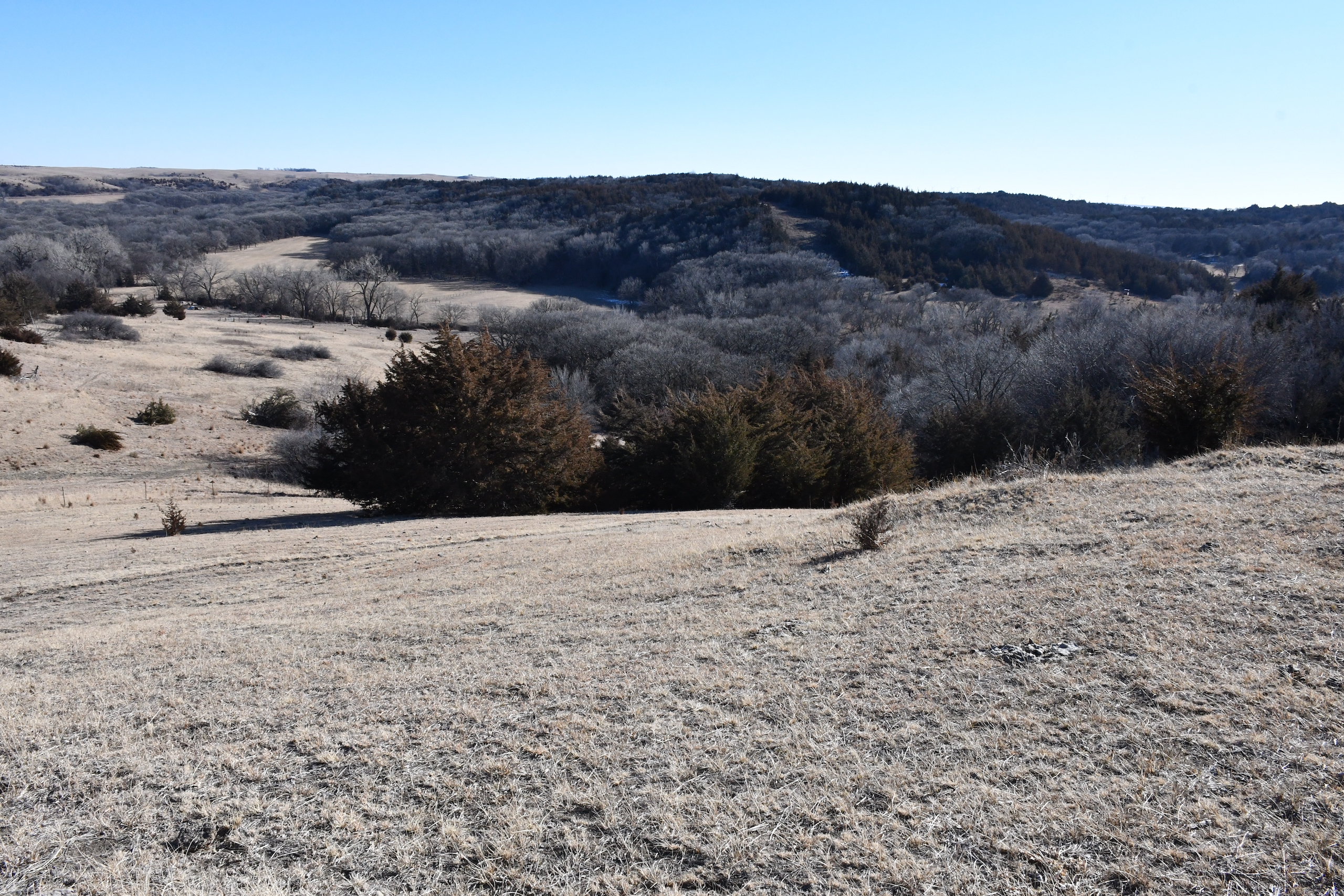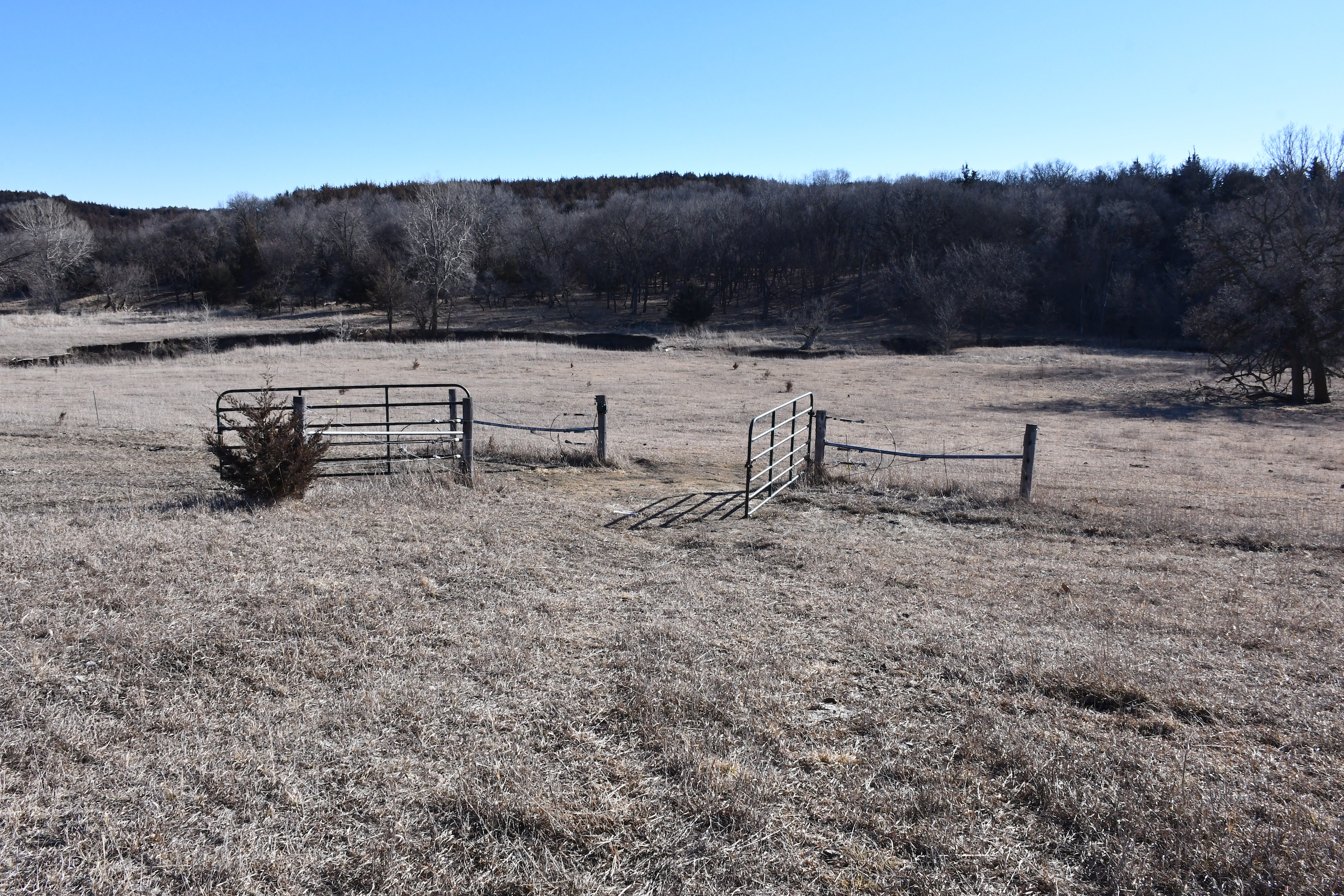 A seasonal creek winds its way along the southern edge of the property with many deer trail crossings hammered down into the banks. Scattered pockets of plum thickets, cedars, and sumacs offer some beautiful habitat for the wildlife. This property is in an ideal location with the large block of timber that adjoins the property to the south and the alfalfa fields to the north of the property putting this piece right in the middle of the travel corridors. The addition of some food plots would really take this property over the top! The pasture is cross-fenced into several units with rural water piped into the units offering opportunities for rotational grazing.