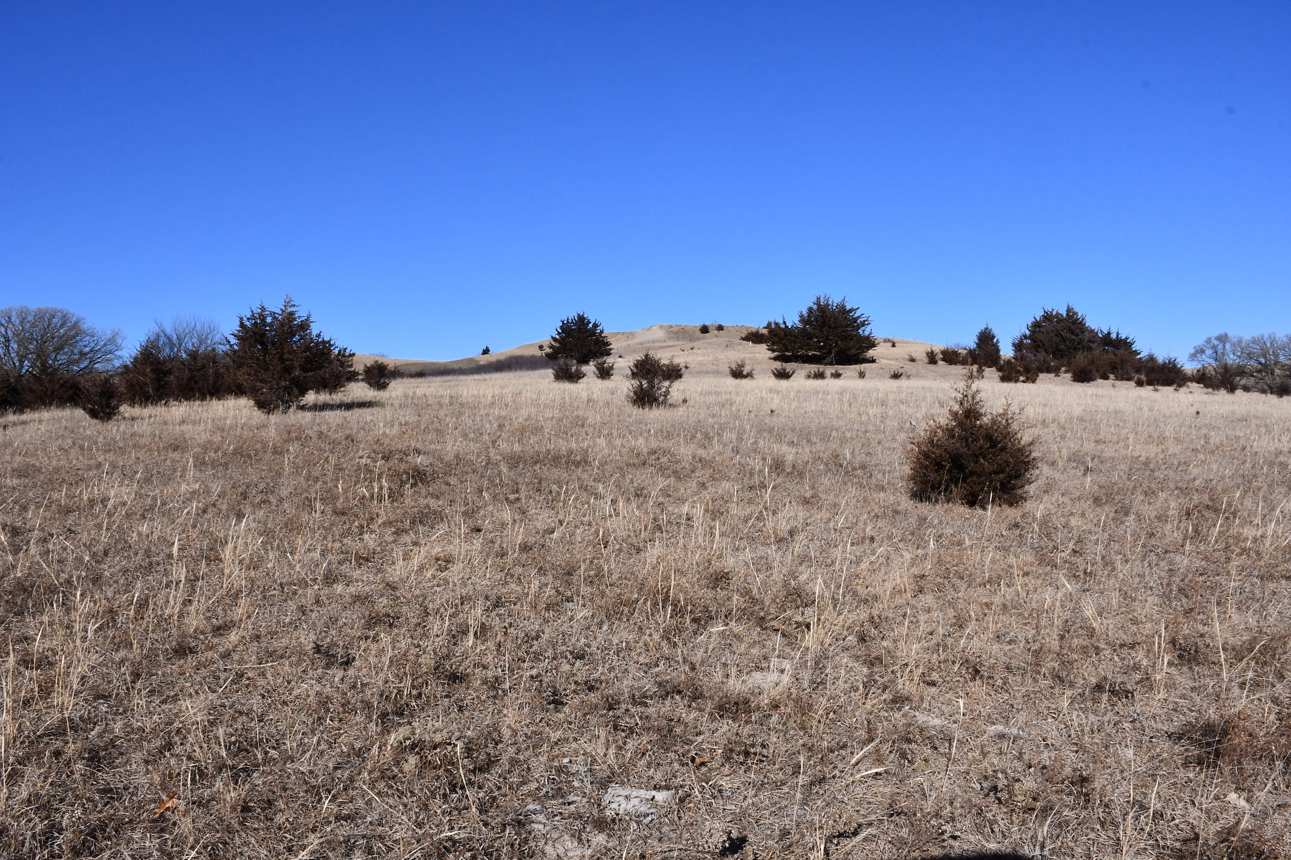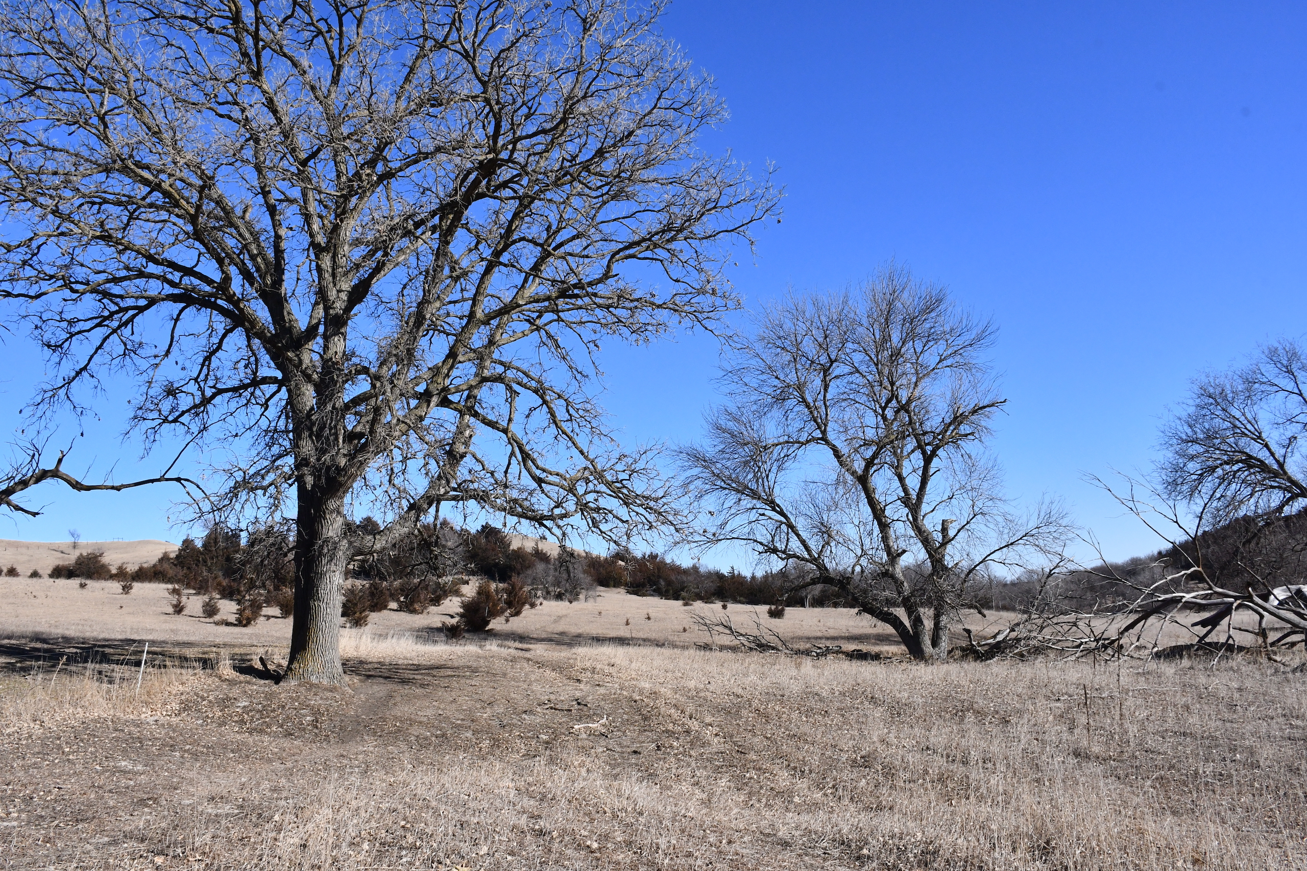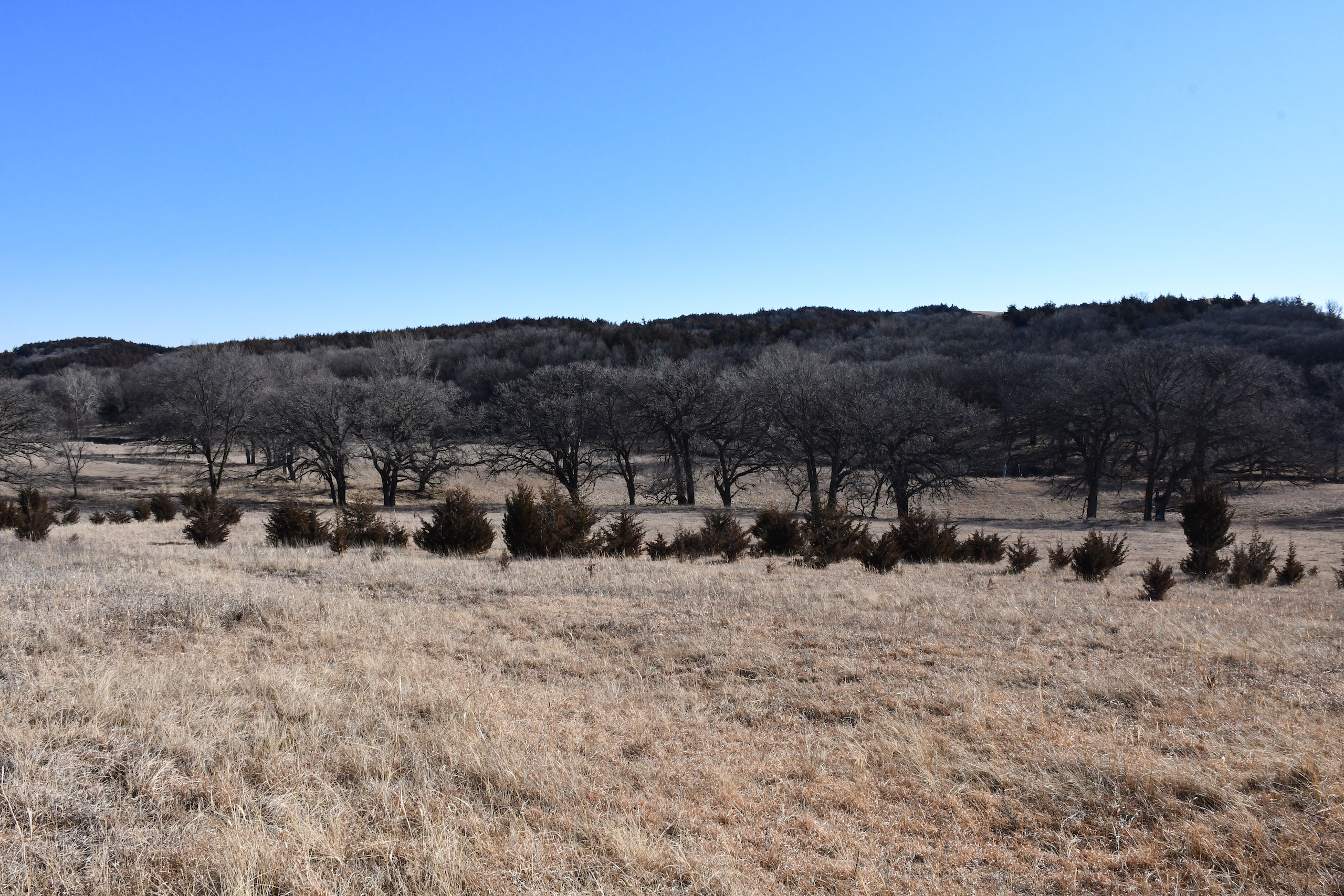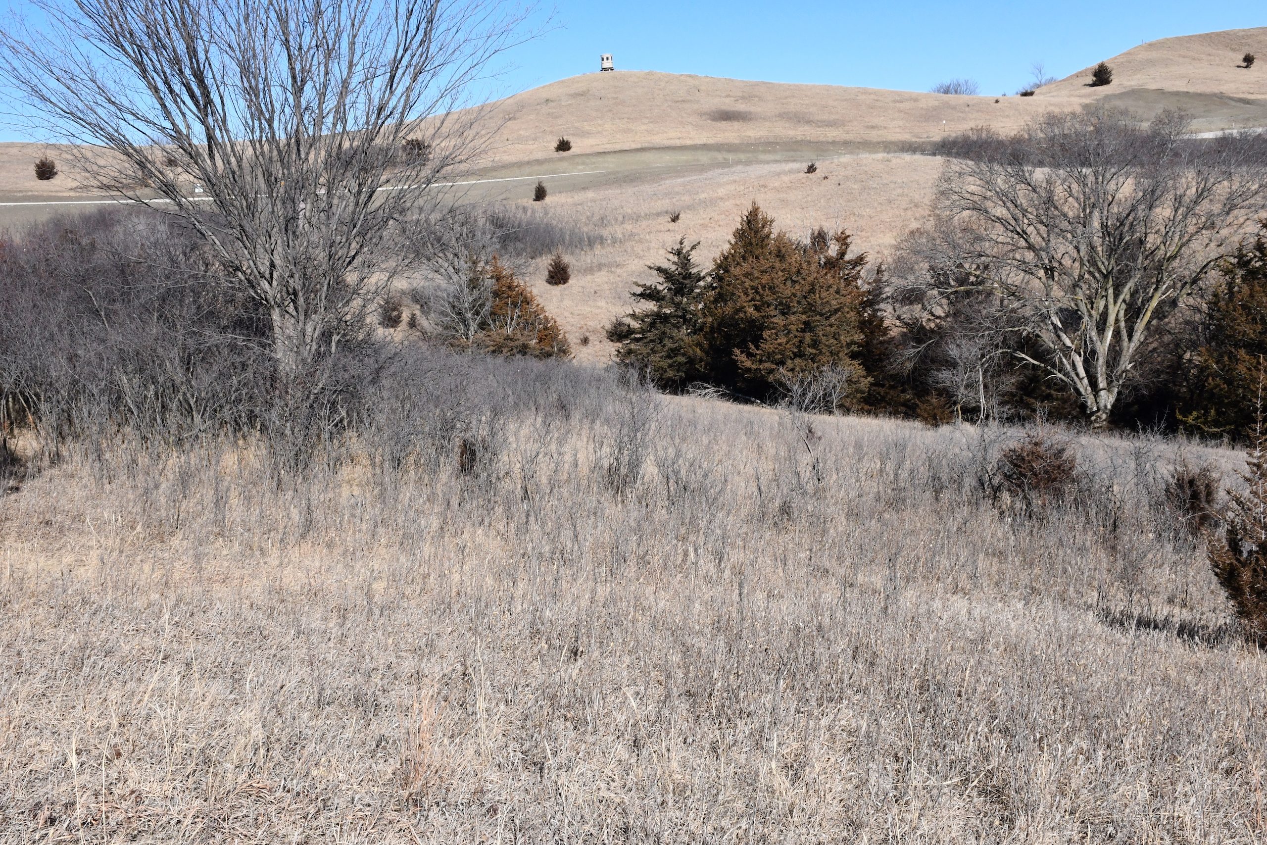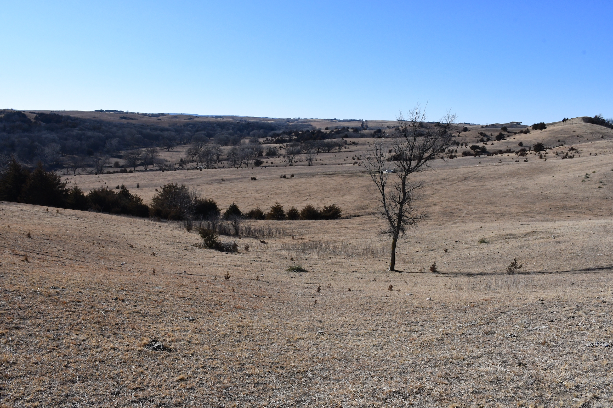 A seasonal creek winds its way along the southern edge of the property with many deer trail crossings hammered down into the banks. Scattered pockets of plum thickets, cedars, and sumacs offer some beautiful habitat for the wildlife. This property is in an ideal location with the large block of timber that adjoins the property to the south and the alfalfa fields to the north of the property putting this piece right in the middle of the travel corridors. The addition of some food plots would really take this property over the top! The pasture is cross-fenced into several units with rural water piped into the units offering opportunities for rotational grazing.