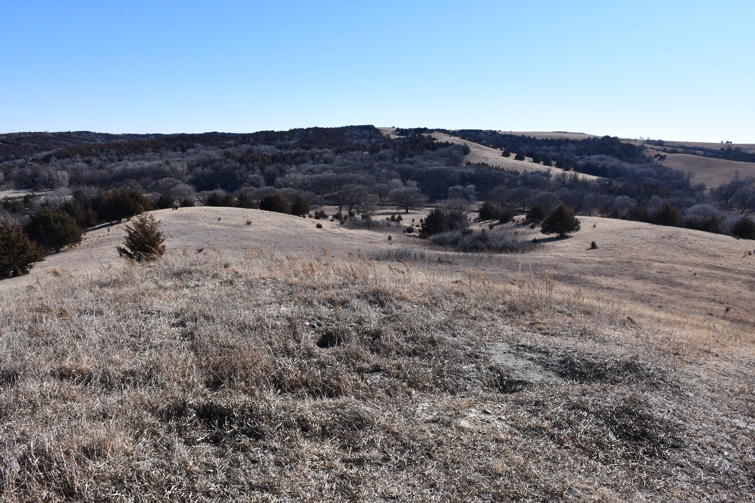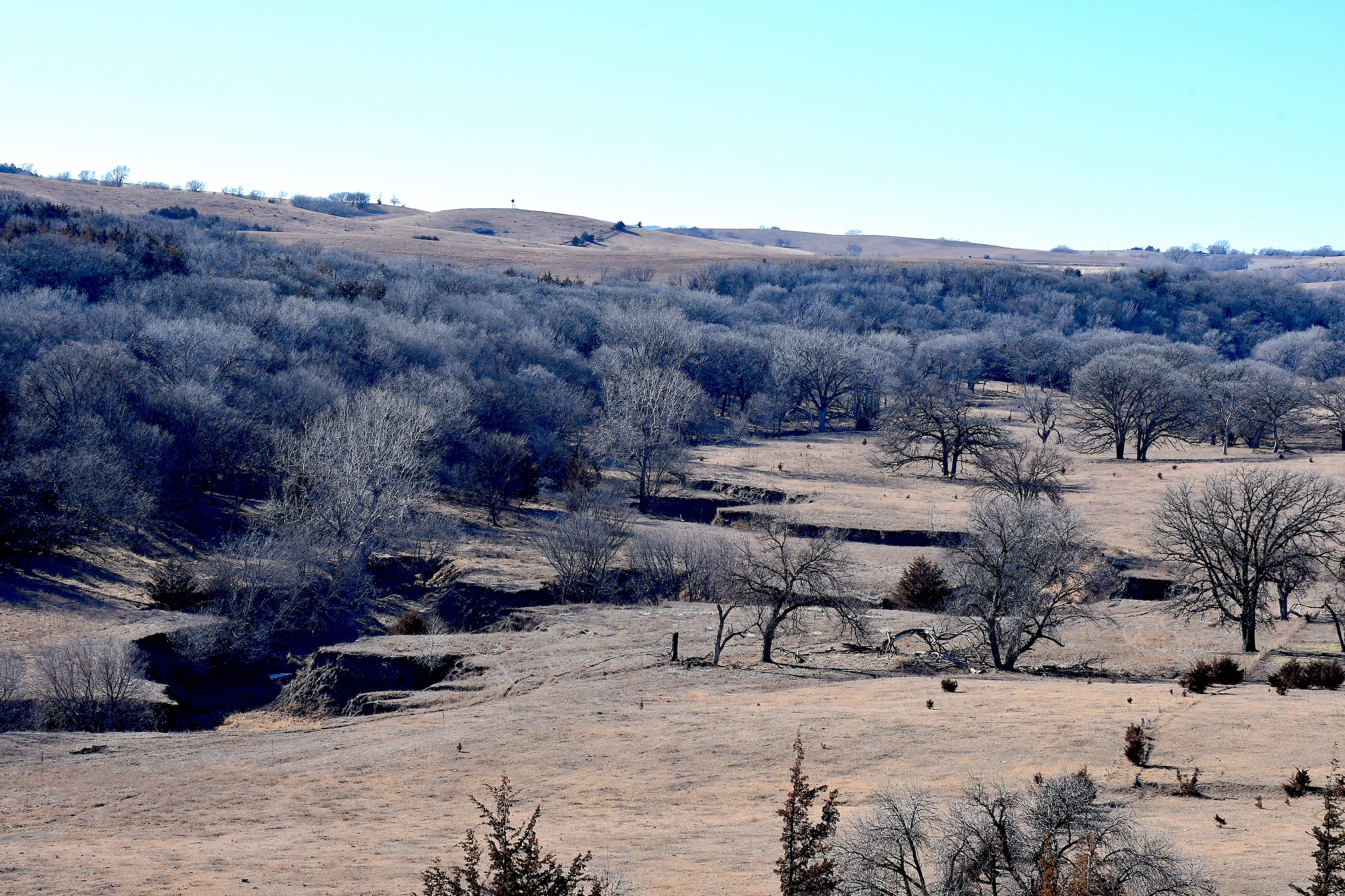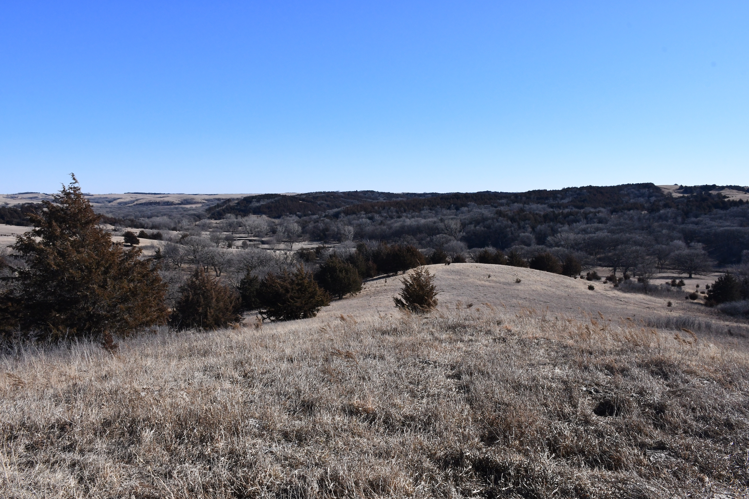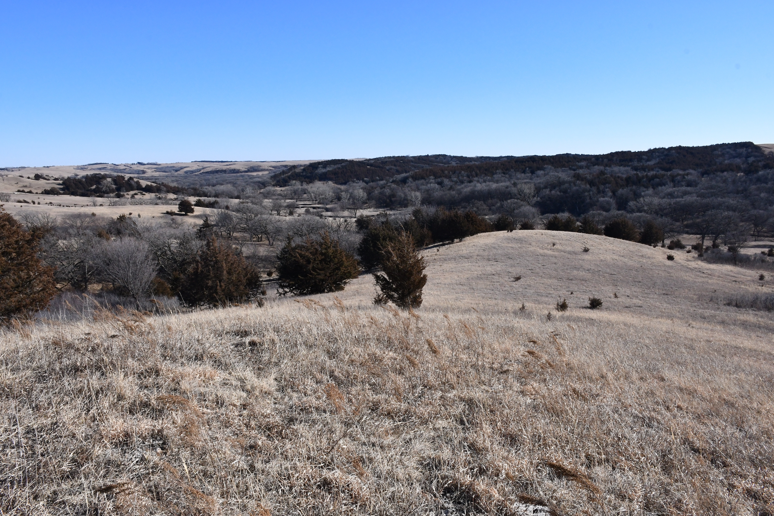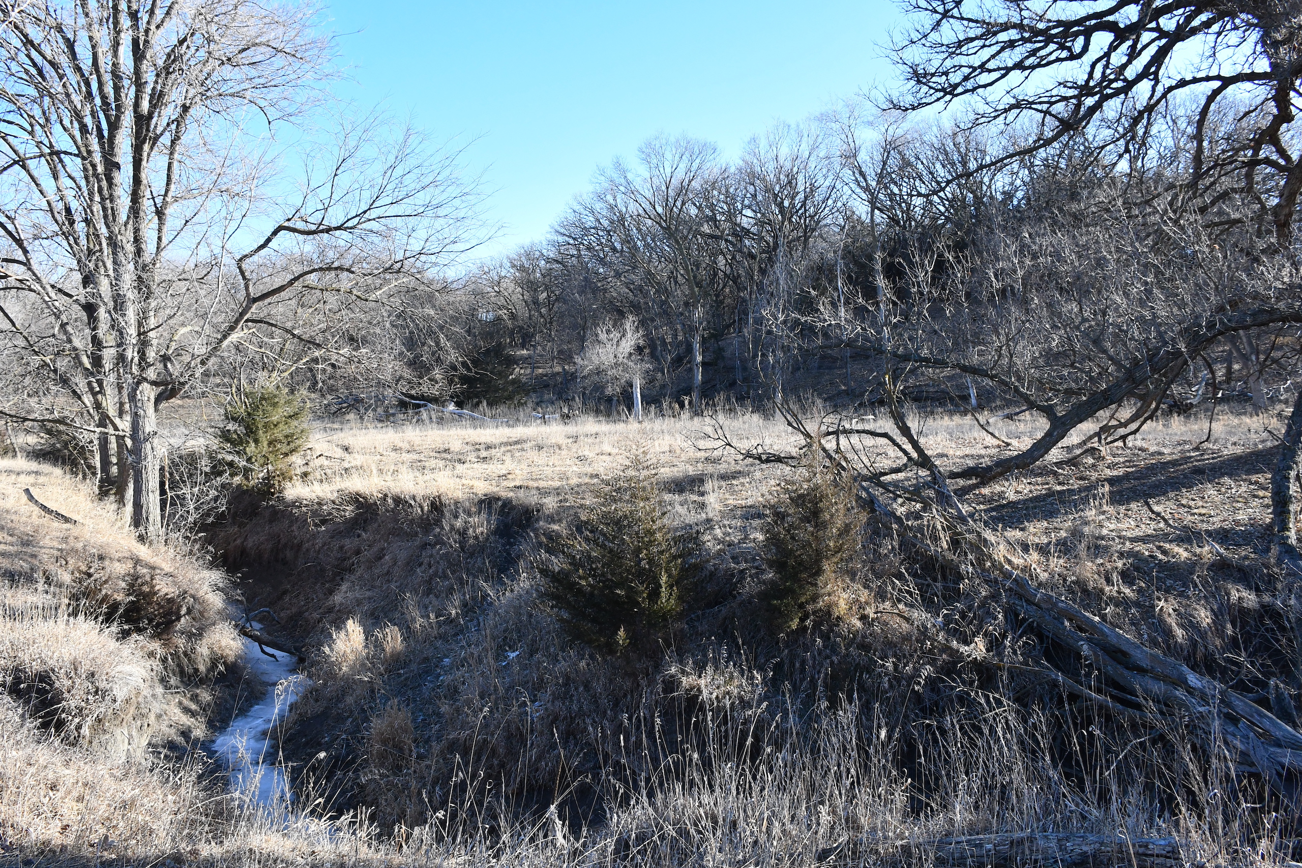 A seasonal creek winds its way along the southern edge of the property with many deer trail crossings hammered down into the banks. Scattered pockets of plum thickets, cedars, and sumacs offer some beautiful habitat for the wildlife. This property is in an ideal location with the large block of timber that adjoins the property to the south and the alfalfa fields to the north of the property putting this piece right in the middle of the travel corridors. The addition of some food plots would really take this property over the top! The pasture is cross-fenced into several units with rural water piped into the units offering opportunities for rotational grazing.