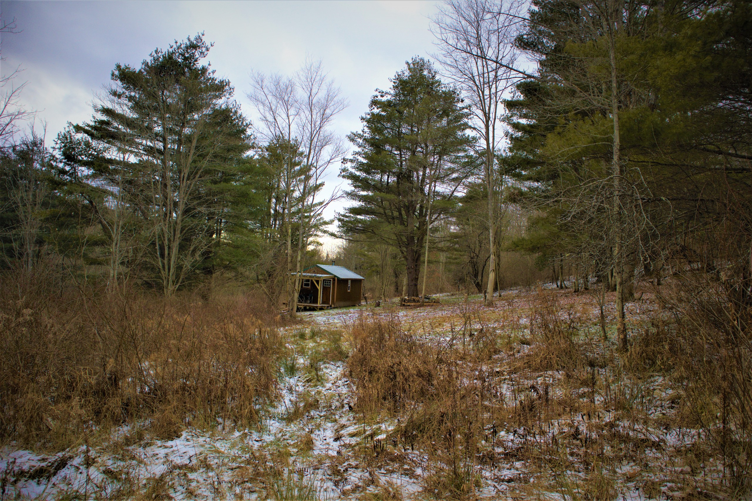 Looking for a get away cabin with hunting and a stream out the front door? This property might be it with easy commuting from the southern tier expressway just south of Cuba. Nestled in Germantown, and surrounded by other large tracts of property, a great deer hunting and retreat property awaits. From County Route 6, a driveway with a gated approach greats you, crossing a stream to your cabin. Some open meadow is complimented with a few large white pines making this the home to a charming one bedroom open design cabin with a wood stove. Newly constructed and with a metal roof and covered porch, this lil’ cabin is the perfect relaxing spot on a summer eve or hunt camp during the wonder of fall color and the rut to warm by the wood stove. A trail network to hunting stand locations is established on the property as well as a shooting range for your bow or gun. An outhouse is proximate to the cabin as well. Check this one out, price well to sell!