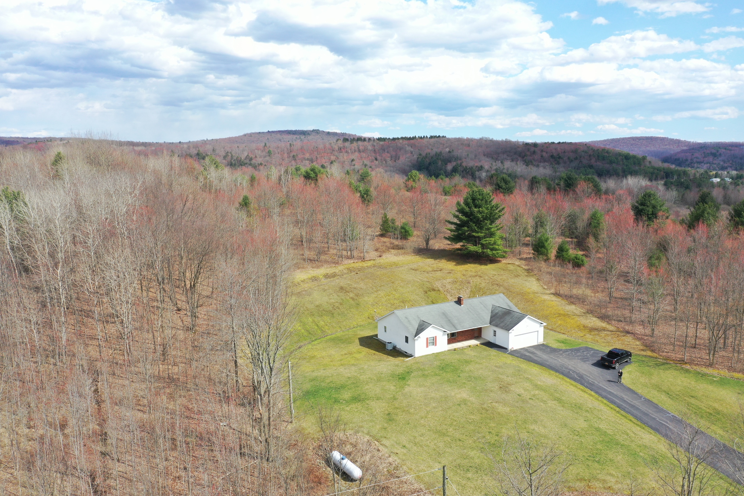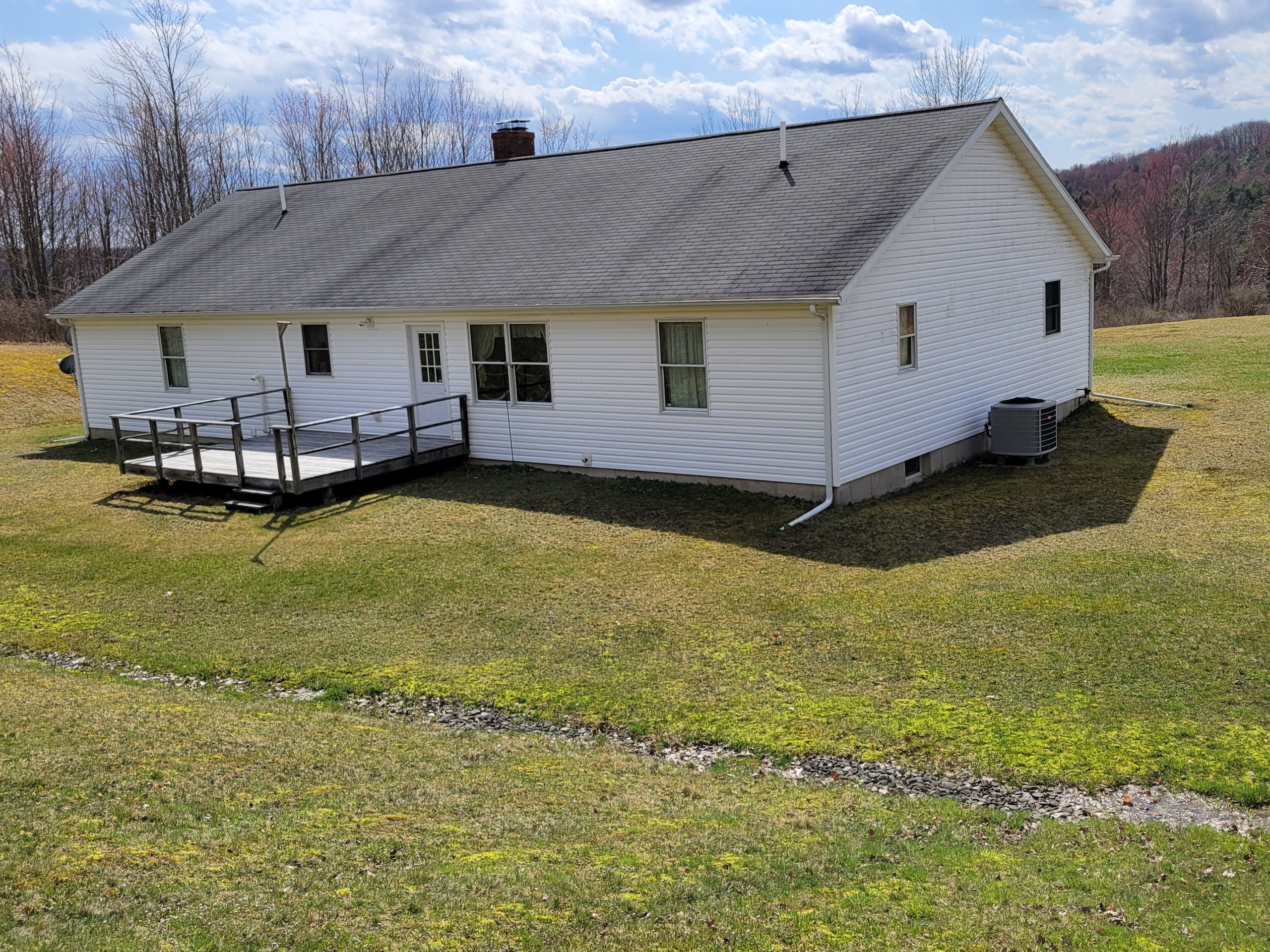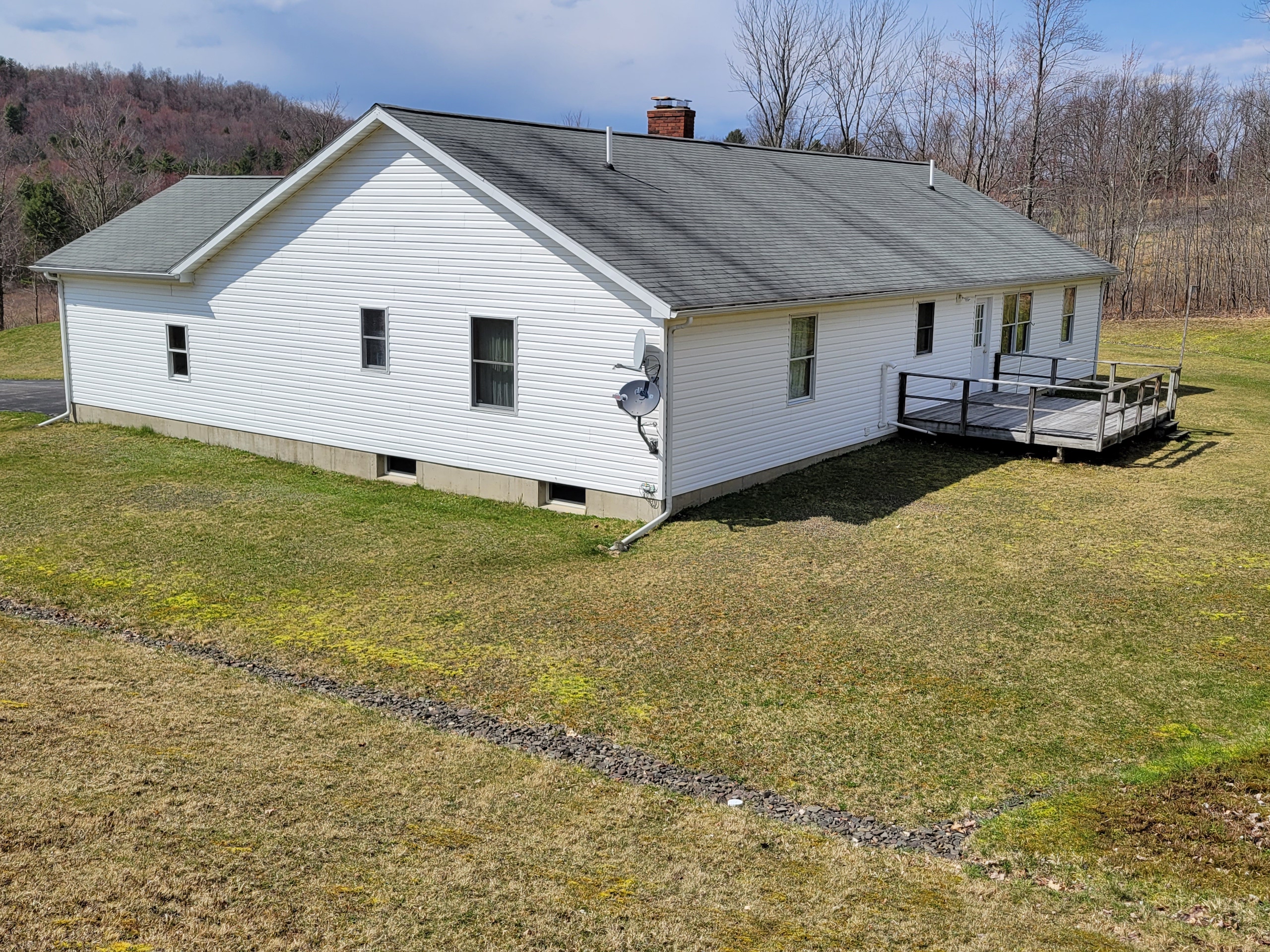 Enjoy the peaceful living on this lovely three-bedroom, two-bath ranch in the country. Set on nearly 12 acres of mainly level land, there is plenty of room for outdoor fun, gardening, horses or a small farm, or enjoy your property hunting, hiking, or riding around on the trail network on your ATV. Inside this well-maintained home, there is an open kitchen with an island, a comfortable living room area with a wood stove that provides extra warmth in the colder months, and central air conditioning in the summer months. There are three nice-sized bedrooms and two full baths as well as a laundry area on the same level. There is a poured concrete full basement and an attached two-car garage with room for additional storage. Outside, the house has low-maintenance vinyl siding and a nice-sized deck off the back to enjoy the solitude of your expansive backyard. The driveway is paved with an extra turnaround area and nicely landscaped for easy upkeep. There is also approx. 450' of road frontage on this property. Located approximately halfway between Binghamton and Windsor, the surrounding area is renowned for its wildlife. There were lots of deer signs on the 11+ acres, which features a nice trail system and good cell service throughout. Amenities are available in either Windsor, located 10 minutes to the east or Binghamton, less than 10 minutes to the west. The property is located in the Windsor School District.