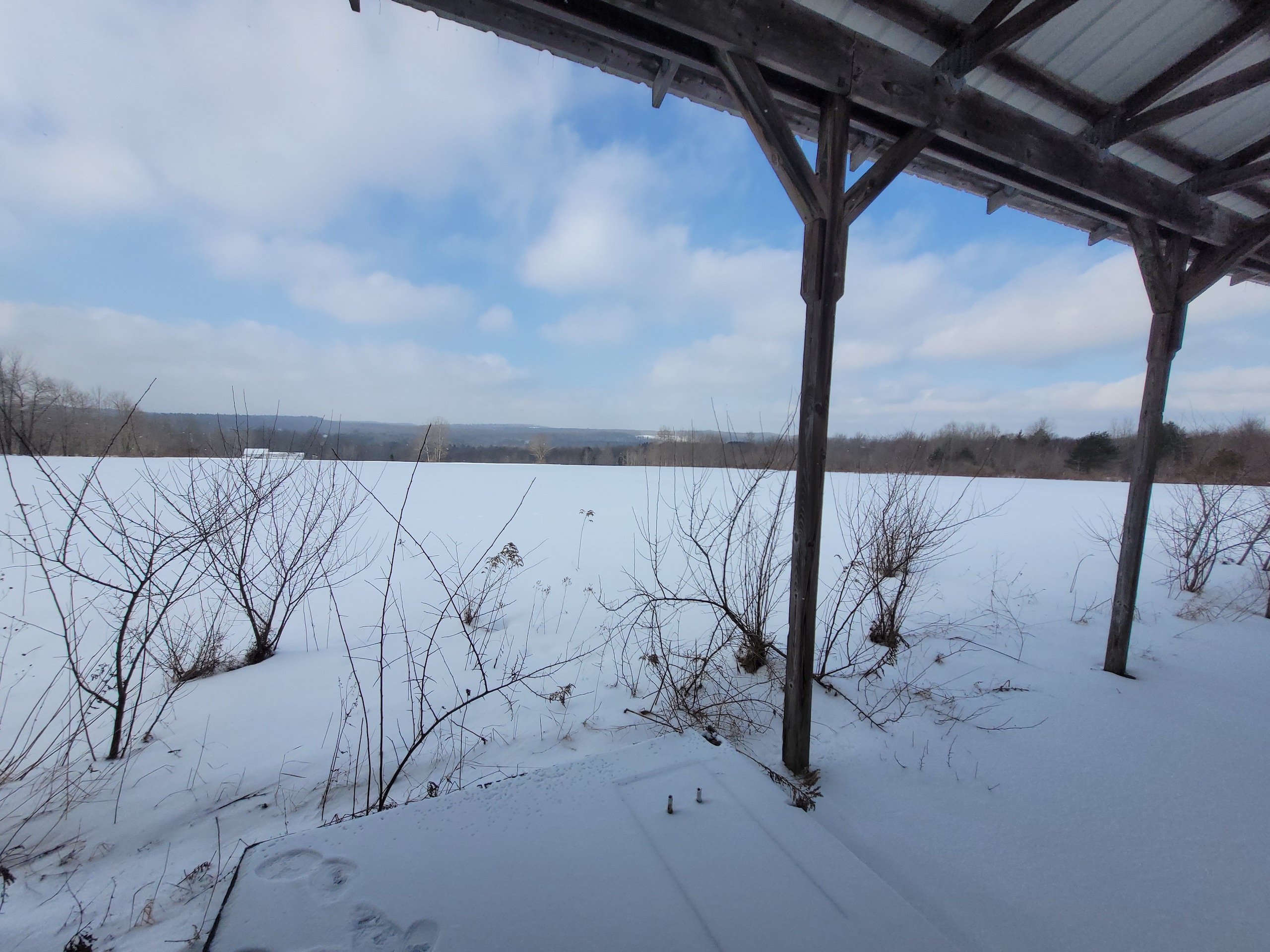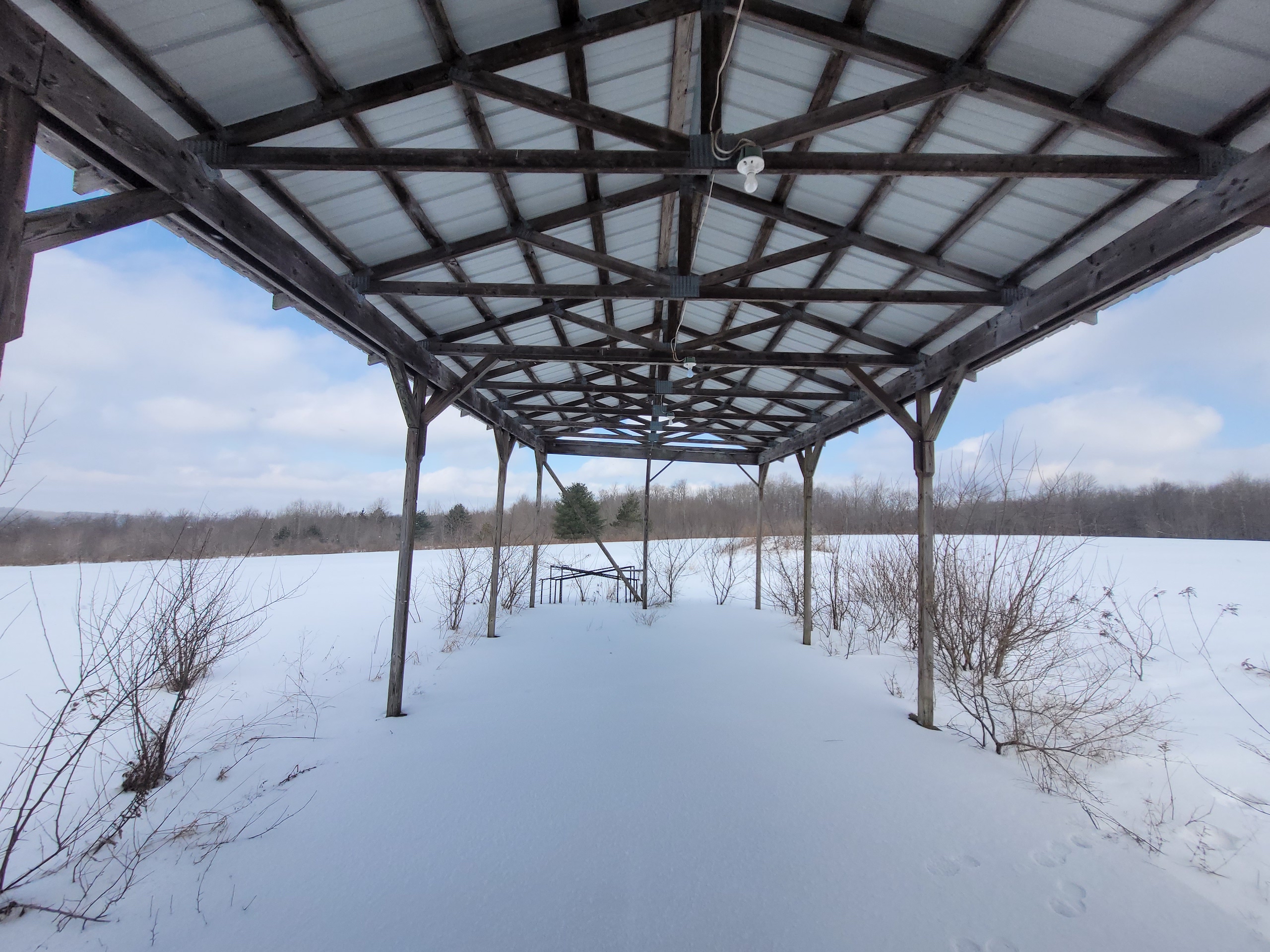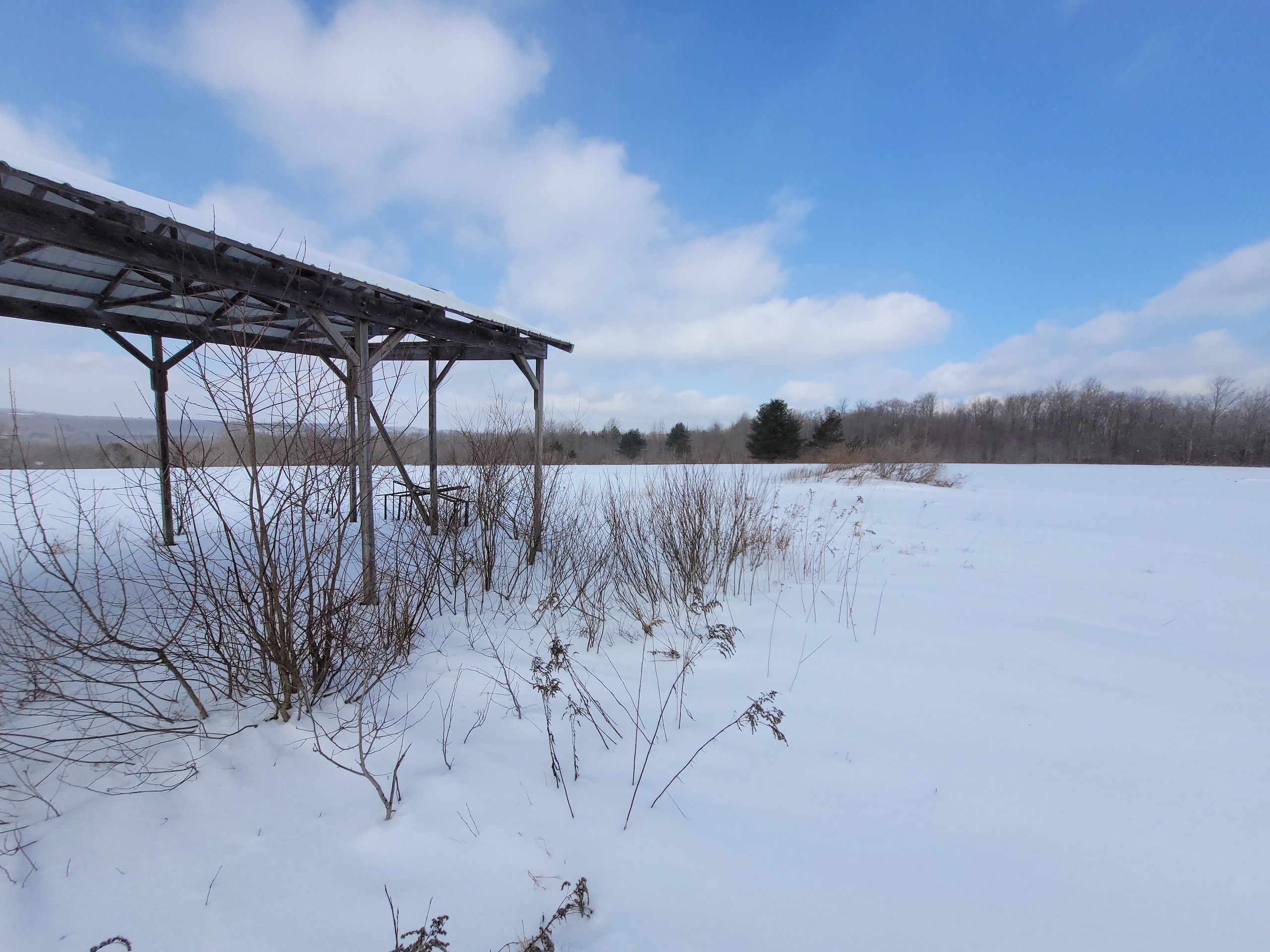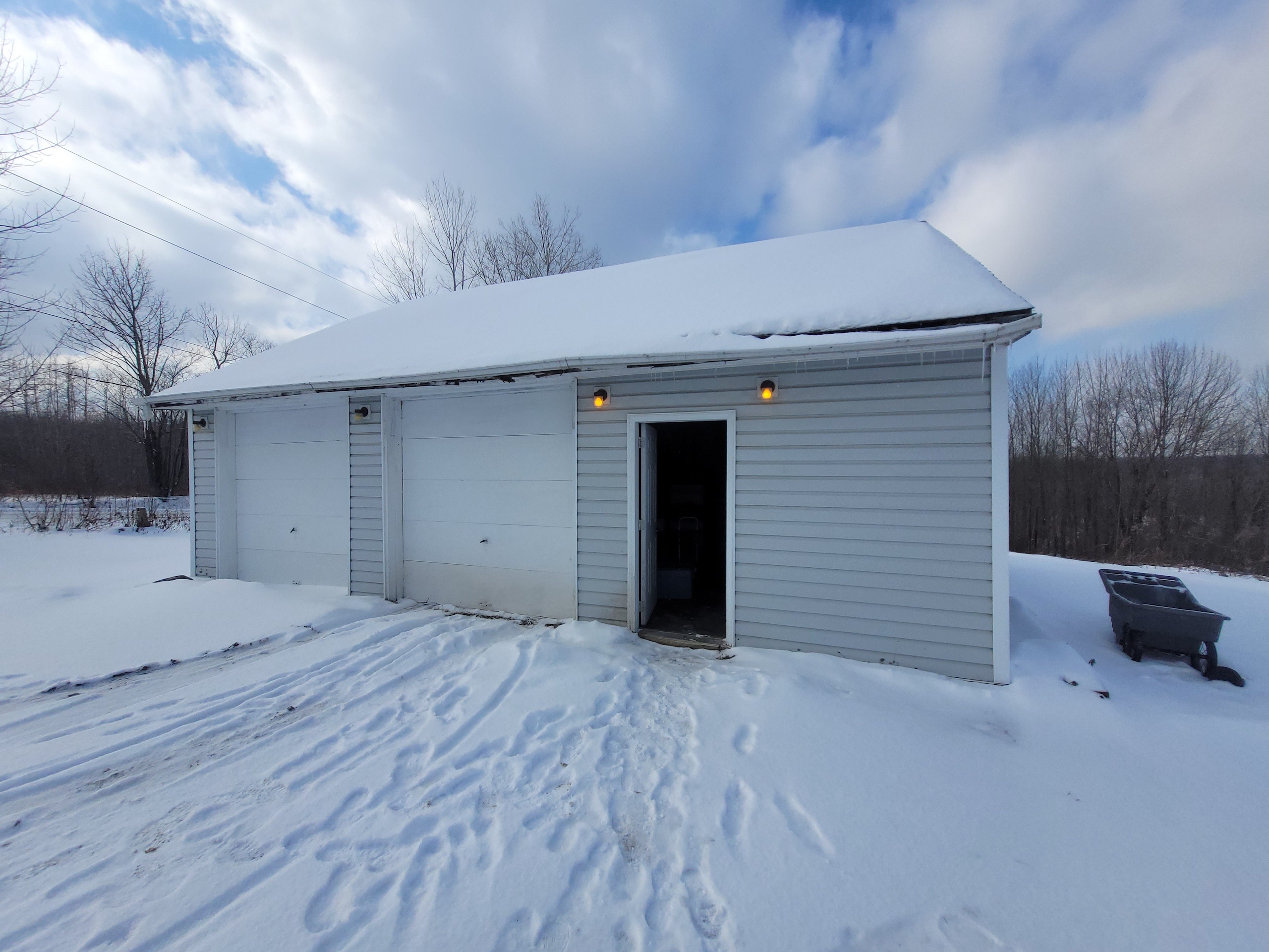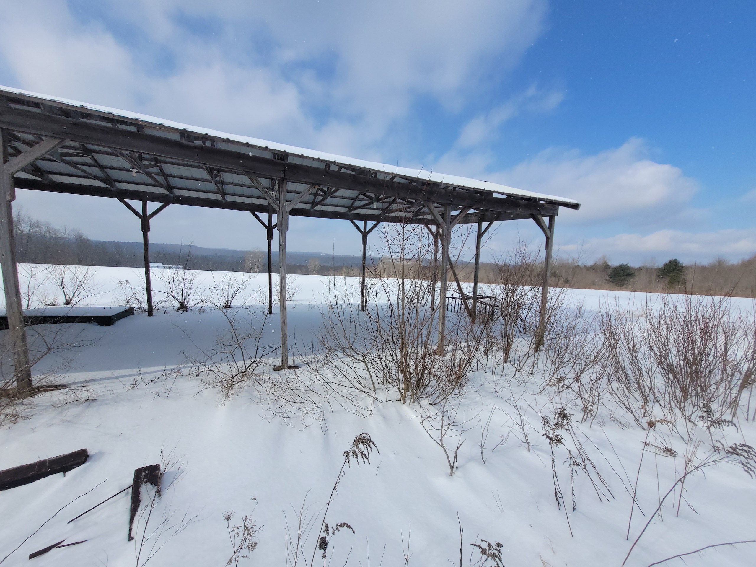 Beautiful views set off this country home, vacation or hunting getaway, with a well-kept single-wide mobile home ready to move in, with 500 sq. feet of living space including 2 bedrooms and one full bath with laundry. Located on a quiet country road, maintained year-round, the house has its own well, septic and electrical service as well as internet. There is propane heat and newer vinyl windows have been installed. Appliances include refrigerator, stove, washer and dryer. There is also a 24’ x 32’ oversized 2 car detached garage, built in 1984, with a 2nd floor providing additional storage or work space. There is a second driveway onto the property which leads to a ~16’ x 16’ shed with an additional 16’ wide x 24’ long attached Pavilion, built in 1998, and used as a former mini-golf and driving range business; however since it has power, could be converted for any number of other uses as a separate living quarters, storage, workshop or recreational building. There are approx. 20+/- acres of open, tillable fields and an ~15+/- acre woodlot. The remainder of the property is a brushy meadow, all of which combined offer a diverse habitat very suitable for whitetail deer, turkey and other local wildlife for cover, bedding and forage. Balsam Swamp State Forest is located just over a half mile down the road, easily walking distance, and offers an additional 2679 acres for hunting, fishing, boating, hiking and snowmobiling. Five miles in the opposite direction takes you to Bowman Lake State Park which features its large freshwater lake offering its beach, picnic areas, fishing and boating as well as additional hunting, hiking and snowmobiling on its 967 acres. This property is located in the Oxford School District. Amenities are close by with 2.4 miles to McDonough, 12 miles to Cincinnatus or 15 miles to Norwich. Additional recreation, shopping, and restaurants are located just 30 minutes or less in either Whitney Point or Binghamton. This affordable property is located just 3.5 hours from NYC/George Washington Bridge.