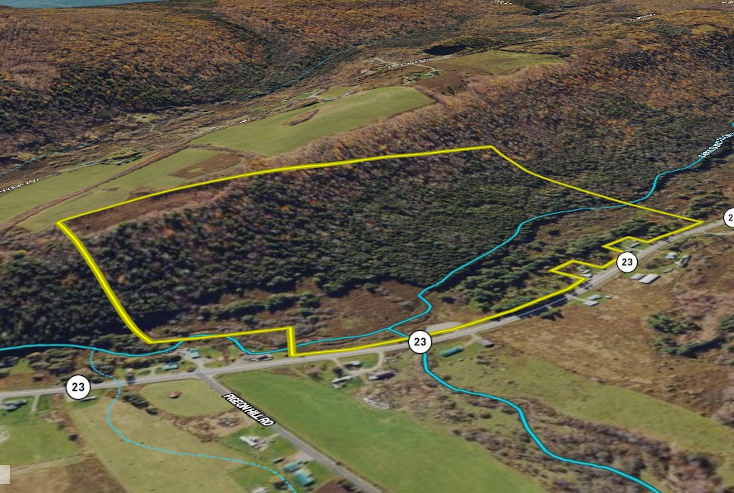 Check out this beautiful and affordable property with a mix of open grassy areas, fields, brush and woods, along with 2415+/- feet of the Canasawacta Creek running through it. There is a newly installed gravel driveway and large landing area providing plenty of room to park your RV, along with a 100amp electric service for your camper. Or the new owner could build a hunting cabin, vacation getaway or year-round home. There are additional open areas across the Creek as well that could be used for food plots, small farm/barns or potentially to build your new cabin or home. With 1932 feet of road frontage, there is power at the paved, year-round maintained road. The property lays level for the first ~⅔ and then has a gentle grade upwards within the 52 acres of woods, with a 3 acre open field along the ridge at the top. With the diverse mix of brush, woods, and water, this property is largely bordered by agricultural fields and woods and is ideal for attracting wildlife for browse and bedding, in an area renowned for wildlife conservation, whitetail and wild turkey hunting. With over 85 acres of your own land to enjoy, there is also another 4,689 acres of the Pharsalia Wildlife Management area just 3 miles down the road. This huge tract includes the New Michigan State Forest and Perkins Pond State Forest, along with portions of the Finger Lakes Trail, all providing additional hunting, hiking, camping, fishing, and snowmobiling very close by. Amenities are available in Plymouth within 4 miles and 10 miles to Norwich. ADditional shopping, restaurants, colleges and entertainment are available in Cortland within 30 minutes and Binghamton in 50 minutes. NYC/George Washington Briget is just 3 hours and 15 minutes away. Property is located in the Norwich School District.