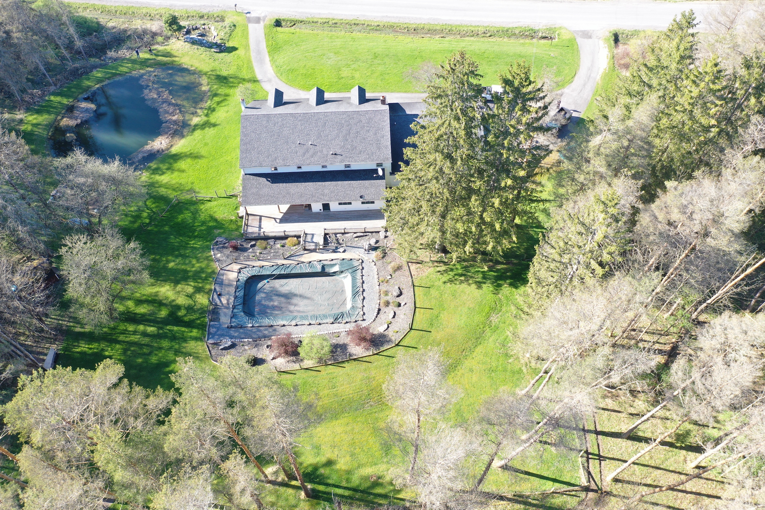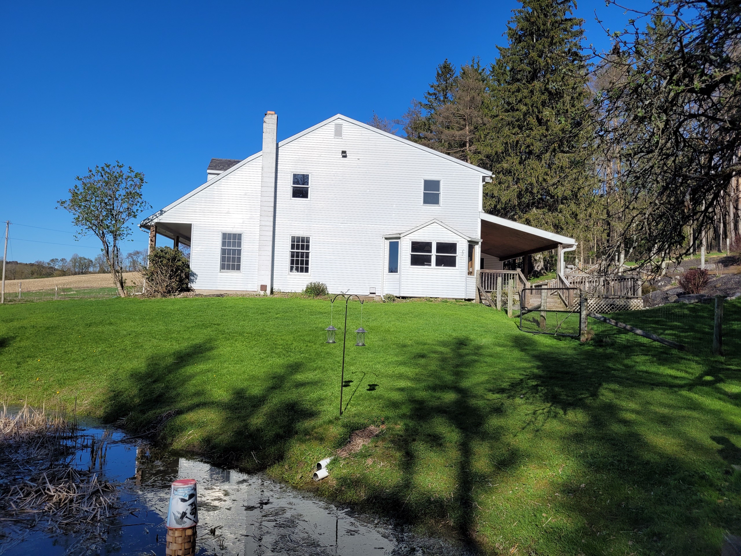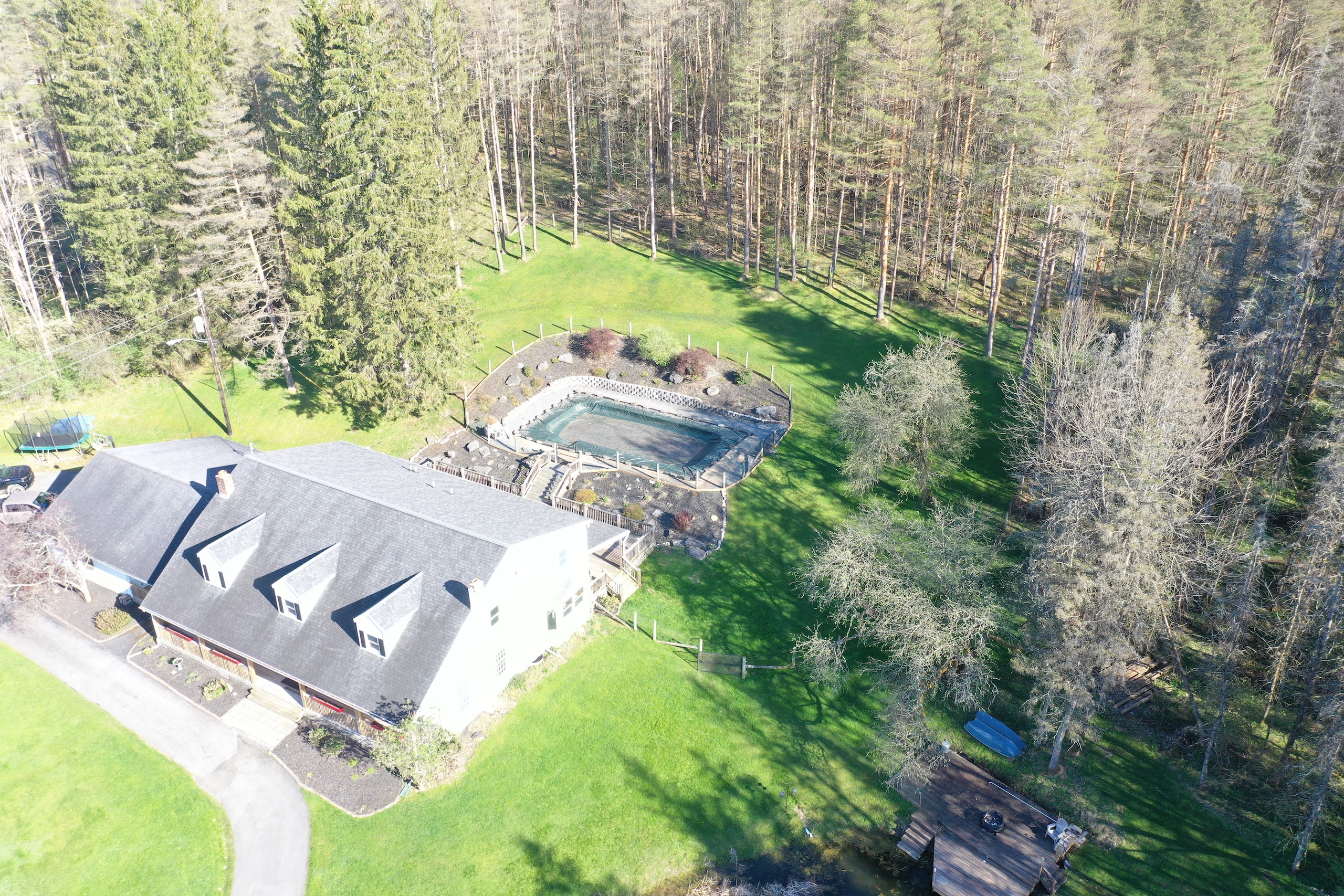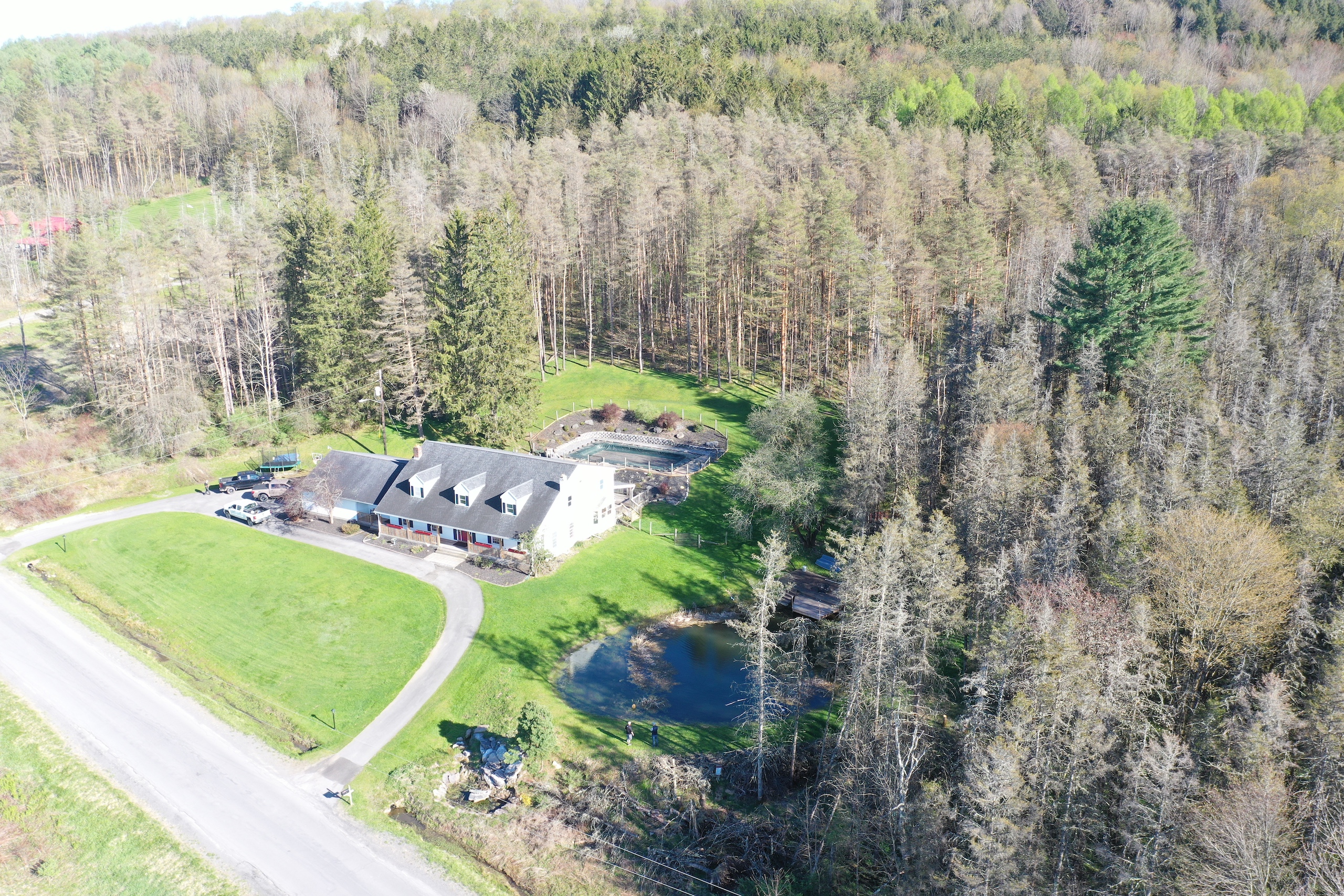 Enjoy the country life in style! This stunning property features a 4 bedroom, 4.5 bathroom Cape Cod with over 4900 square feet of beautiful living space, and plenty of room for your family and friends. Originally built in 1978, this lovely home has been recently updated in 2021 and features quality craftsmanship throughout with custom cherry cabinets and gorgeous paneled woodwork, wainscotting, and coffered ceilings. A grand entrance greets you as you enter the large 2-story foyer with an elegant staircase and wrap-around balcony. The large kitchen features custom cherry cabinetry, expansive granite countertops, stainless appliances as well as a workstation, and a sunny breakfast nook with lots of windows that overlook the pond on the side of the property. There is a large family/media room with a huge wood fireplace, wood storage nook, and two, back-lit built-in bookcases on both sides. Plenty of room for a full-sized pool table in the adjoining rec room, while there is a 4 season enclosed porch that runs nearly the length of the house and has supplemental heat to keep it comfortable during cold weather. The house also features a formal dining room that can accommodate large dinner parties. Upstairs is the Master bedroom suite with its own bathroom with both a jacuzzi tub and separate shower and a large walk-in closet. Three other spacious bedrooms complete the second floor with additional bathrooms for each of them. There is a 25’x35’ attached oversized, two-car garage with a workshop and ample storage cabinets. The house is surrounded by multi-level decks on three sides, providing extensive outdoor space for entertaining, leading either up to the 32’x16’ in-ground pool or down to another deck overlooking the spring-fed pond. Enjoy fishing for trout in the stocked pond off the deck or from the comfort of your rowboat. The grounds are well maintained and are beautifully landscaped. This lovely home is located only 4 miles from Sherburne and is in the Sherburne Earlville School District. Heating in the house is electric and provided through the Sherburne Electric Cooperative at cost savings over other energy sources. Centrally located for our area, the commute from this property is approximately 45 minutes to either Utica or Oneonta, Syracuse in one hour, and Binghamton in 75 minutes.