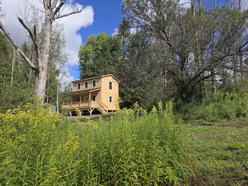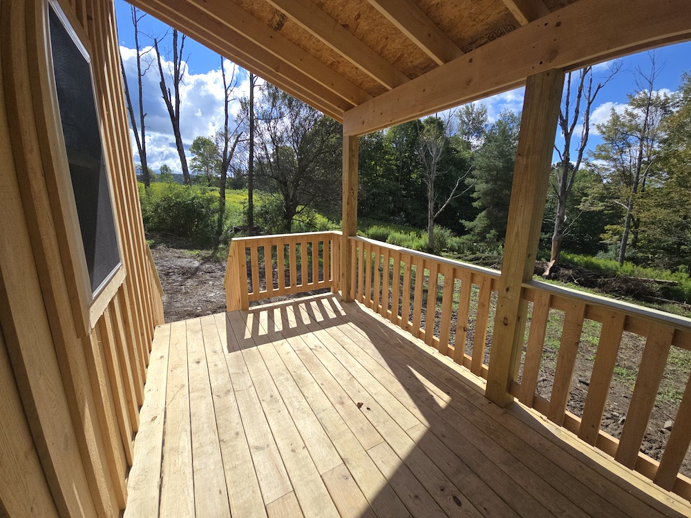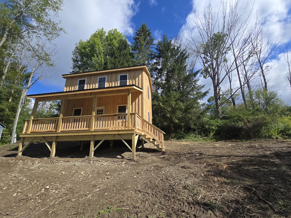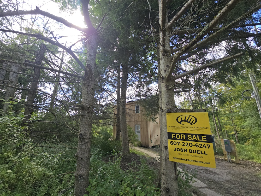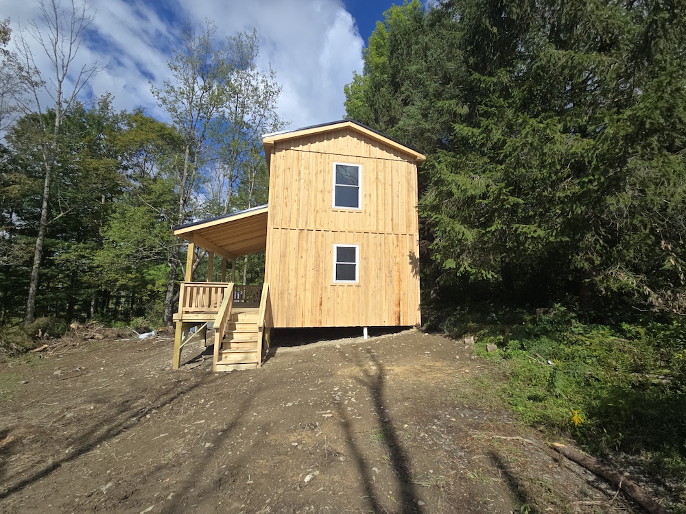 Watch for updates. Estimate date of cabin completion: 9/1/25 ** Note - finished cabin photos are what the cabin will look like when completed.*** Beautiful 13+ acre lot just feet away from Maxon Creek State Forest. A brand new two-story cabin is 16x24, which provides 768 sq ft of living space. It has an 8x24 covered porch that provides a perfect summer getaway or hunting cabin. Someone may want to finish it off and use it as a small home. Comes with a concrete septic tank, a well, and an electric pole on the property. This cabin is quality-built with quality material. Cabin comes as a shell for the buyer to put their own twist on it and truly make it their own. The cabin is sided with Hemlock board and baton, and also has a beautiful black steel roof. Several openings on the property give potential for future development of food plots or additional areas to camp. Several trails run through the property for ATV use. A small creek is located at the rear of the property. The cabin would make a beautiful place just to sit and read a book. Several deer signs were noted when this agent recently walked. Maxon Creek State Forest consists of 905 acres and provides plenty of room to hunt, hike, or enjoy all that nature has to offer. The cabin is almost to the end of a dead-end road that sees very little traffic. The forest is home to four small streams, which together total 2.4 miles in length and are a part of the east branch of the Tioughnioga River watershed. While the property is remotely located on a quiet country road, amenities are only 4 miles away in DeRuyter, Cortland, and Whitney Point are a half hour away, and you can be in Binghamton within an hour. NYC/George Washington Bridge is just 3.5 hours away.