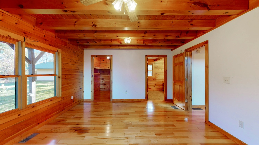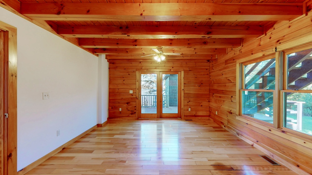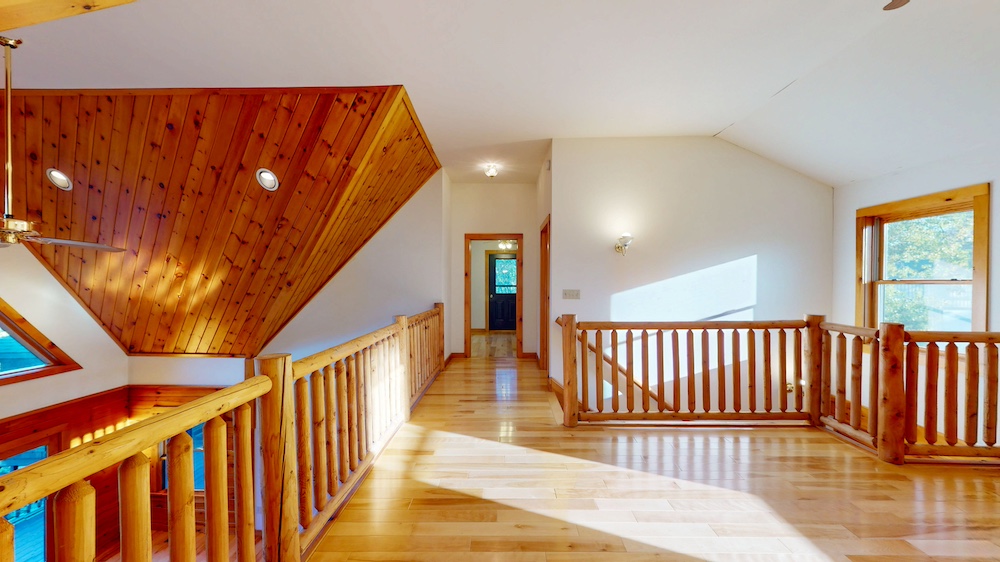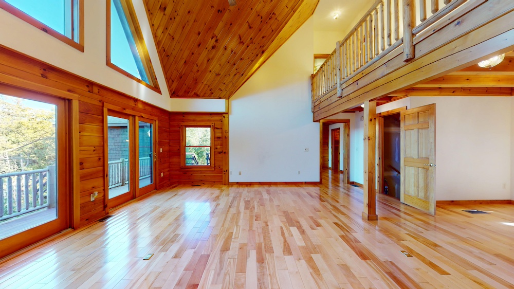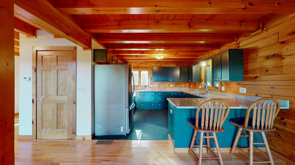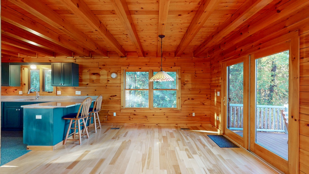 The home welcomes you with warm wood interiors, hardwood floors, and an open-concept layout that captures some lake views. A soaring great room with vaulted ceilings and natural wood beams creates a true Adirondack atmosphere, while the spacious kitchen and dining area flow seamlessly for entertaining or family gatherings.