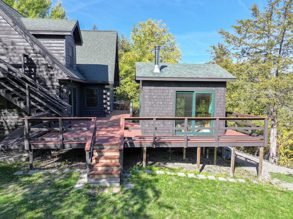 A highlight of the home is the hot tub room overlooking Lake Champlain—the ideal spot to unwind and take in the tranquil water views year-round. Step outside onto the expansive deck for morning coffee, sunset dinners, or evenings under the stars.