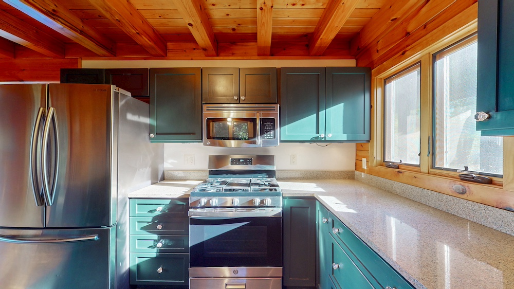 Upstairs, a cozy loft overlooks the living area, providing the perfect space for a home office, guest area, or reading nook. With three bedrooms and two-and-a-half bathrooms, there’s ample room for family and guests to relax and enjoy the peaceful setting.