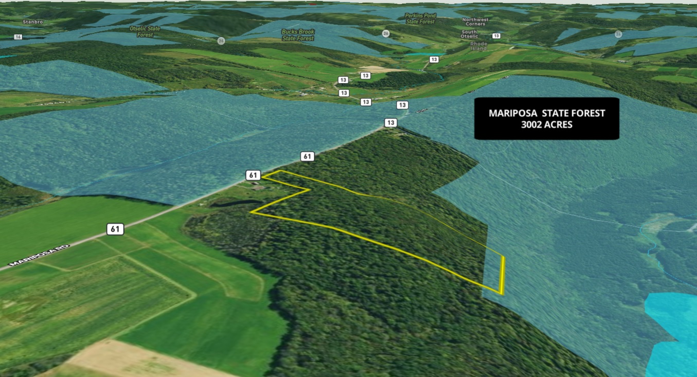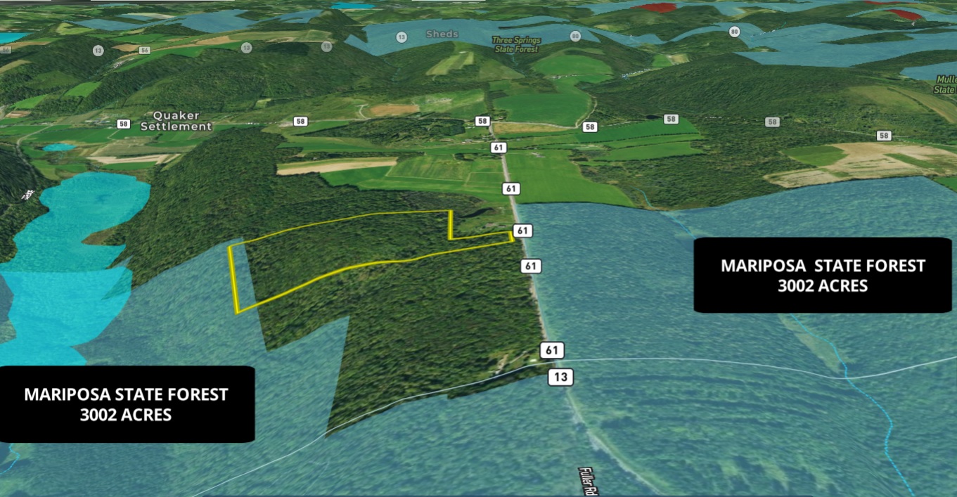With a cleared area ready for your camper, you can pull in and enjoy this beautiful wooded property for hunting, vacation getaway, or building your year-round home. There is power at the year-round maintained paved road. The nice-sized trail takes you from the level area at the top of the property and down the moderate slope to the back. Mariposa State Forest is located just across the road as well as borders the back of this property, adding an additional 3002 acres for hunting, hiking, and camping as well as miles of snowmobiling trails available for winter fun as well. This area of Central New York is renowned for its wildlife conservation efforts, and deer and wild turkey hunting, making this property an ideal location for your base camp. Between the area farms and thousands of acres of woodlands, streams, and brushy cover, this property, and the surrounding area offer the ideal diverse habitat for whitetail and area wildlife to pass through. The Chenango River, among several great fishing locations in the vicinity, is only 6 miles away and offers fishing for brown trout, smallmouth bass, walleye, northern pike, and muskellunge, among several other species. Amazing additional outdoor activities await in less than a half-hour from this property, including 4157 acres of public land at the Whitney Point Multiple Use Area (NYS Land) with its outstanding hunting, hiking, camping, as well as Dorchester Park, located on the 1200 acre lake of the Whitney Point Reservoir, and offers a public beach, picnic area and NYS boat launch for access to outstanding fishing for pike, bass and panfish. While the property is remotely located on a quiet country road, amenities are only 4 miles away in DeRuyter, while Whitney Point and Cortland are both a half-hour, and you can be in Binghamton in one hour. NYC/George Washington Bridge is 3.5 hours away. This is a really nice property for any number of uses at a very affordable price. Adjacent 10.89 acres are also for sale.