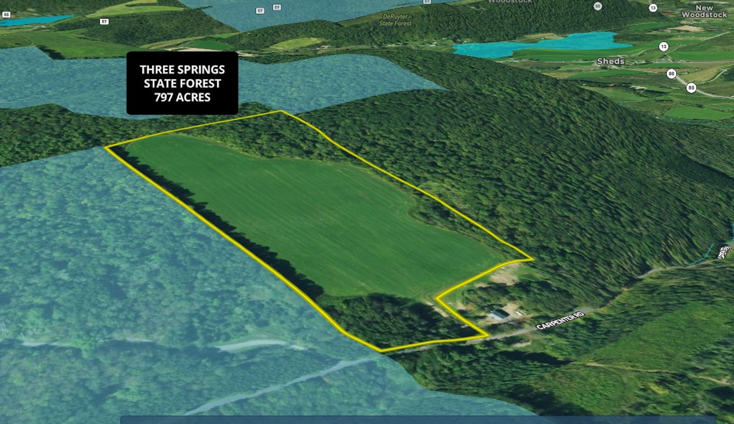 Beautiful open location with many possible uses: building site for a year-round home, vacation getaway, or hunting camp. Through the gated entrance to the property, it opens up to nearly 17 acres of open tillable land that could be used for supplemental income leased to area farmers or create your own small farm operation or horse farm. The property rises gently from the road up to the back of the property, offering lovely views of the valley below. There is a small woodlot in the front and back of the property, which borders on one side and in the back with Three Springs State Forest, providing an additional 797 acres for hunting and hiking. Located in Central New York, renowned for wildlife conservation and excellent whitetail and wild turkey hunting, Three Springs adjoins Muller Hill State Forest, which offers another 3000 acres of wildlife and outdoor recreation. Amenities are available within 6 miles in the village of DeRuyter and 26 miles to Cortland. Binghamton is only an hour's commute, and NYC/George Washington Bridge is just 4 hours from this lovely piece of land. *Gas rights do not convey. Timber rights do convey.