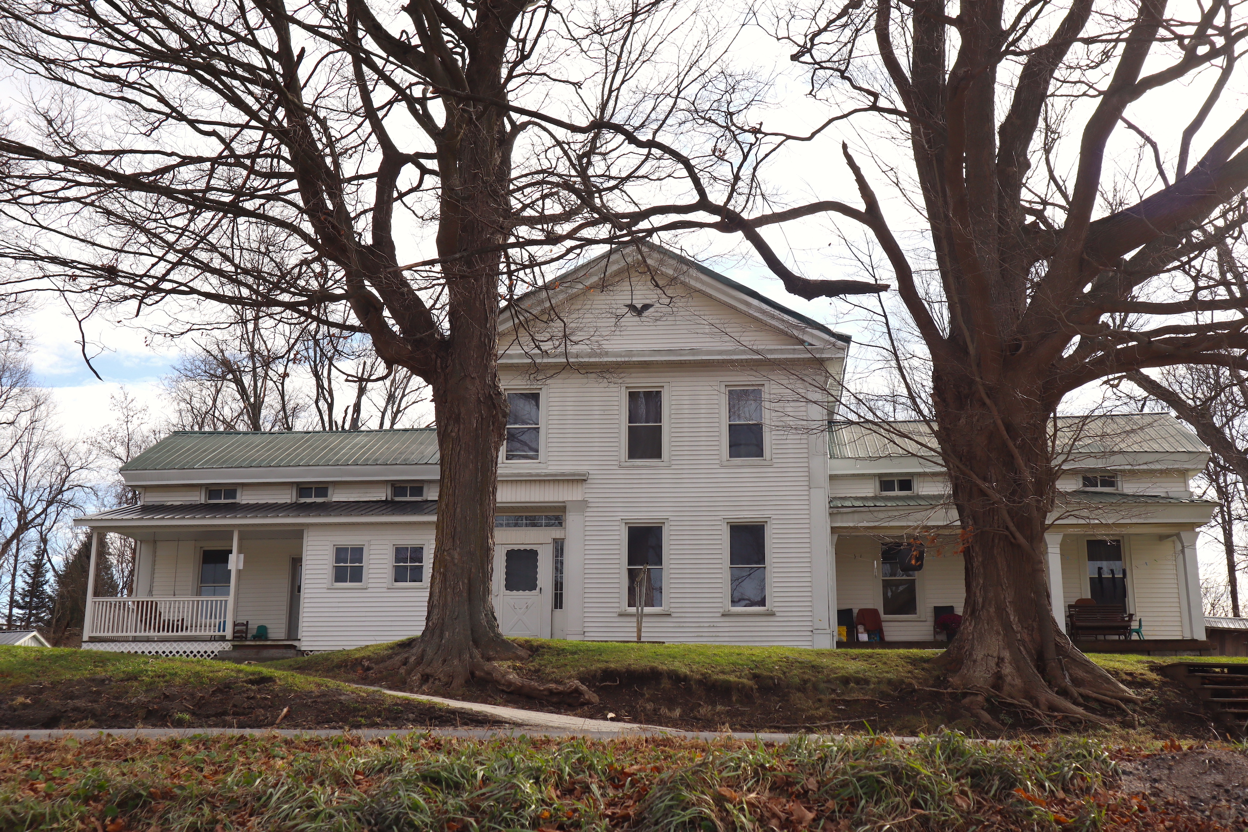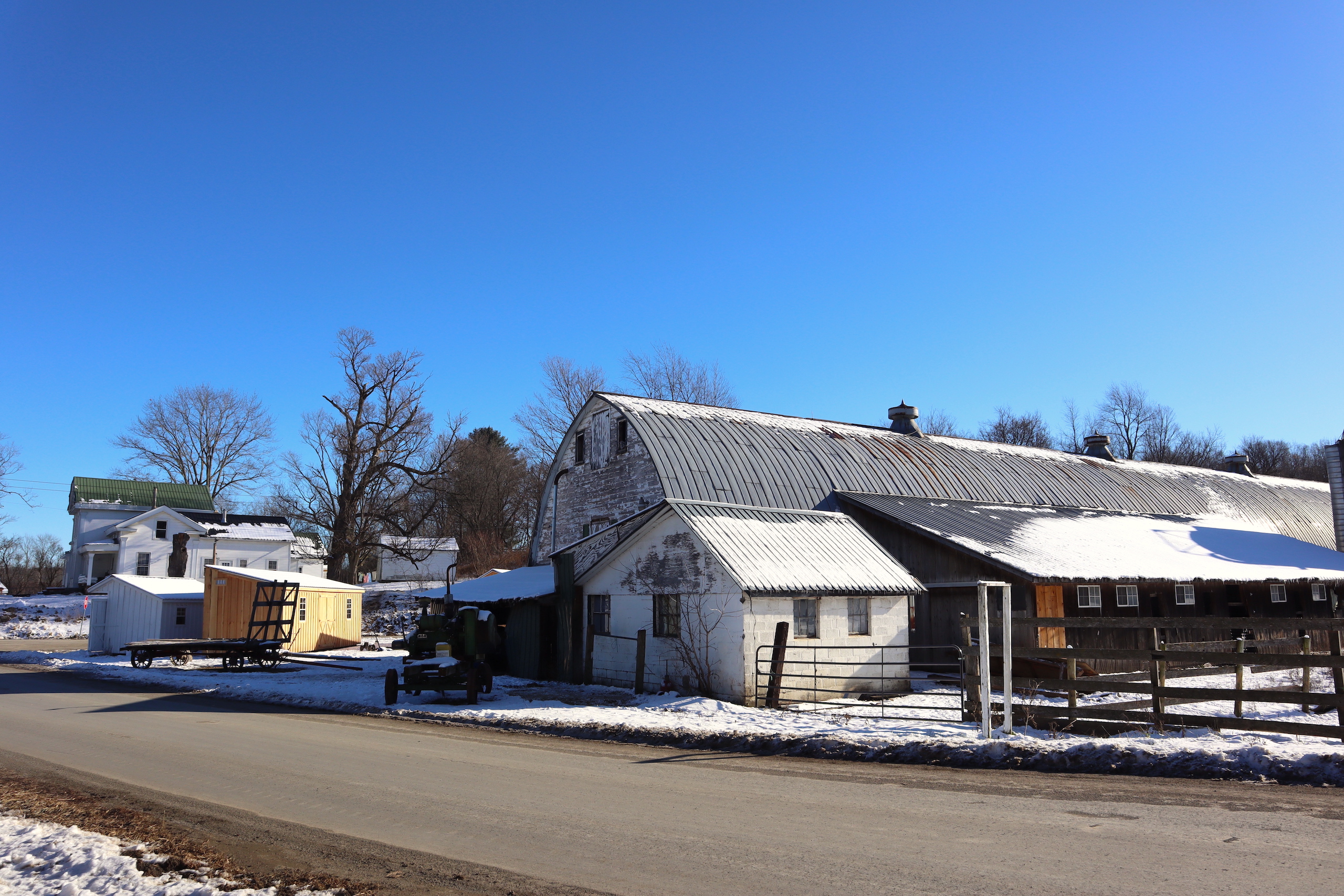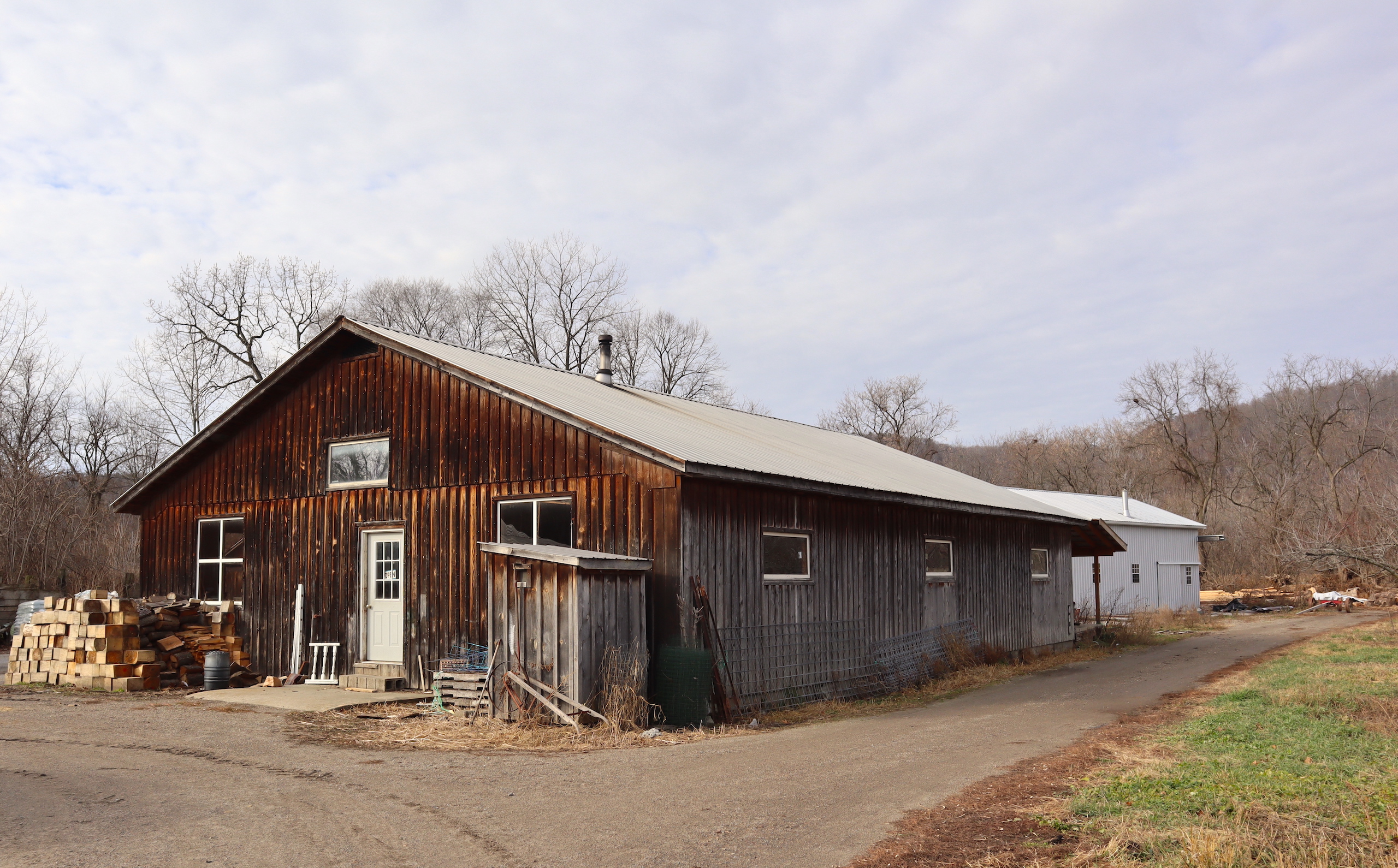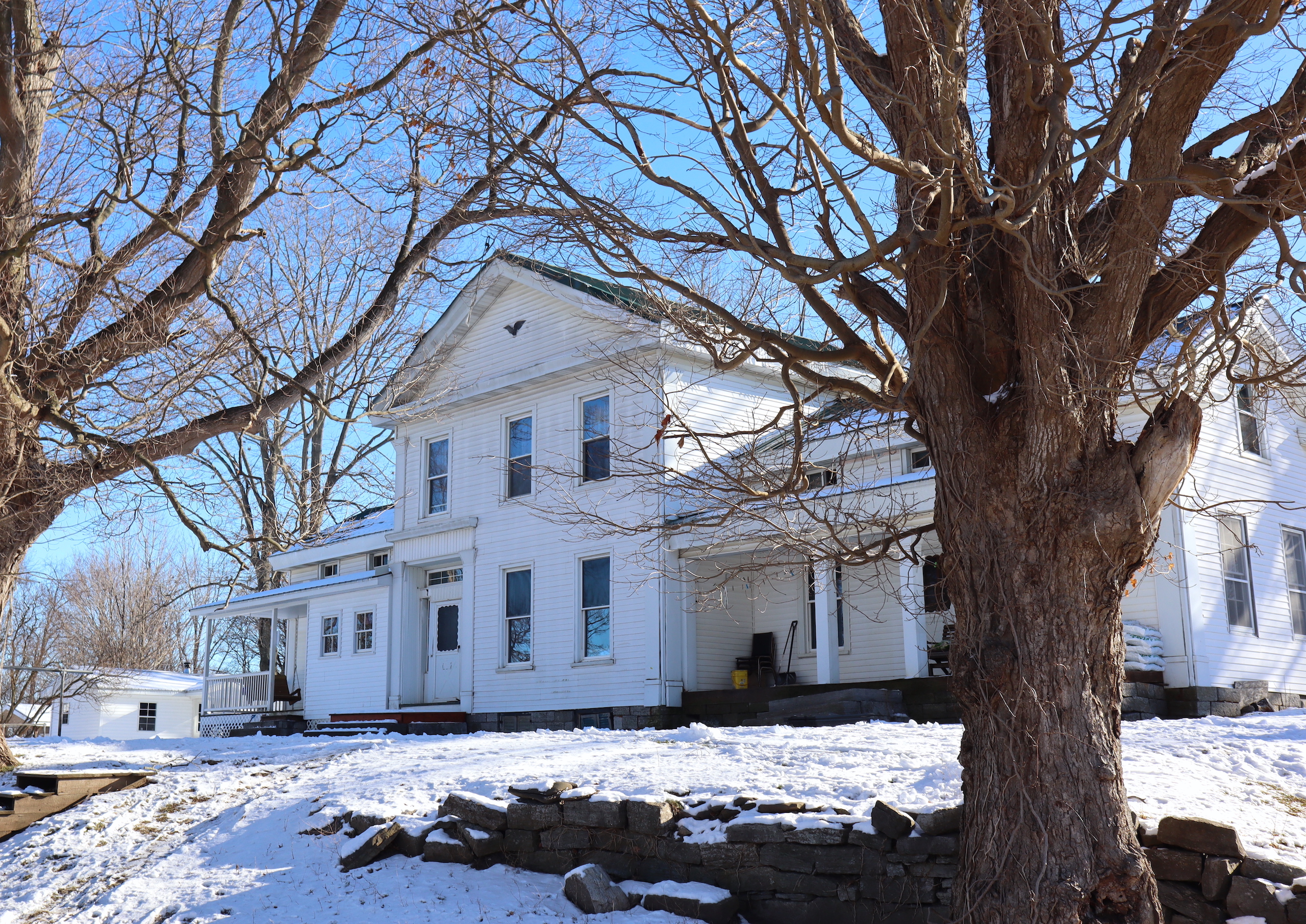 Country farm with a two-story barn, insulated workshop and pole barn, tillable acreage, pasture, stream and large house sit on quiet road. Large 3,690 sq’ Greek revival style house features 5 bedrooms, large open concept dining and living room with plenty of space to enjoy time with family and friends. There is also an adjoining but separate section of the house featuring a large living room, dining room and kitchen with an additional 3 bedrooms in this section of the house. Both sides of the house include a nice covered porch, the perfect place to sit and overlook the farm in a rocking chair or on the porch swing. The house does have a drilled well and septic system. The 5,760sq’ livestock barn is currently in use for sheep with multiple large pens as well as multiple horse stalls and room for chickens and other animals in the large lean-to that runs the length of the barn. There is a milking parlor and milk room. The upstairs is spacious and bright with plenty of room for hay storage. There is roughly 15 acres of tillable ground that can be used for pasture or crop production as well as several great locations for a large garden. Several apple trees on the property provide apples also. The timber consists of a mixture of maple, hemlock oak and some cherry. Yatesville Creek runs through the property for nearly 3,500’ with land on both sides of the creek in some sections. There is a steep and wooded bank on the north west corner of the property that overlooks the creek and provides a perfect location to take advantage of the natural funnel and consistent deer movement in the creek bottom below. The area has excellent deer and turkey hunting. There are currently two businesses run out of the workshops on the north side of the property. There is a 40’ x 60’ insulated woodshop currently for use for a cabinet making business. The shop features broad plank wood floors, multiple windows a loading dock and a lean-to off the back. There is another 24’ x 83’ insulated pole barn with a poured concrete floor that is currently used to build sheds. Large doors at both ends offers opportunity for easy loading and unloading. The 1,286-acre Rural Grove State Forest and the 712-acre Yatesville Falls State Forest are just minutes away providing numerous recreational activities from hiking and cross-country skiing to hunting and snowmobiling. Just 5 minutes to the New York State Thruway and other amenities. This farm is sold AS IS, needing updates with electricity, a heat source and a restroom added.